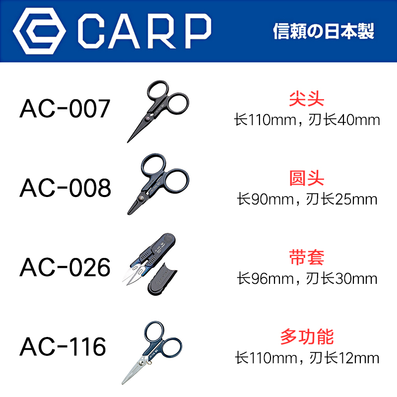 日本进口雪峰CARP钓鱼PE大力马鱼线剪刀钳垂钓路亚钳台钓小配件