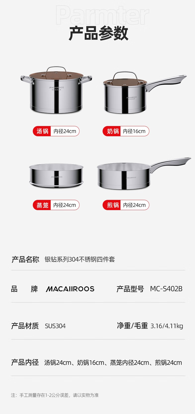 迈卡罗 银钻系列 304不锈钢 四件套MC-S402B