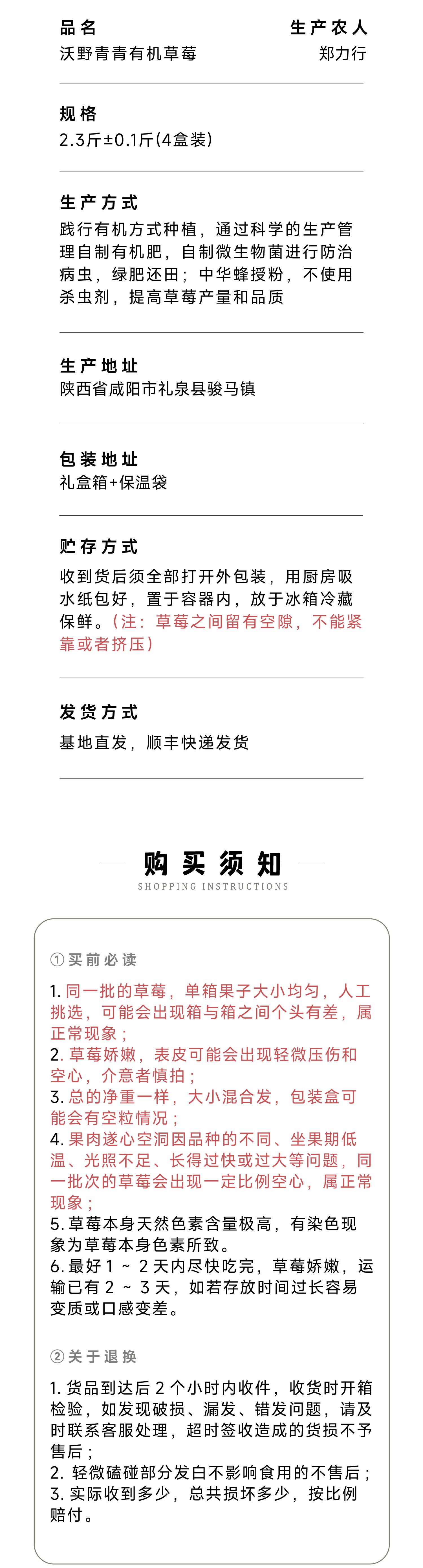 沃野青青有机草莓 2.3±0.1斤 | 合作农友生产,来自陕西咸阳,生产者:郑力行 *【公平贸易农人定价】