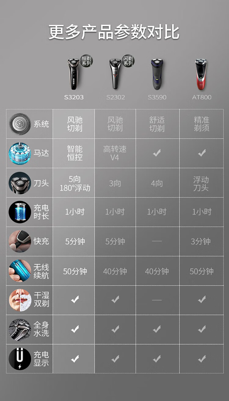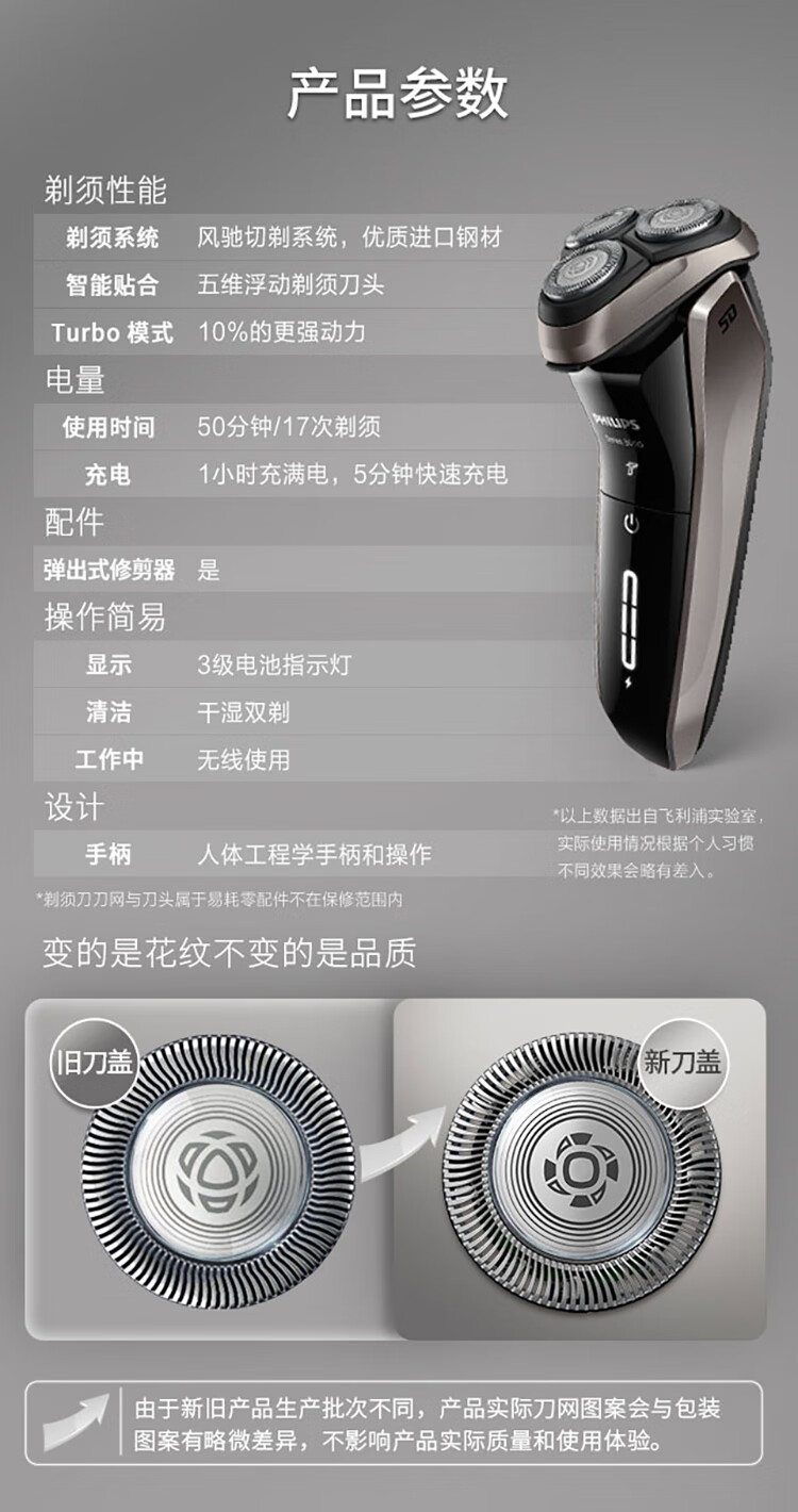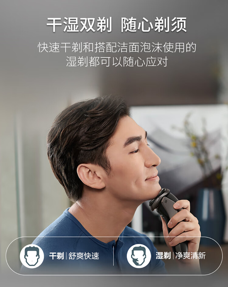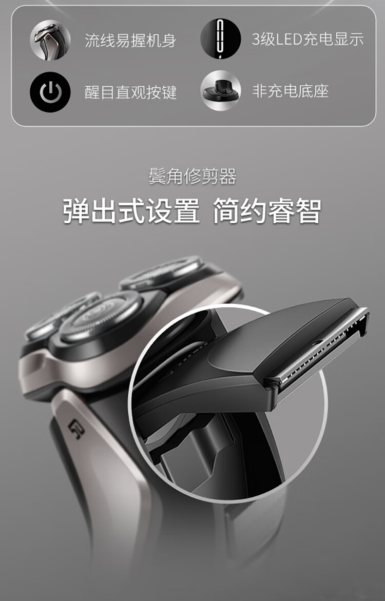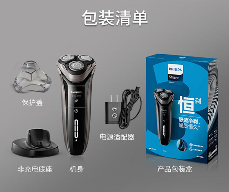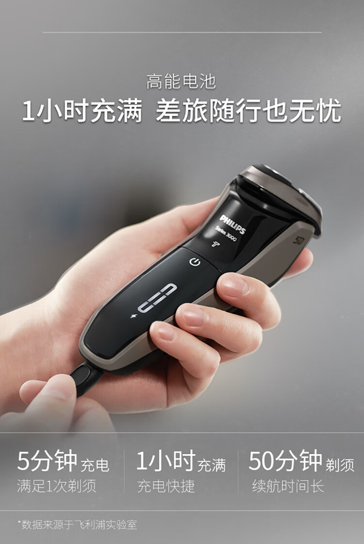 积分免费兑:飞利浦(PHILIPS)电动剃须刀新3系高配版 干湿双剃刮胡刀 配弹出式鬓角修剪器 生日礼物送男友送老公