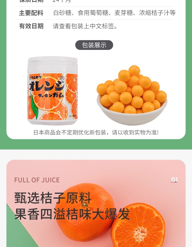 丸川 橙味 口香糖 130g/罐