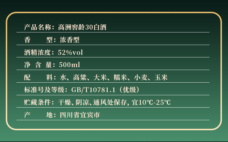 高洲窖龄30 高端浓香 绵柔浓香型白酒52度500ml