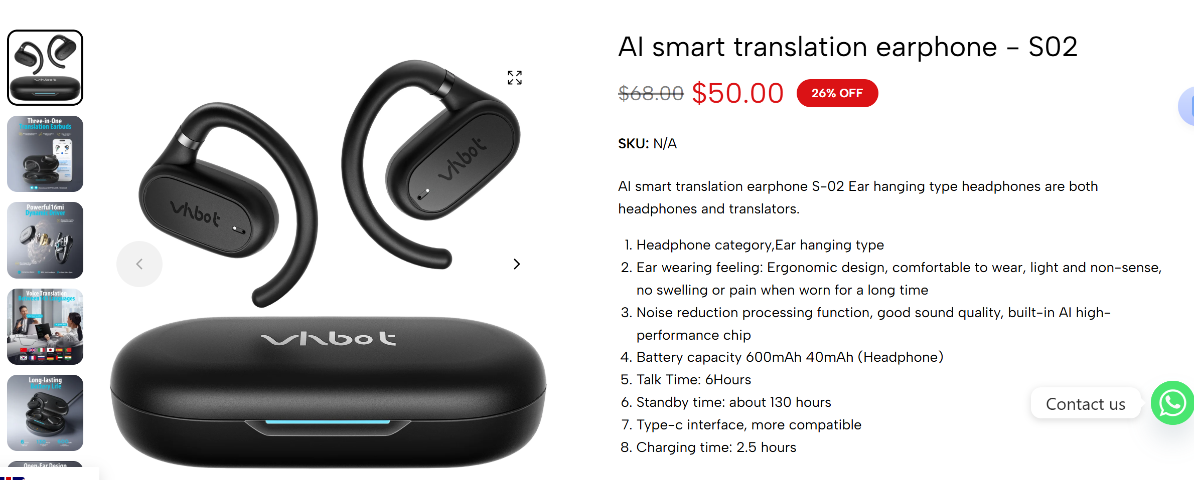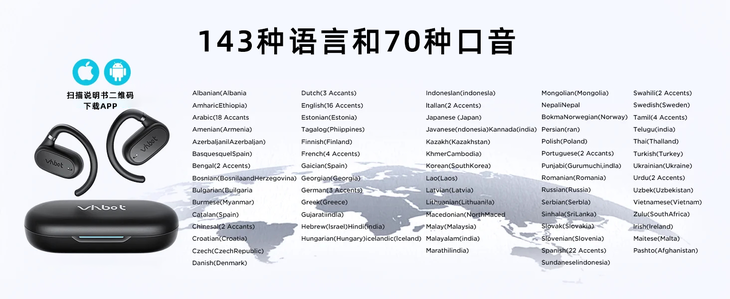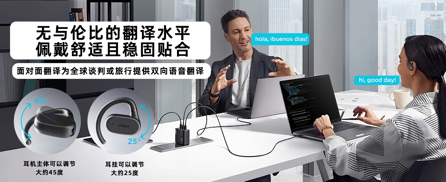 美国 Vhbot S-02 开放式AI翻译智能蓝牙耳机 双芯片无延迟 同声传译143语言