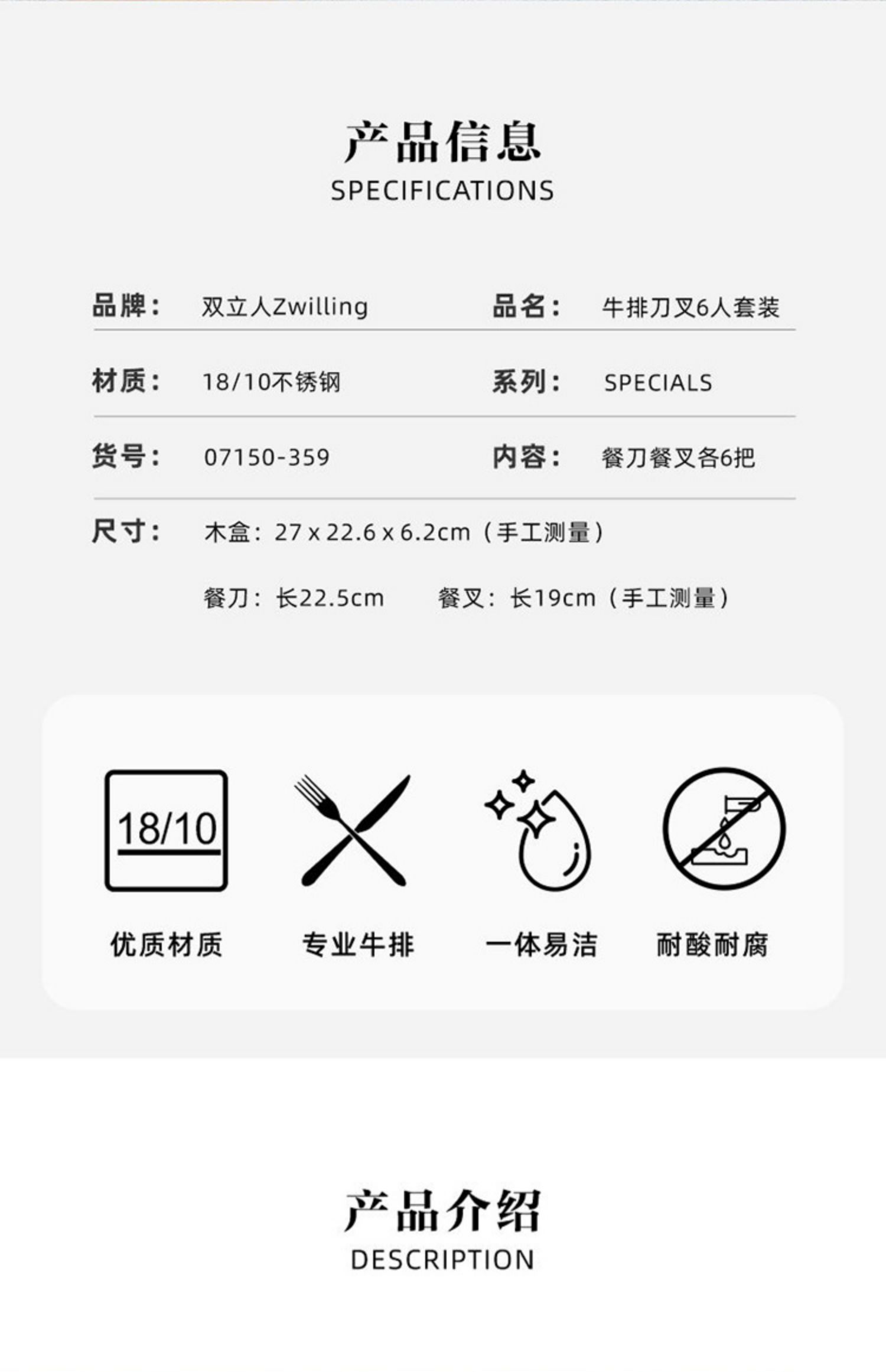 德国进口双立人牛排餐具组合12件套 (牛排刀+牛排叉)