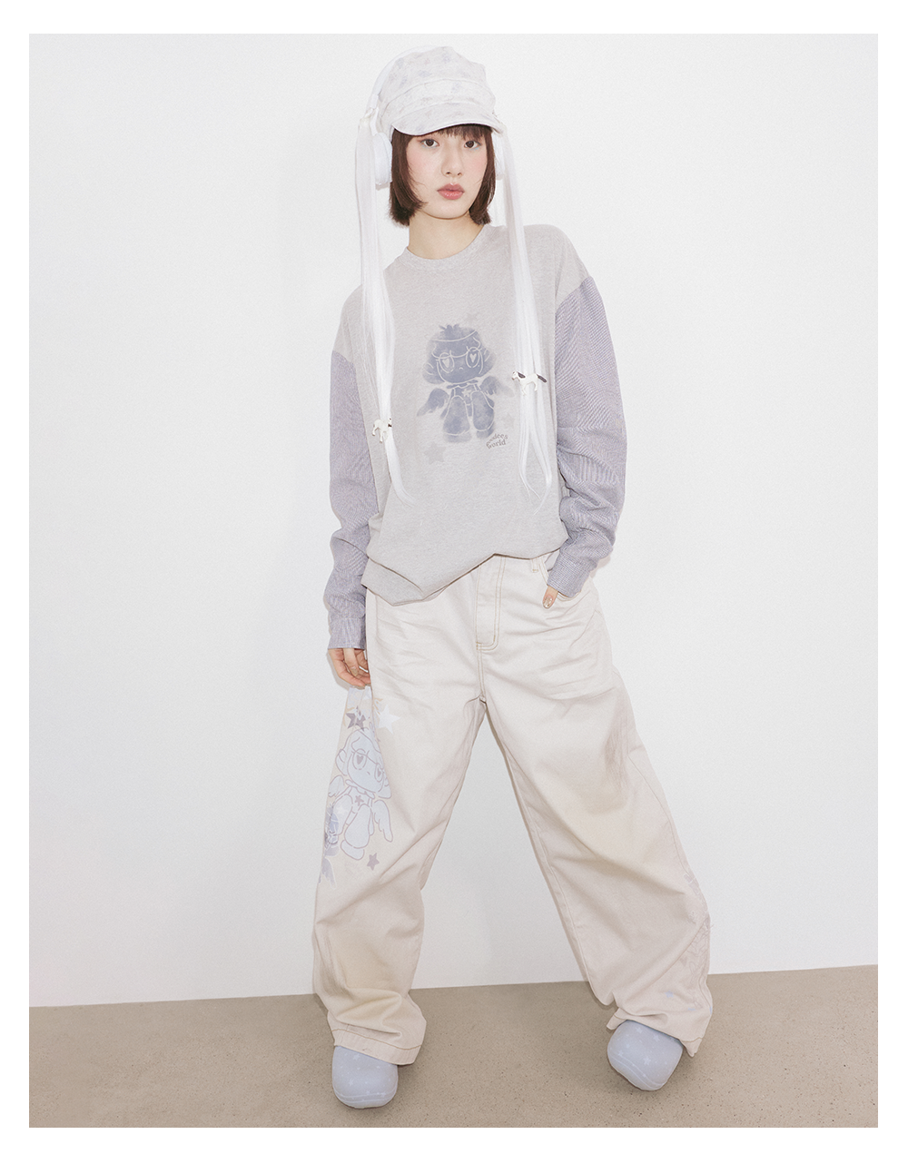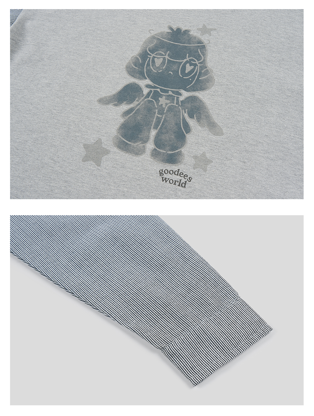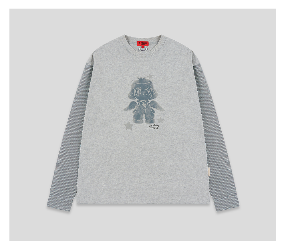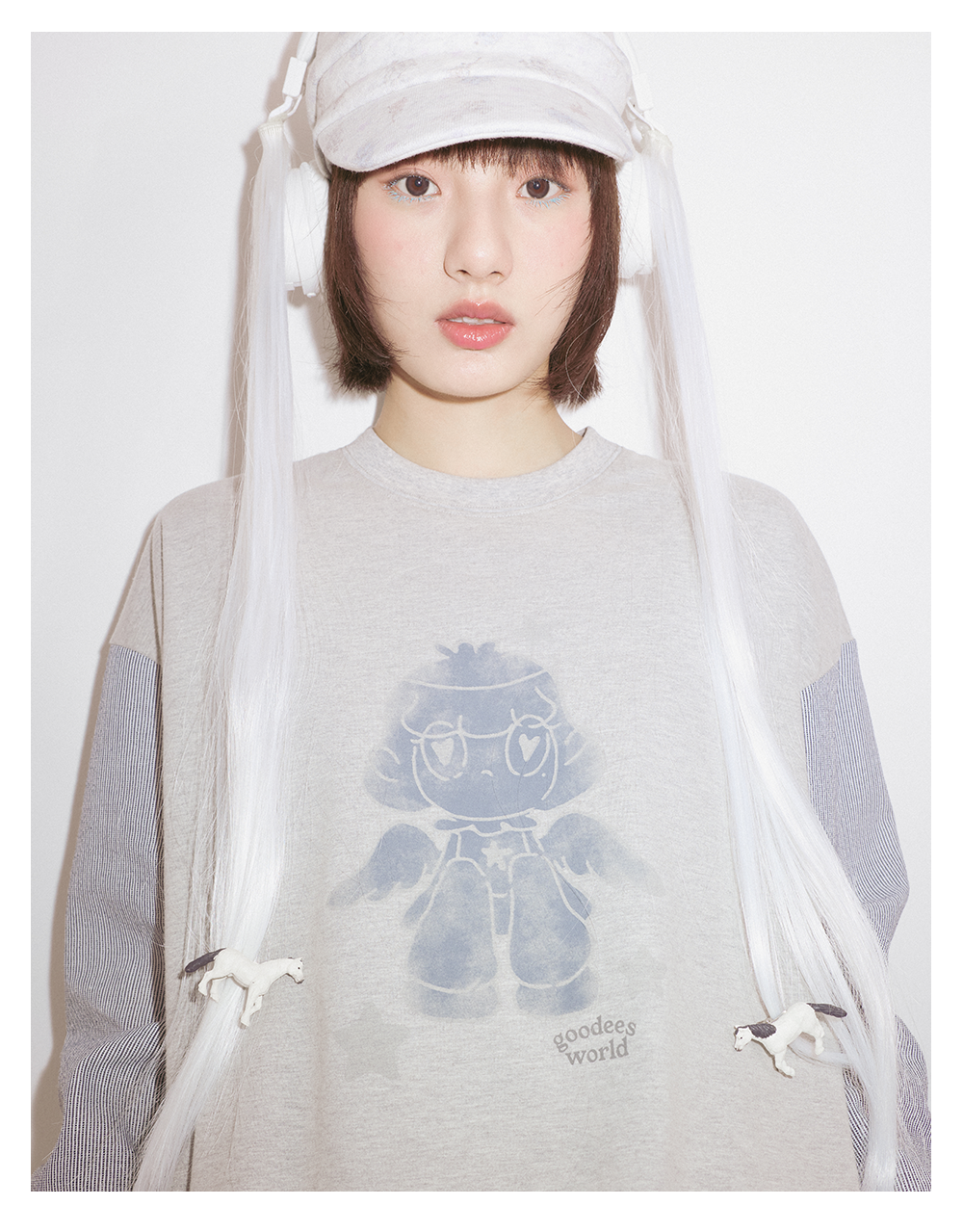 GOODBAI GOODEES新款个性宽松拼色印花长袖T恤