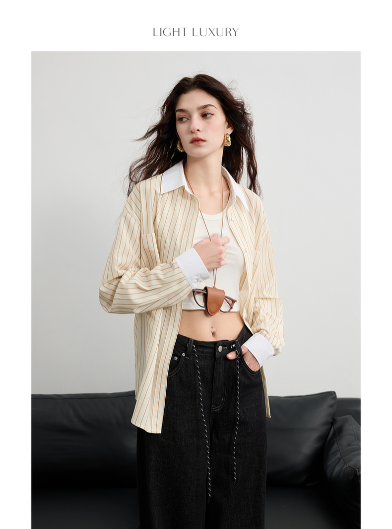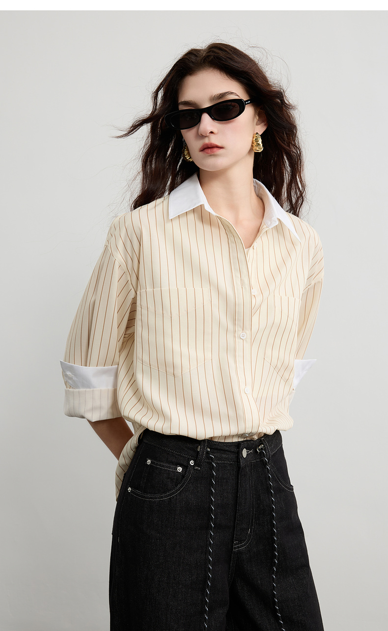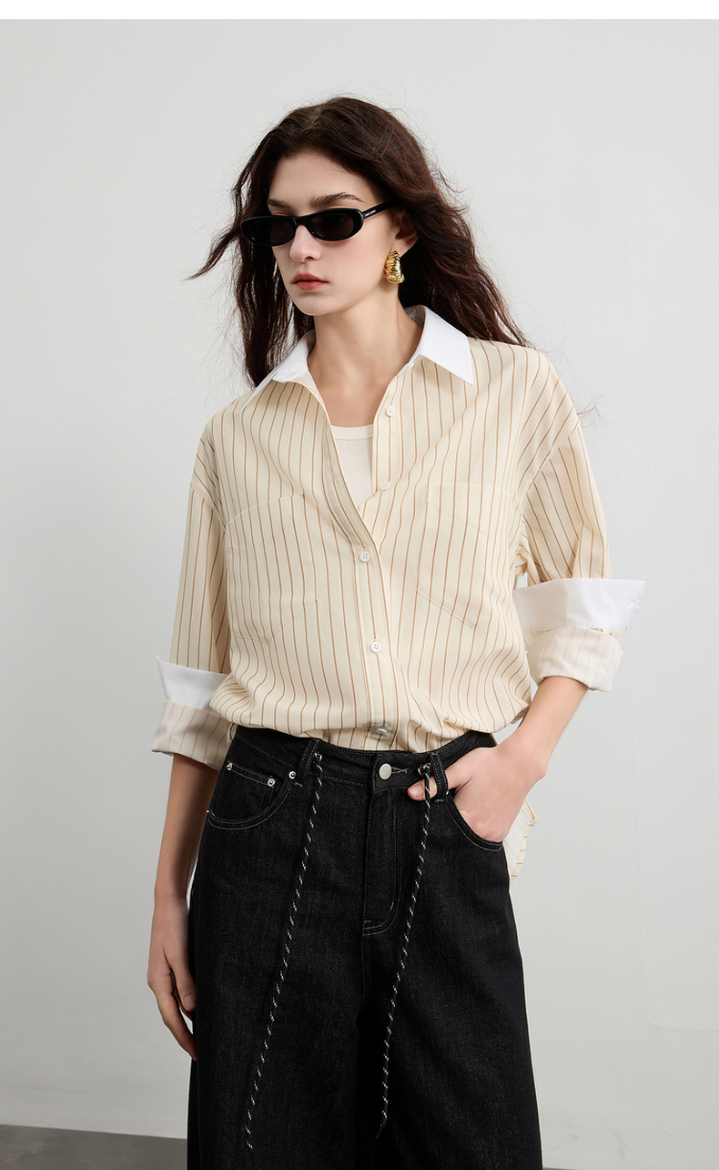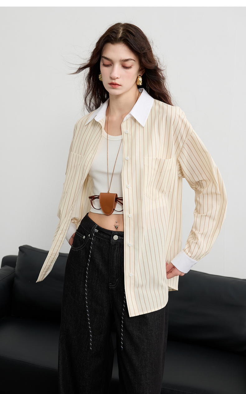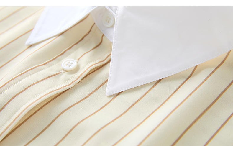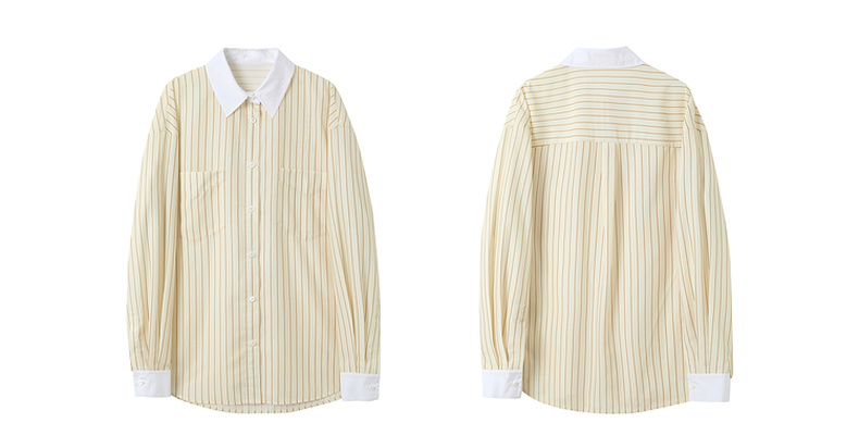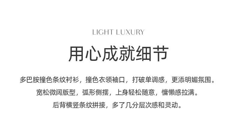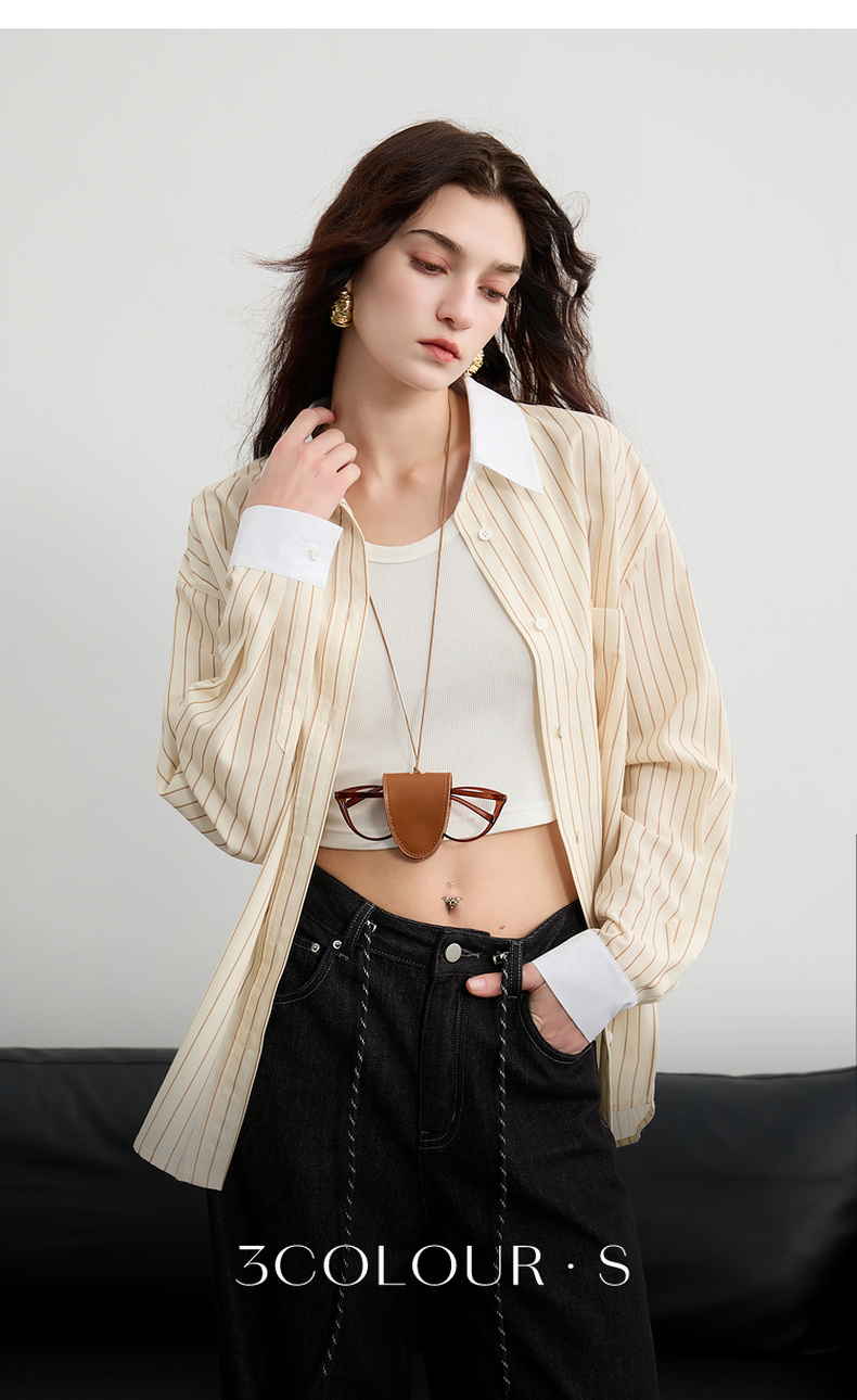 三彩2025春季新款多巴胺撞色条纹衬衫宽松中长开衫翻领长袖S