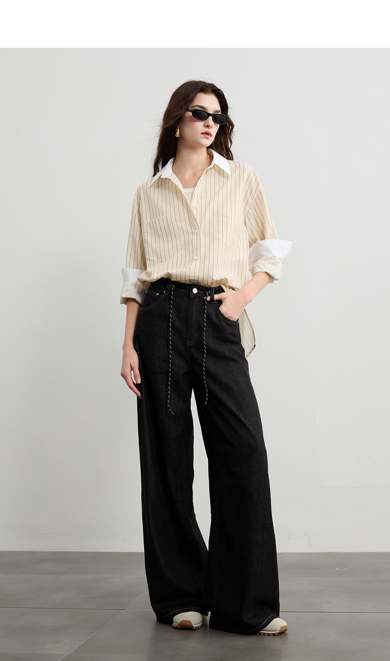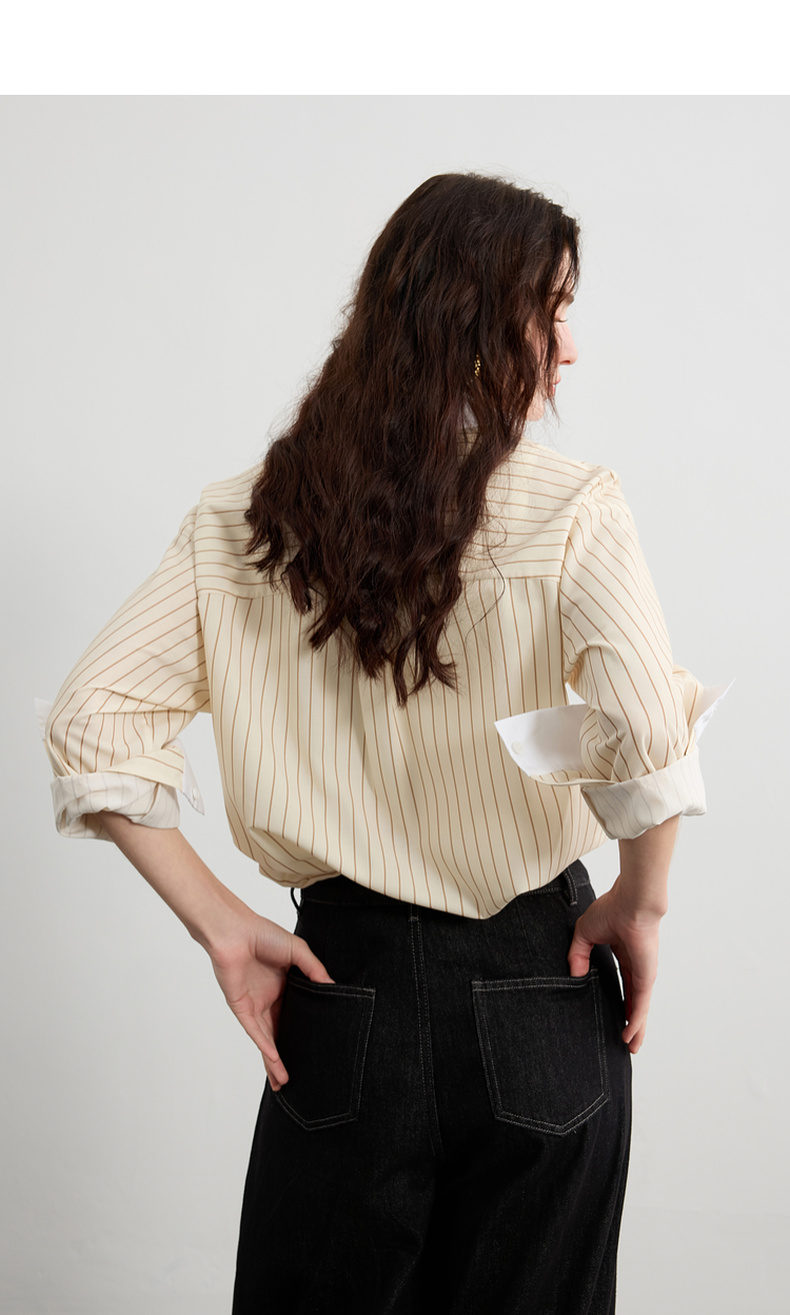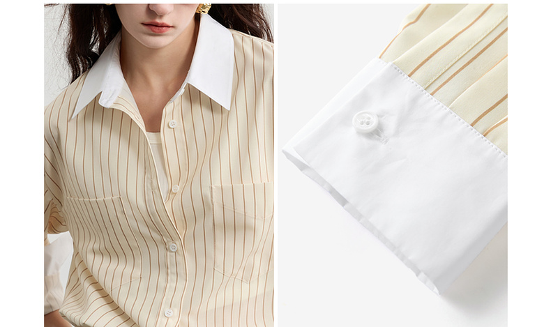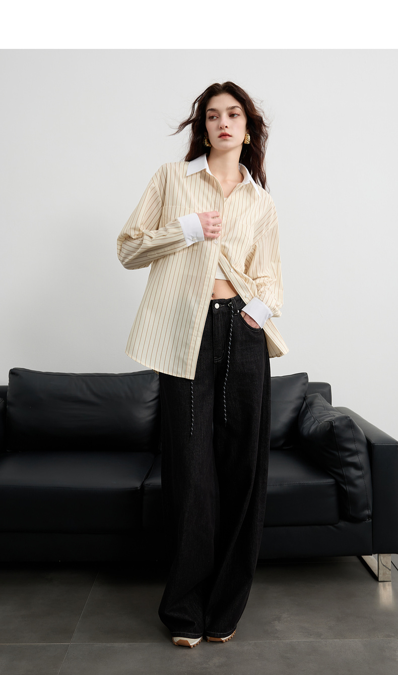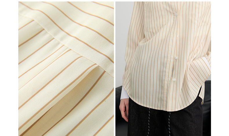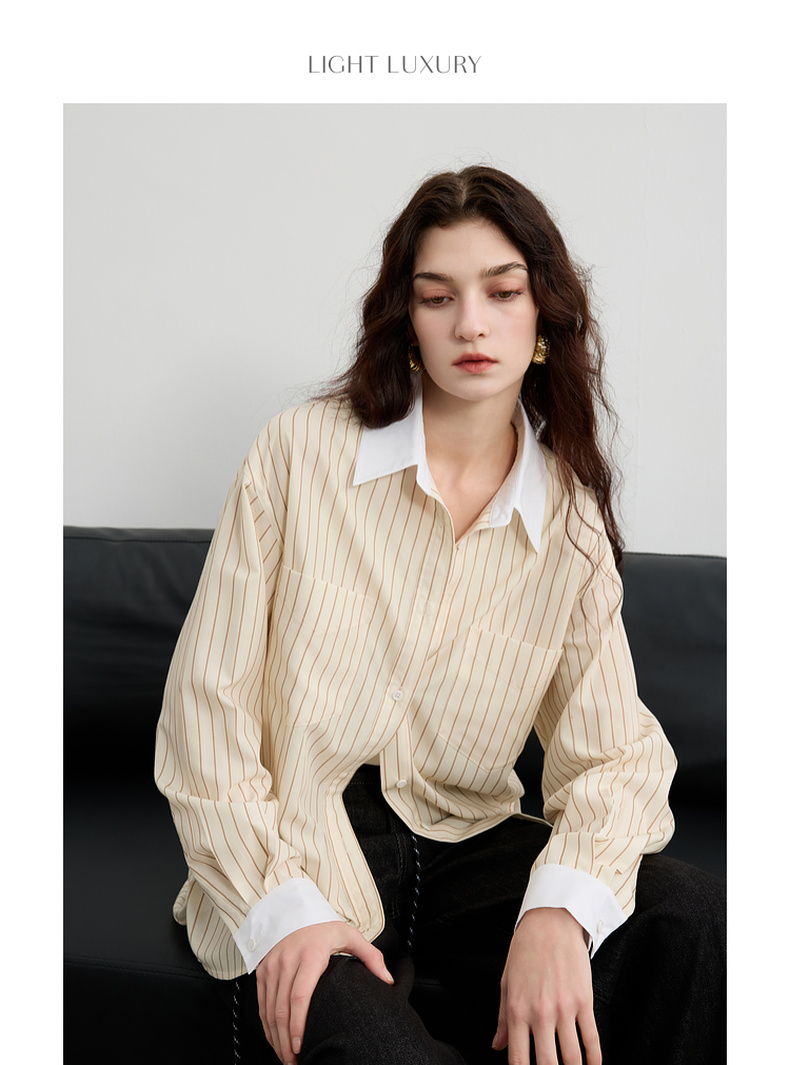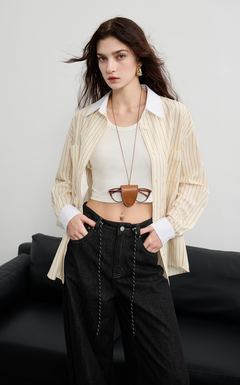 三彩2025春季新款多巴胺撞色条纹衬衫宽松中长开衫翻领长袖S