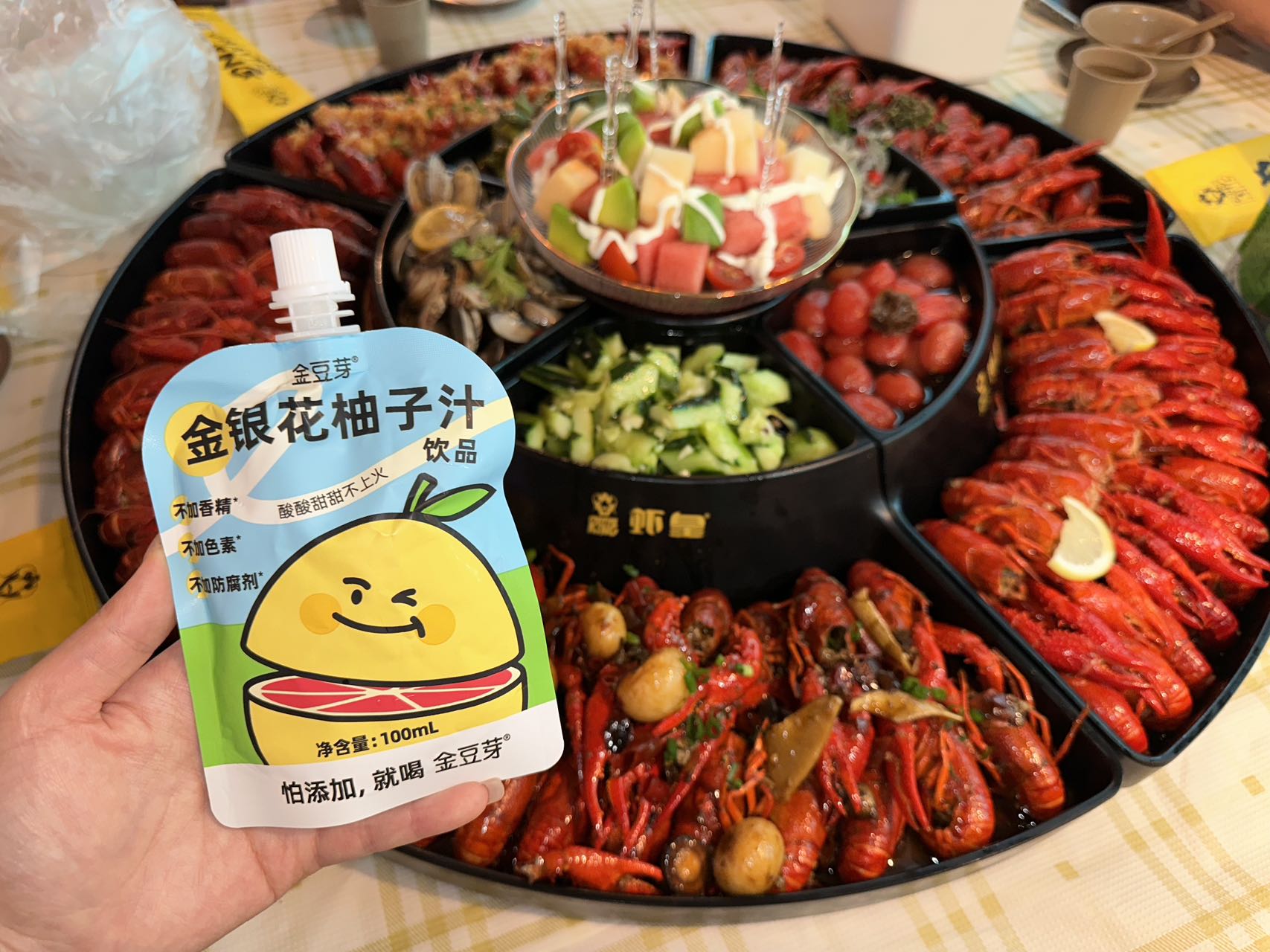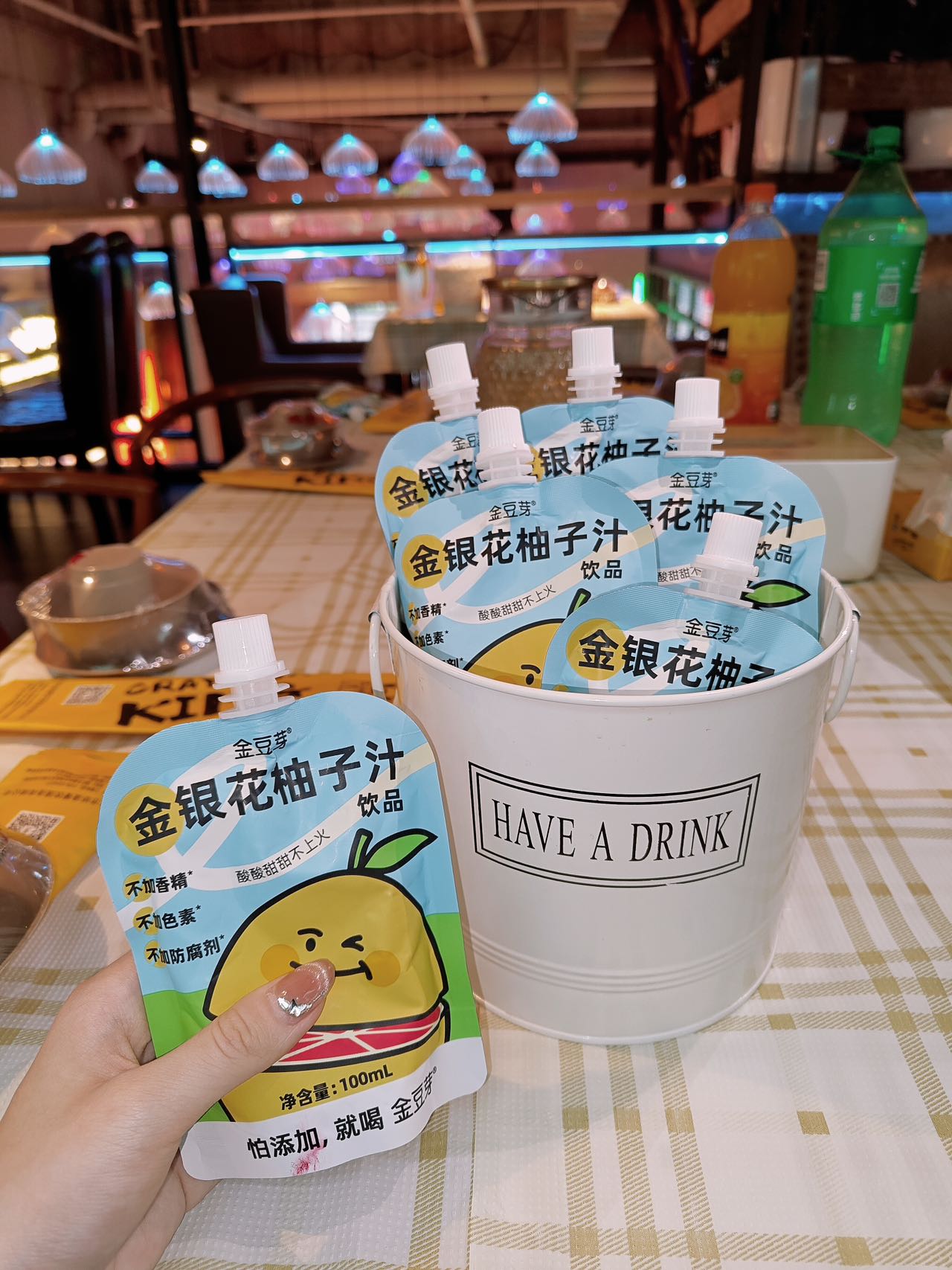 大人喝啤酒可乐,小朋友喝金银花柚子汁!