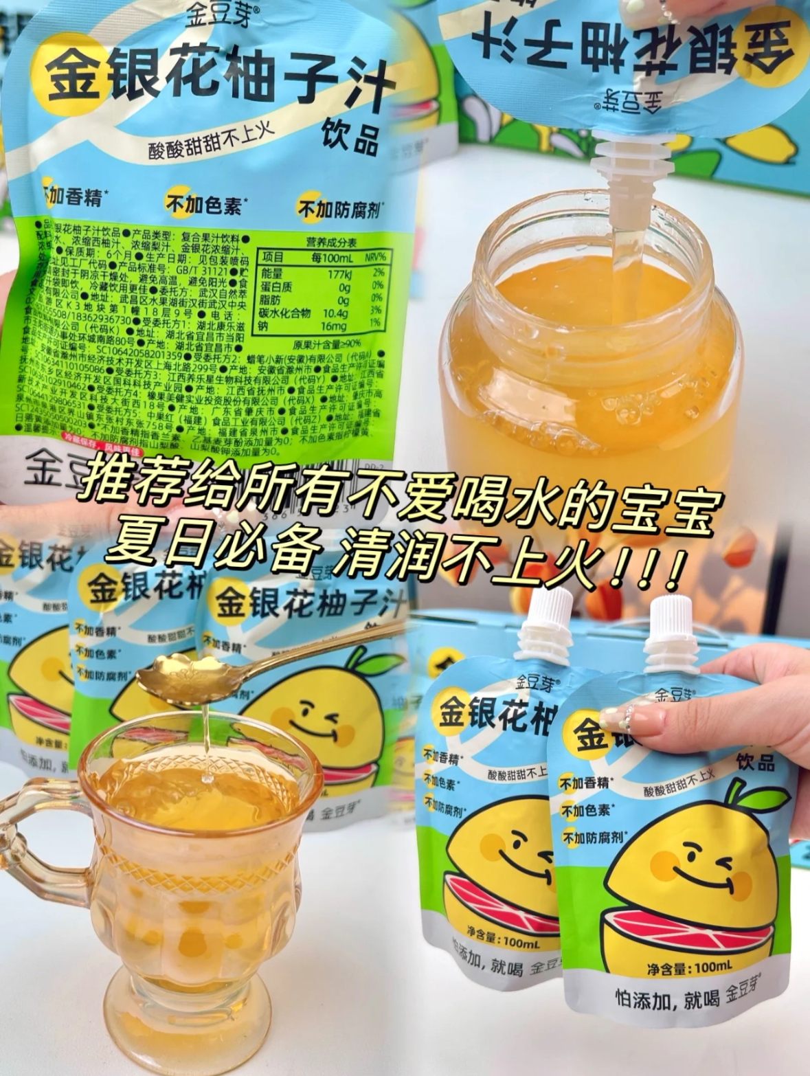 全网爆火💥夏日解暑神器【金豆芽金银花柚子汁】