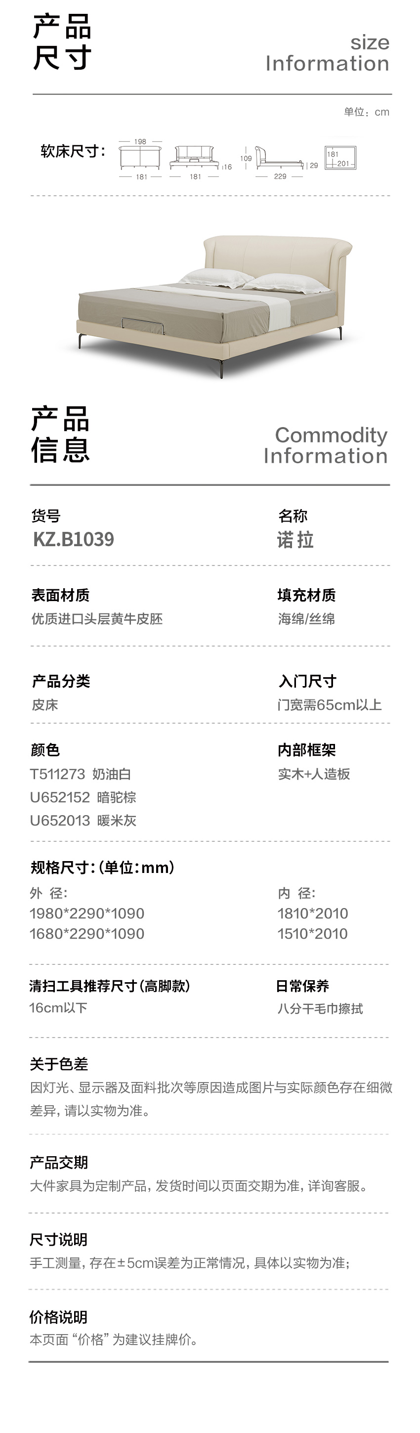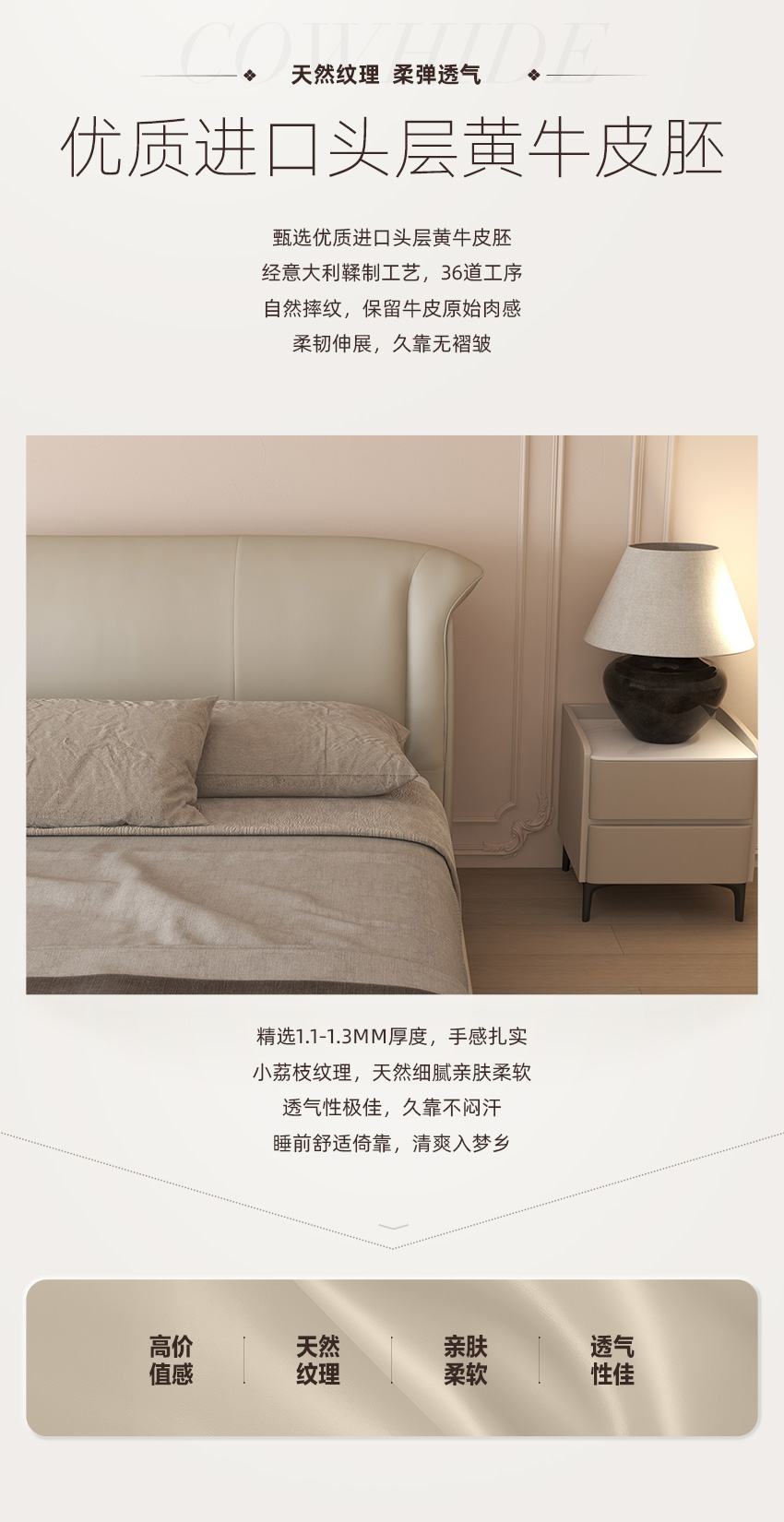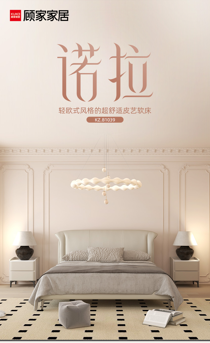 顾家家居整装 意式轻奢 皮艺软床 KZ.B1039 诺拉
