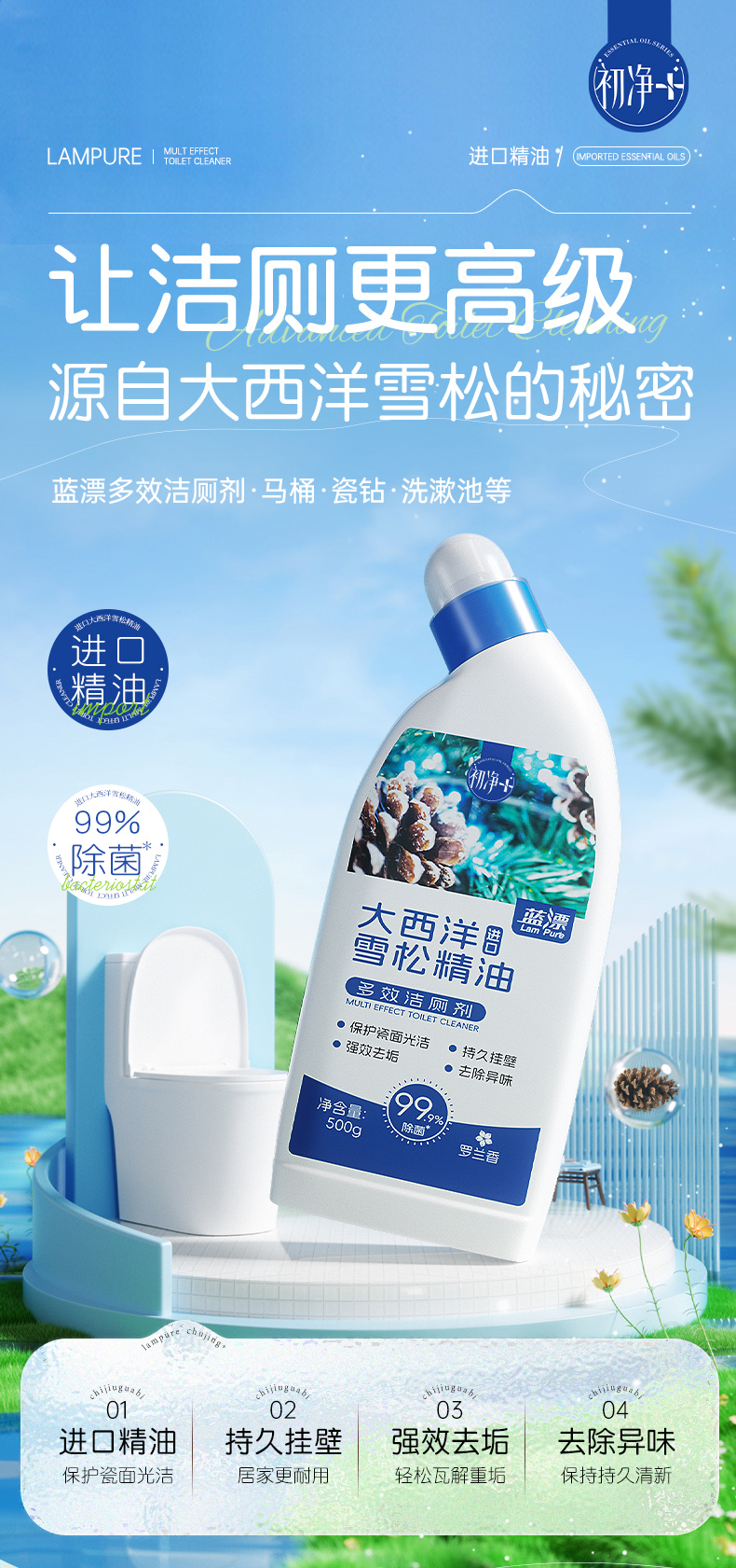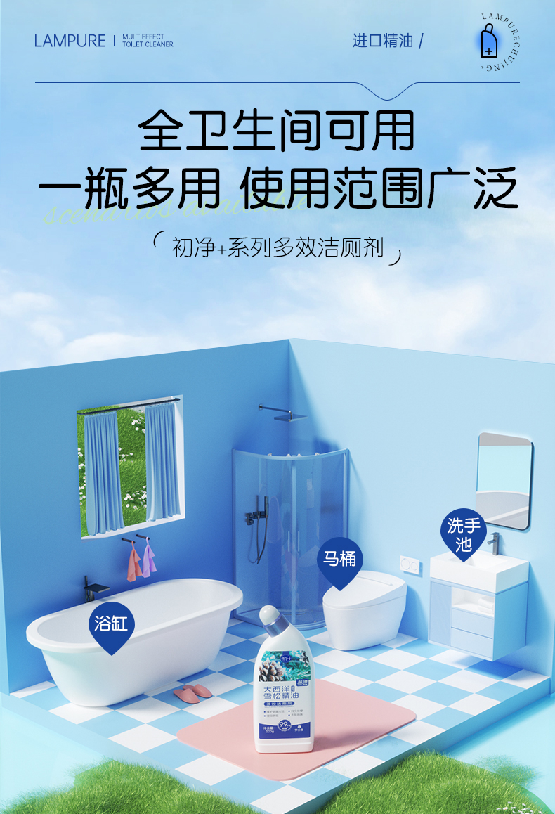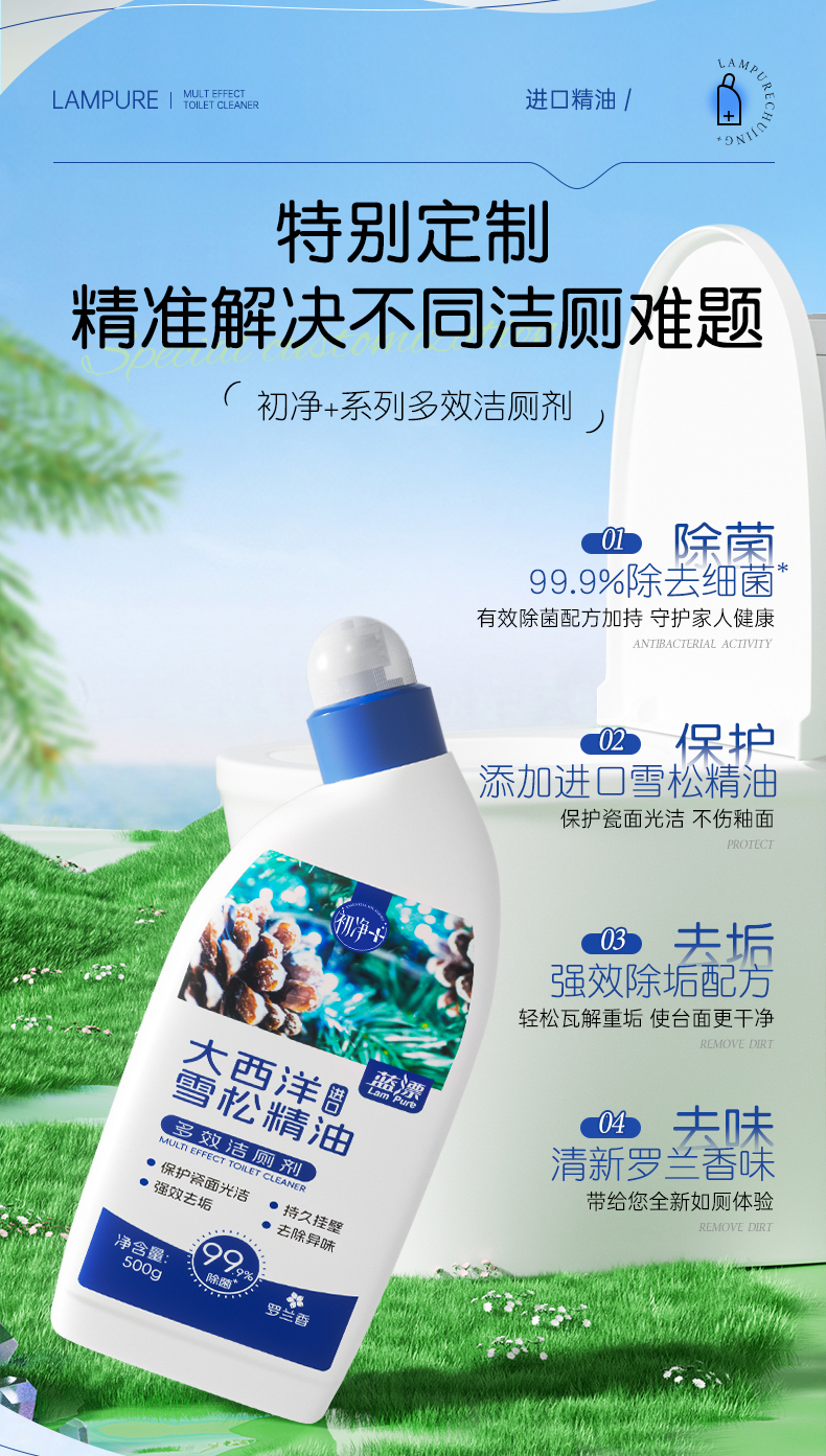 【蓝漂】初净系列 多效洁厕灵液马桶厕所清洁剂 除臭除垢强力去污去黄去异味
