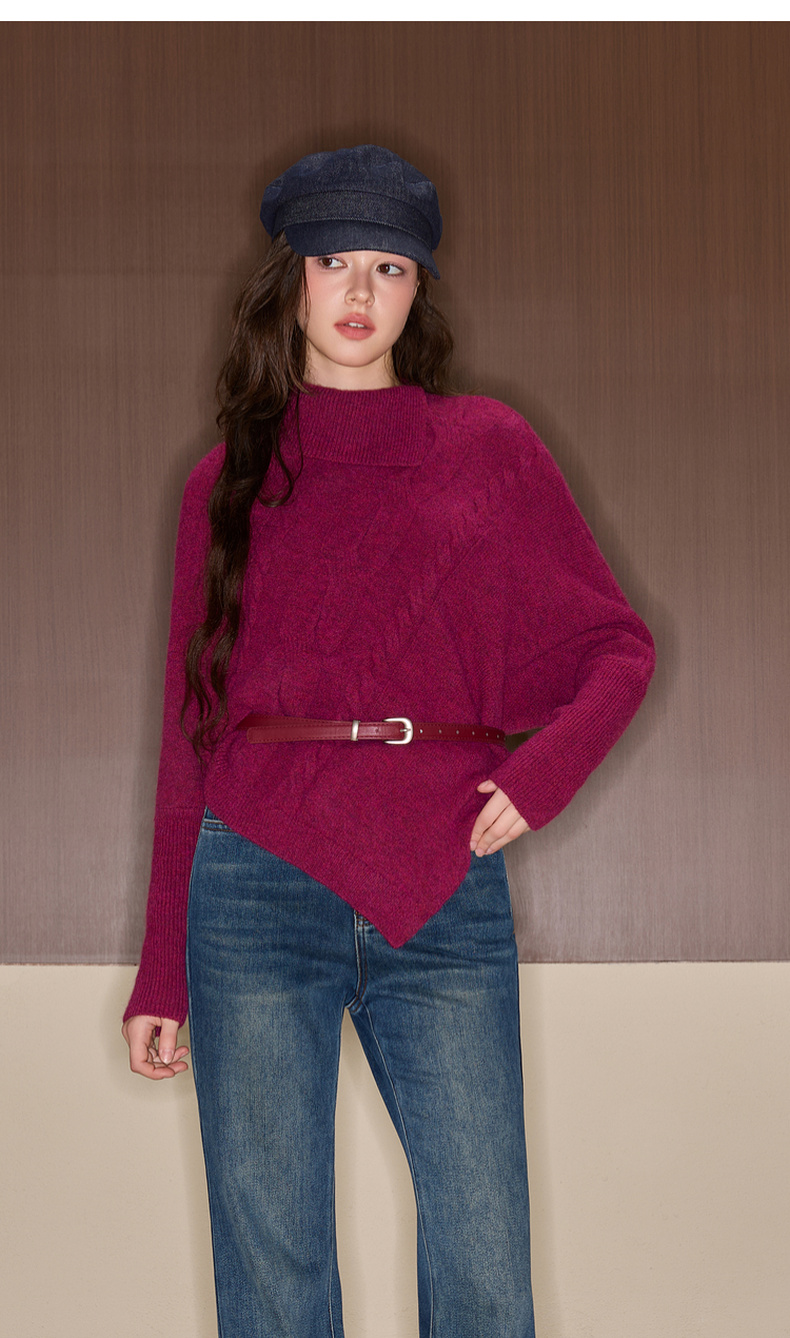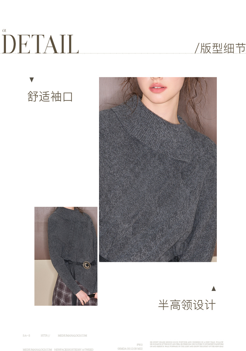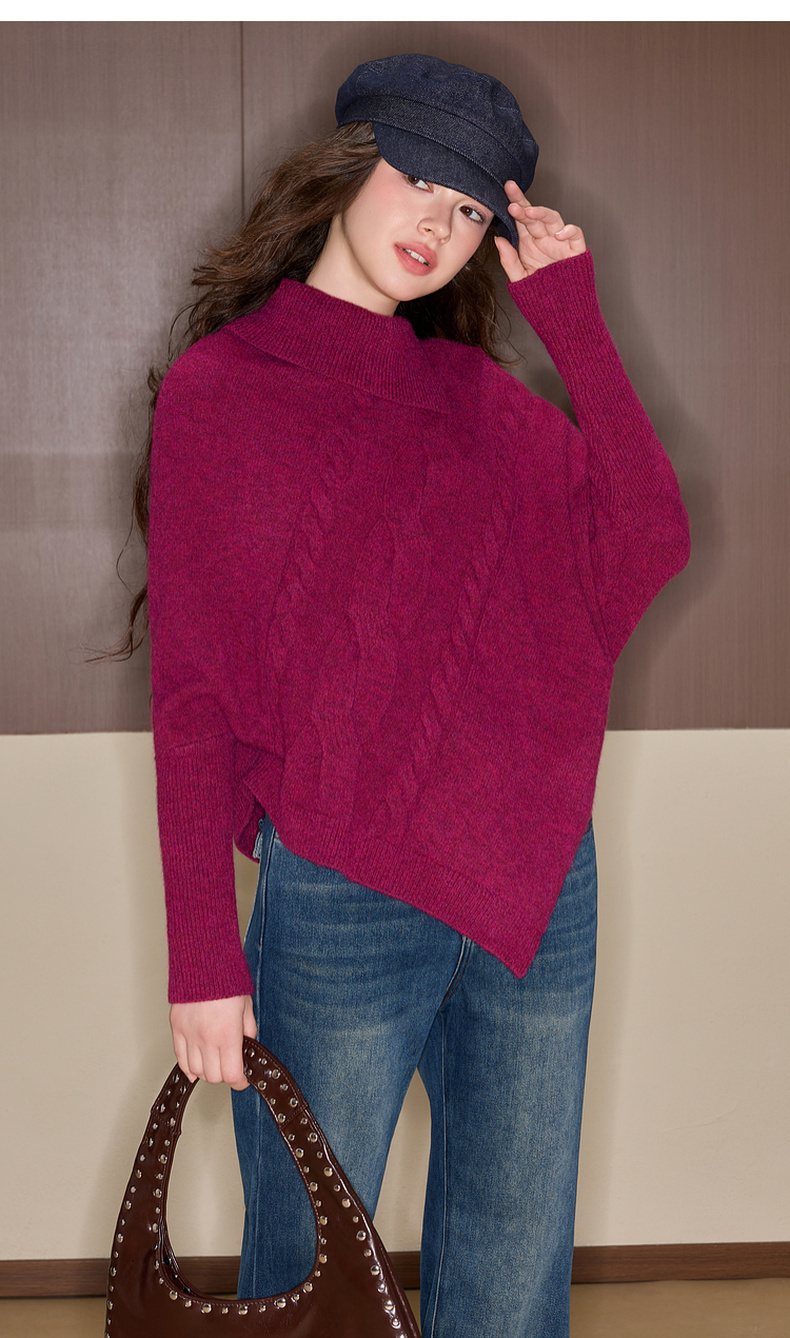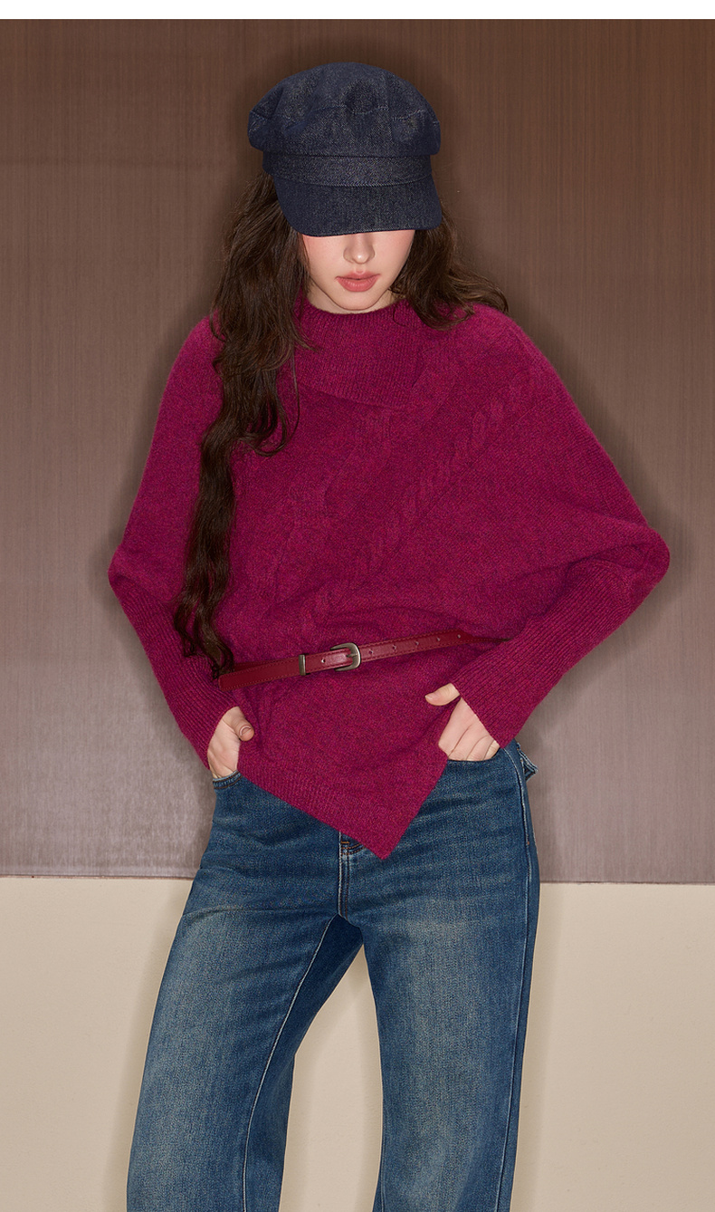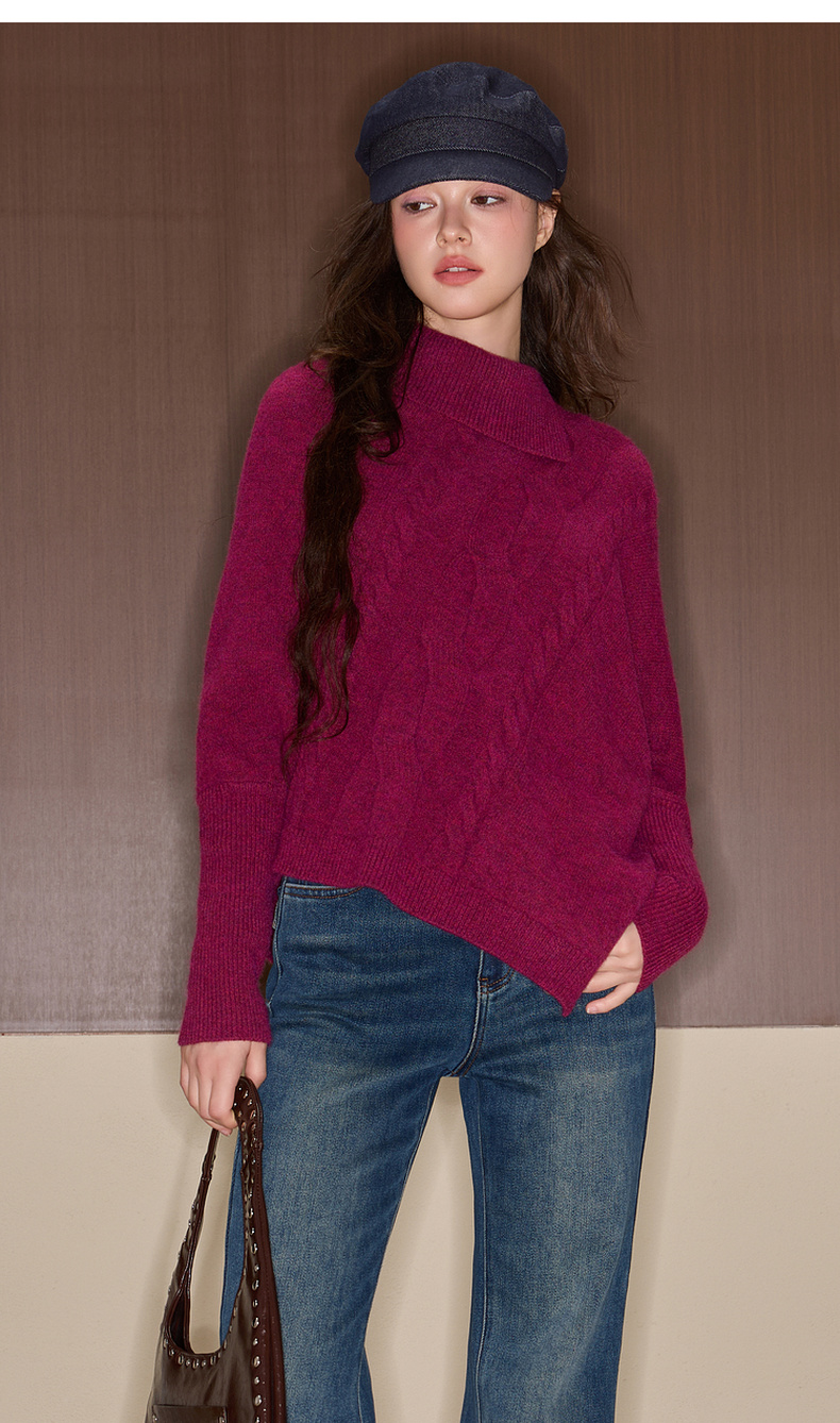 三彩独醒2025冬季新款复古针织衫半高领绞花毛衫设计感F