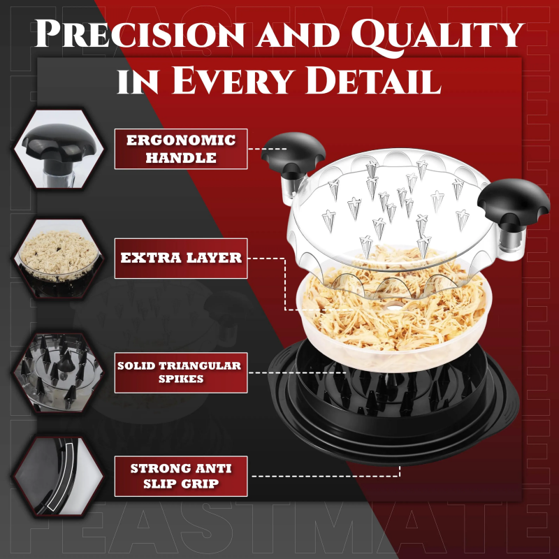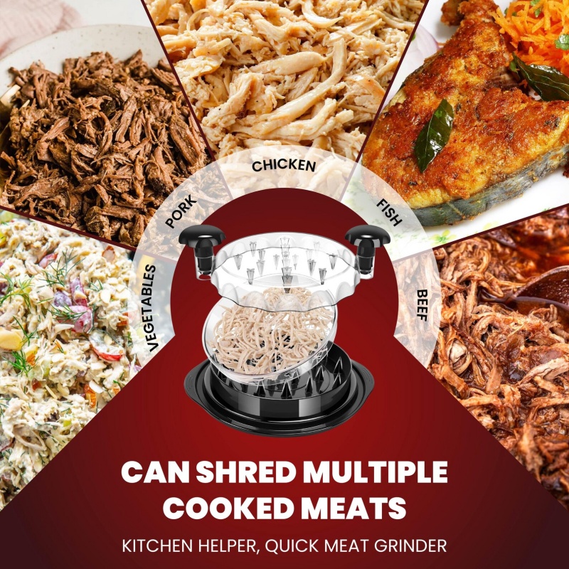 【可拆盘便于转移】:通过可拆卸底座简化餐食准备,你可以直接将切碎的肉品转移到餐具中——无需叉子或脏手。让它成为最适合你的鸡肉碎工具。