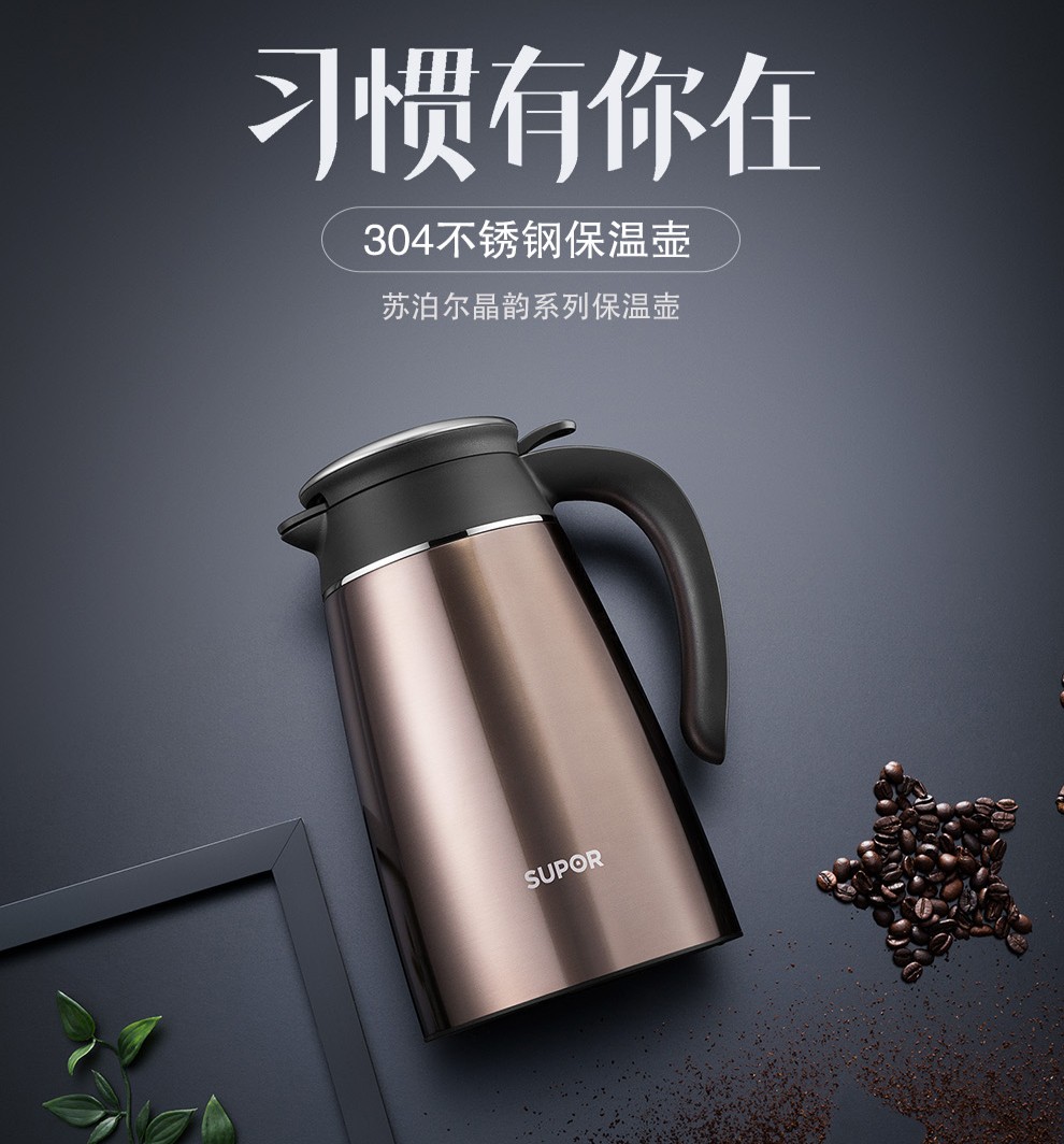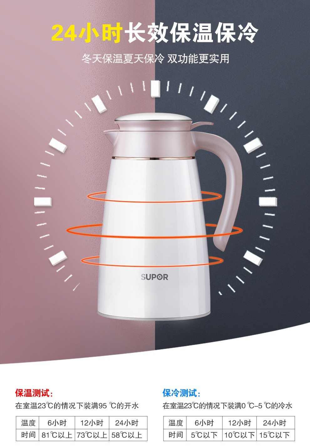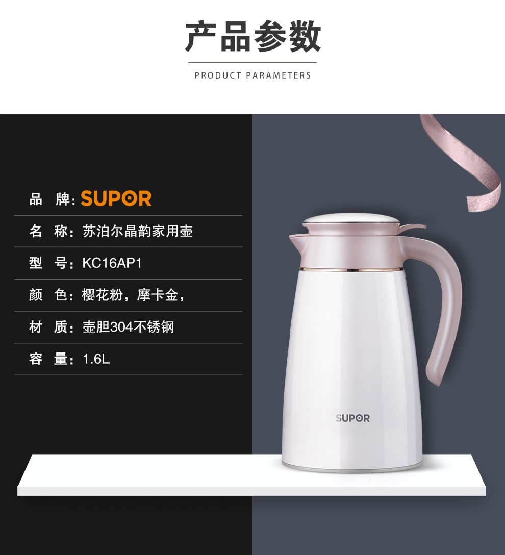 苏泊尔(SUPOR)304不锈钢高真空保温瓶KC16AP1樱花粉