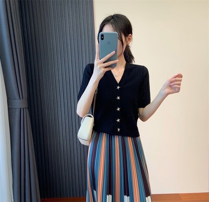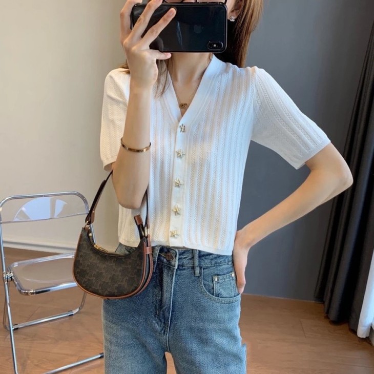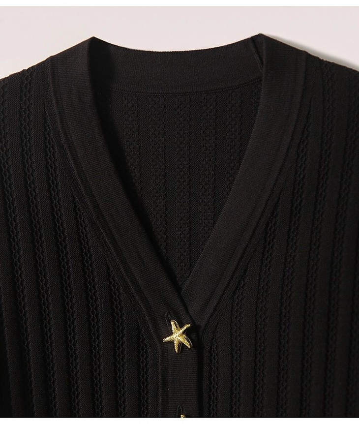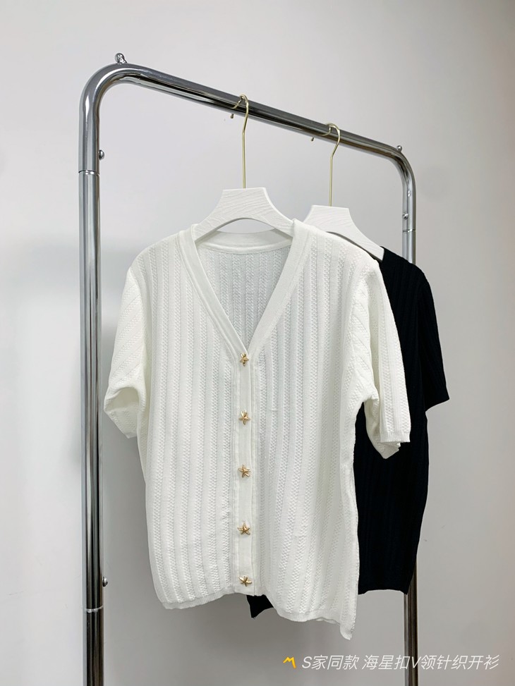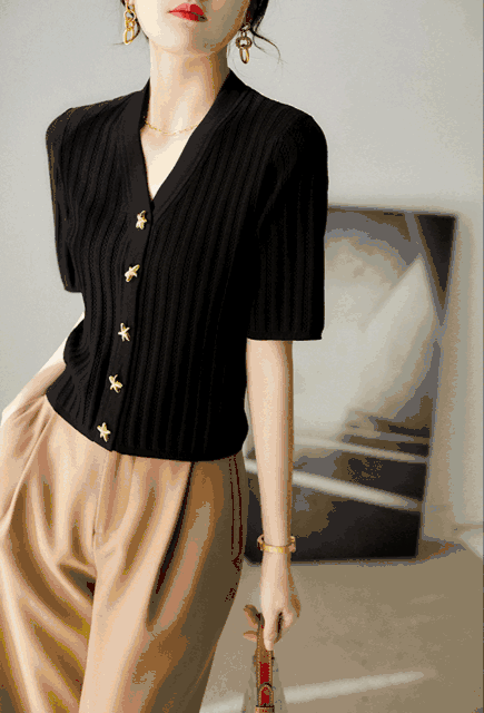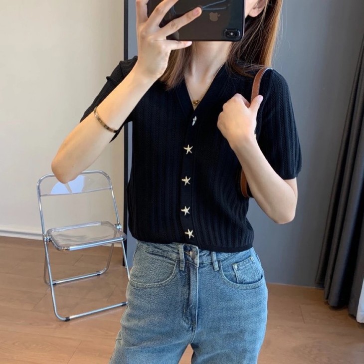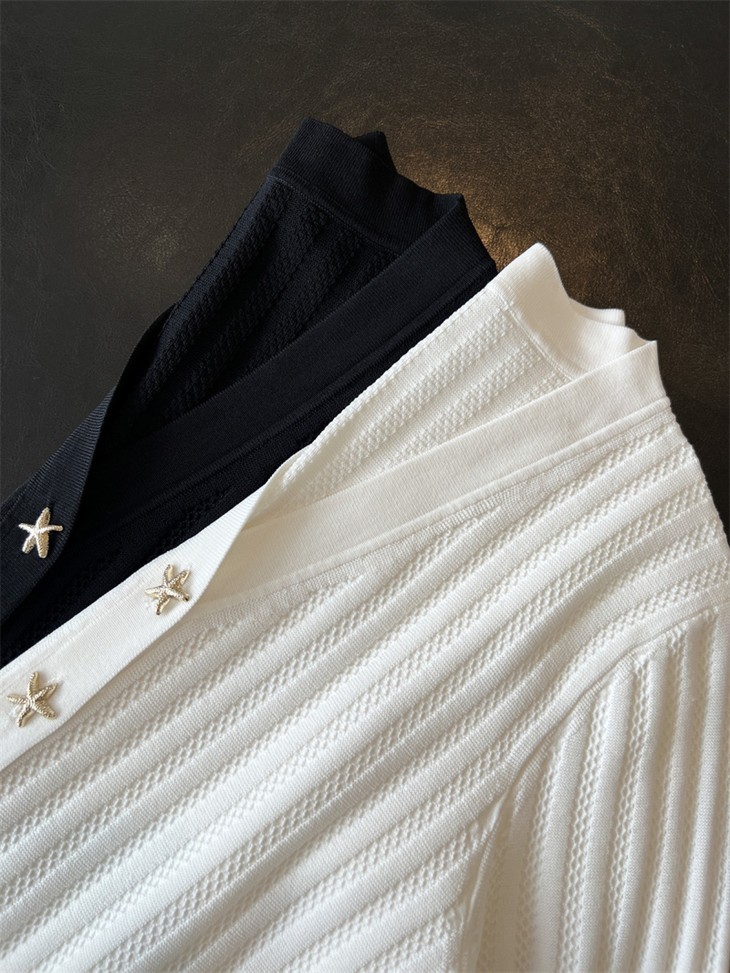 【法式海星扣V领冰丝开衫】高弹不变形,不勒肉,透气性高,亲肤质地,柔软细腻,五角星独特设计,上身百搭