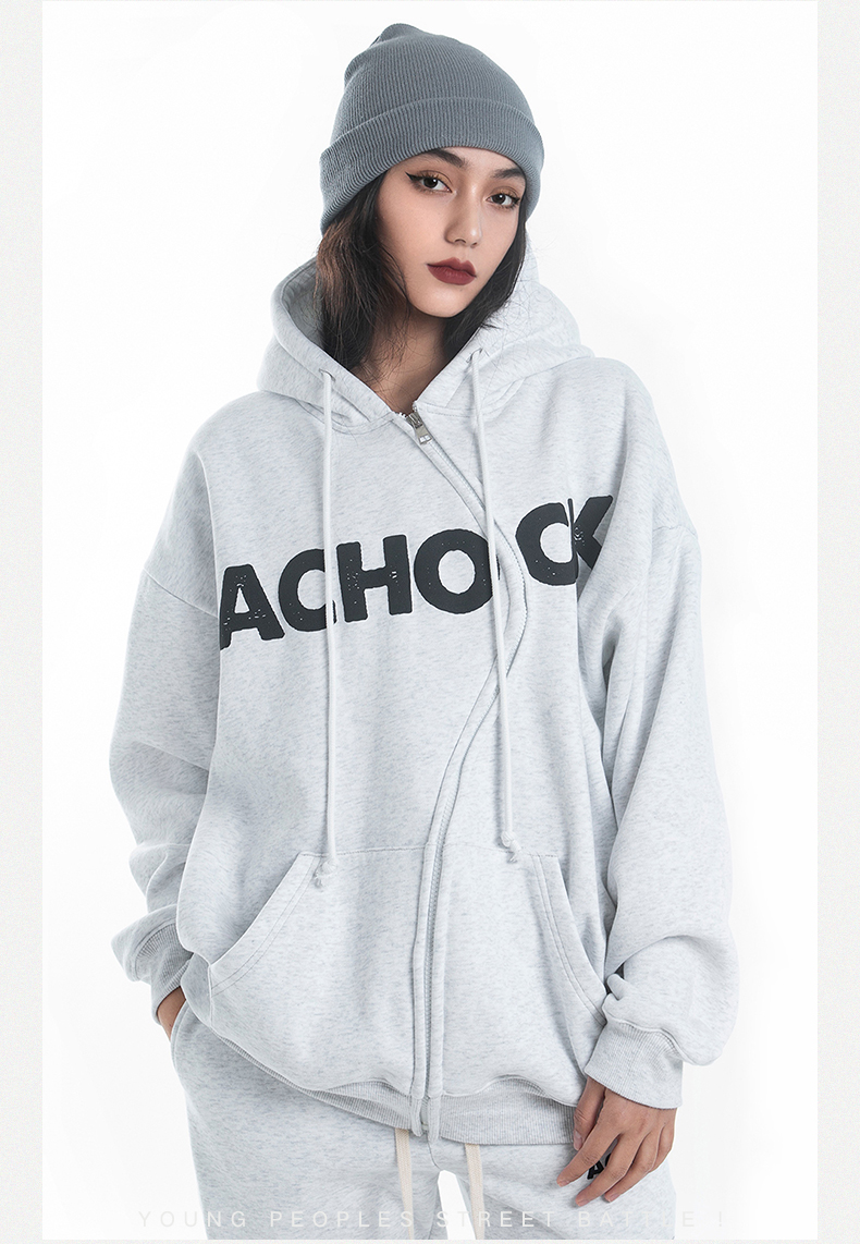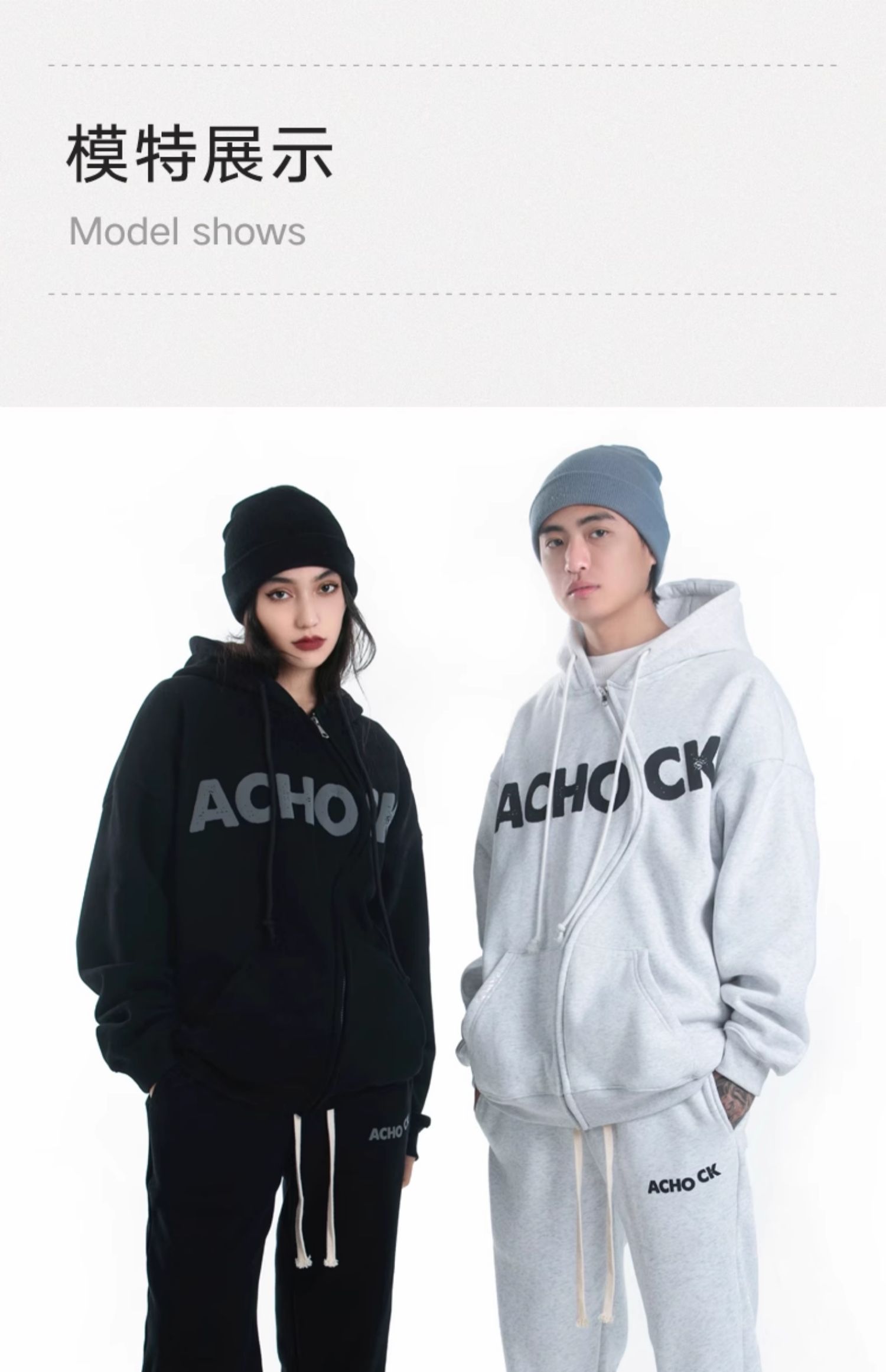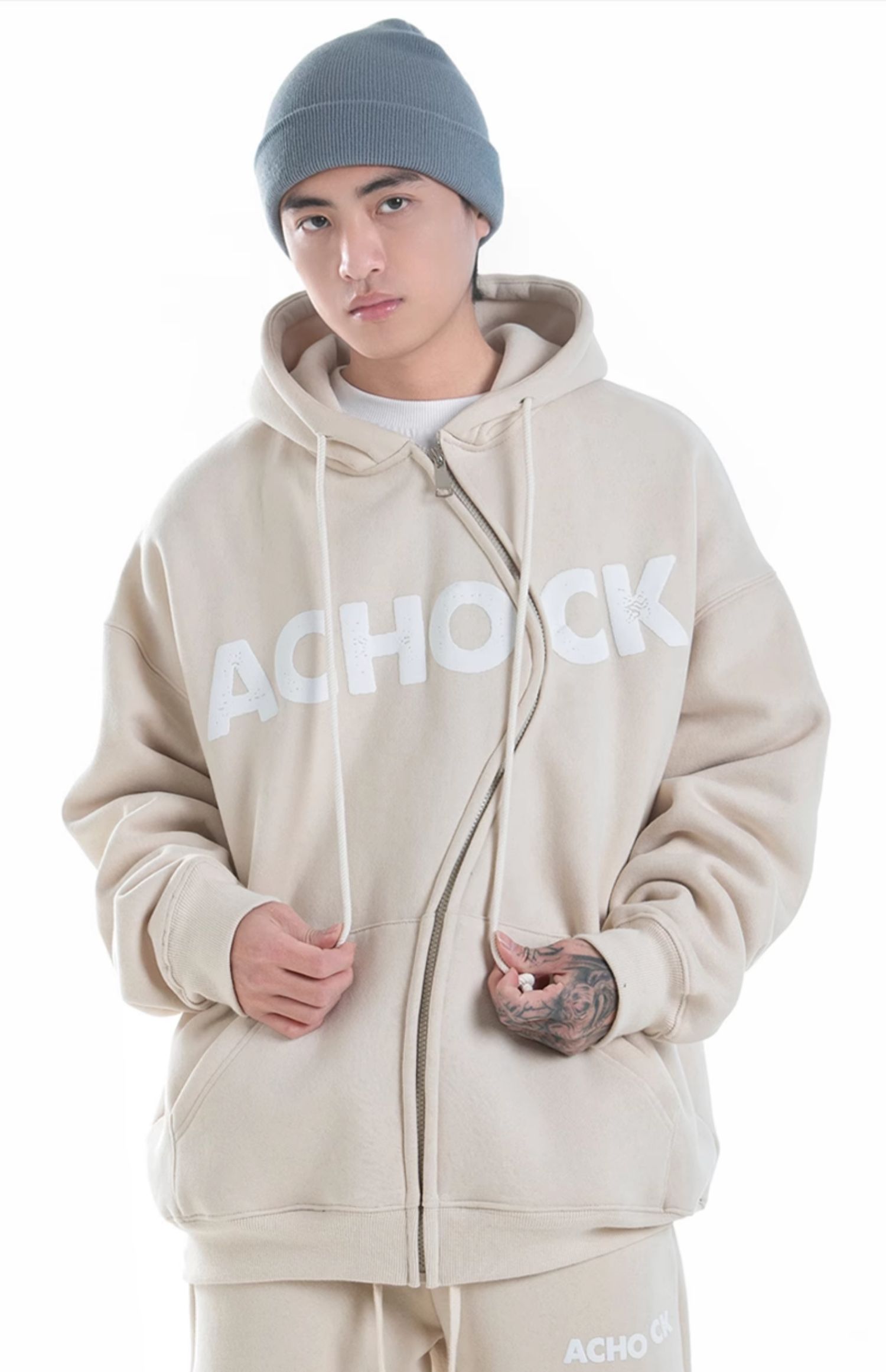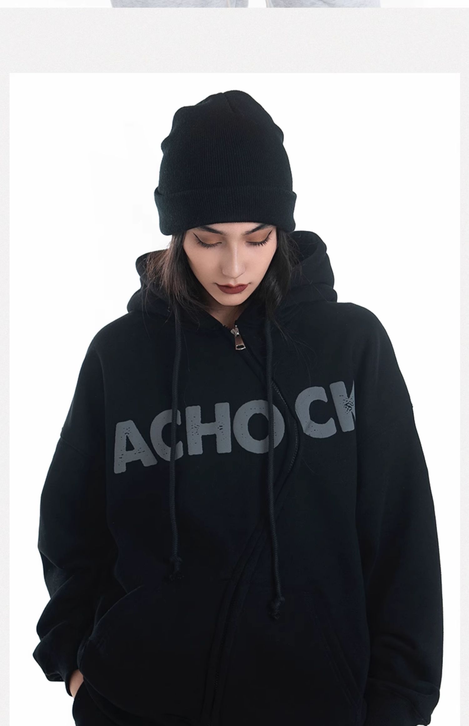 【Achock官方店】 国潮个性S拉链发泡印花加绒卫衣开衫连帽外套