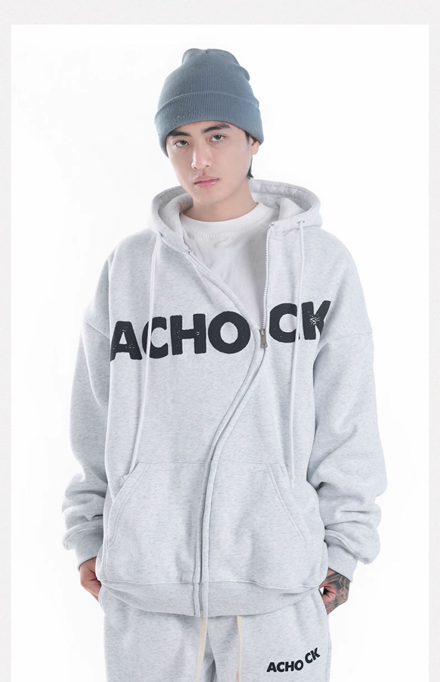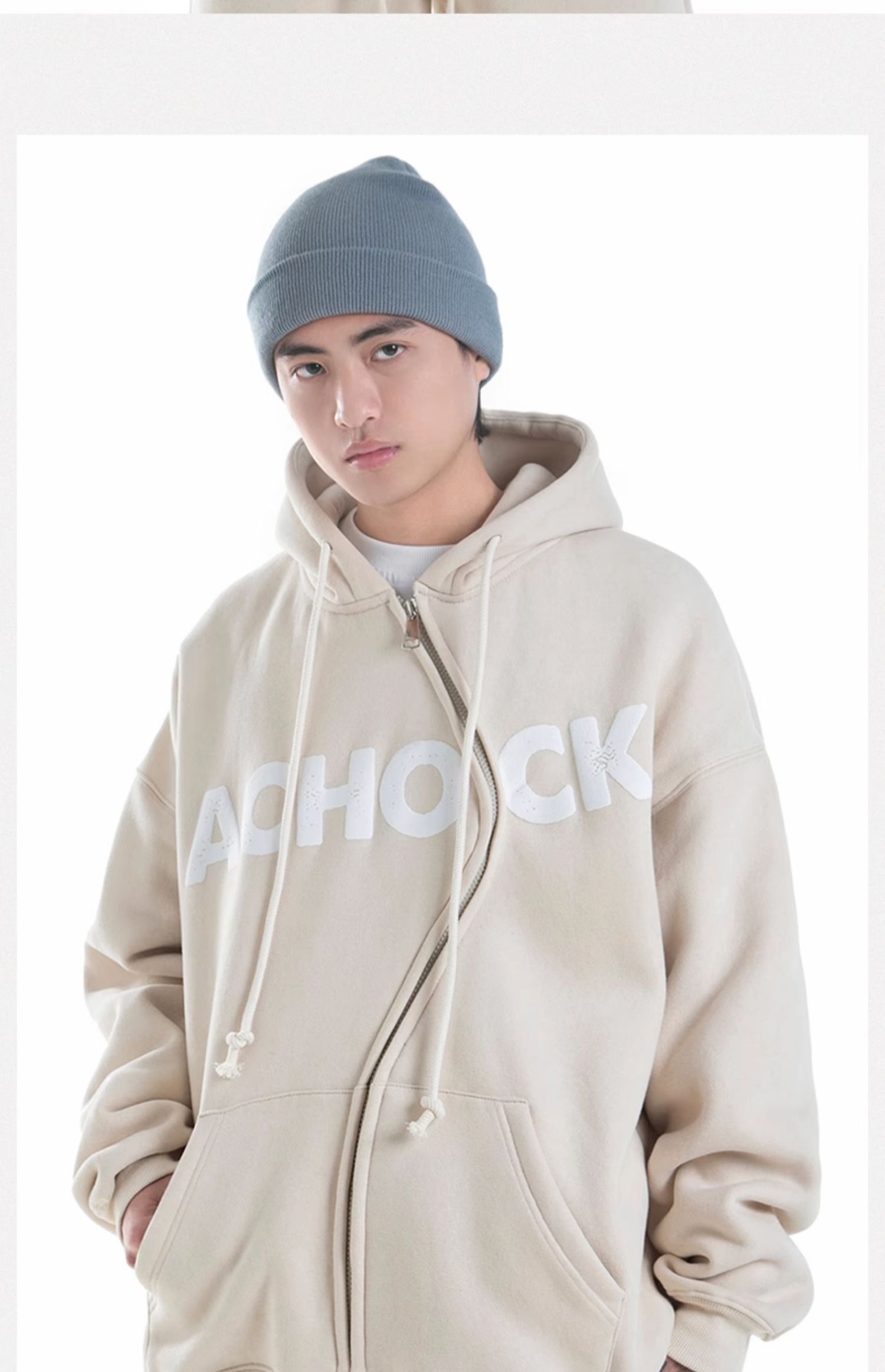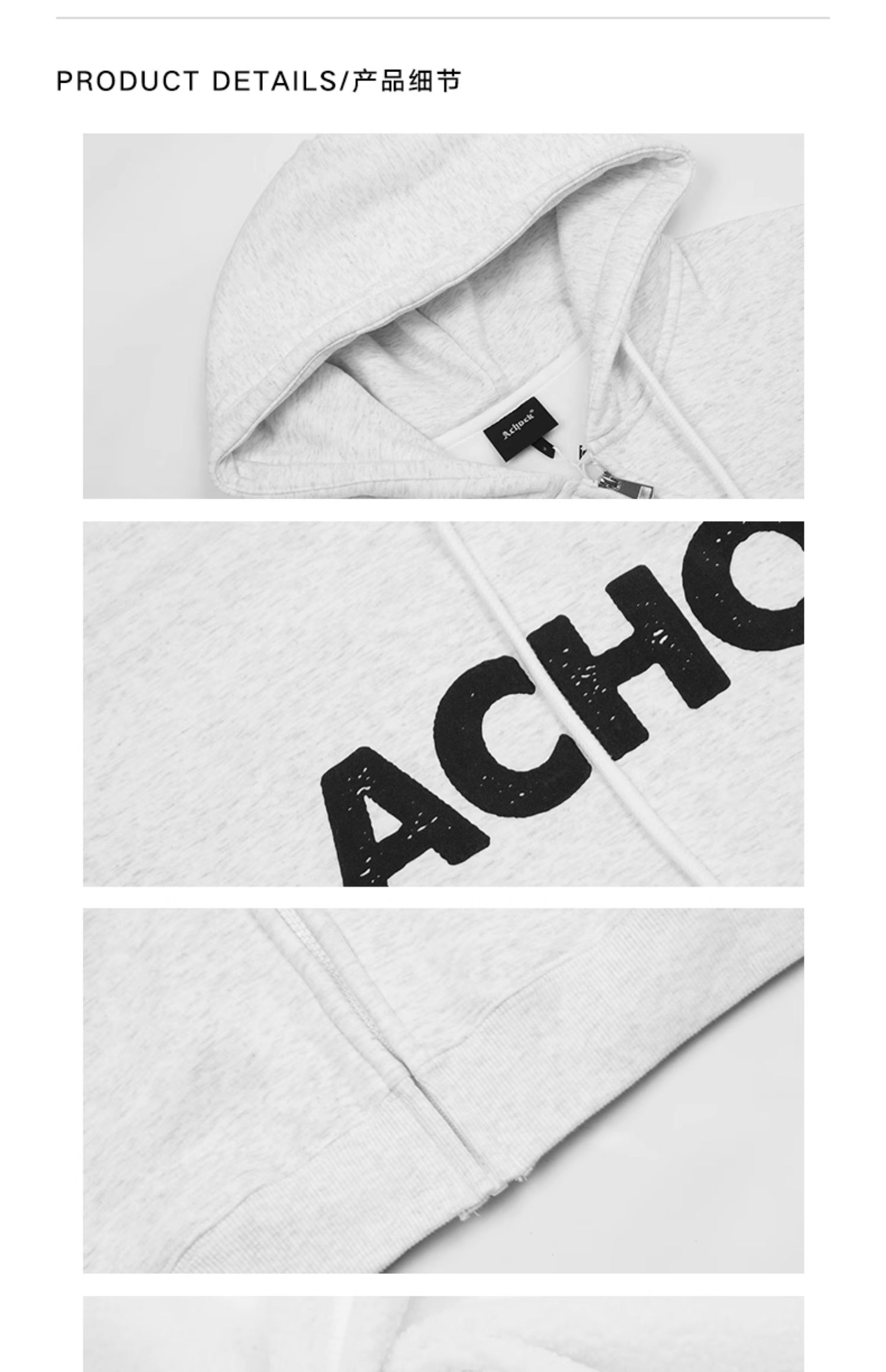 【Achock官方店】 国潮个性S拉链发泡印花加绒卫衣开衫连帽外套