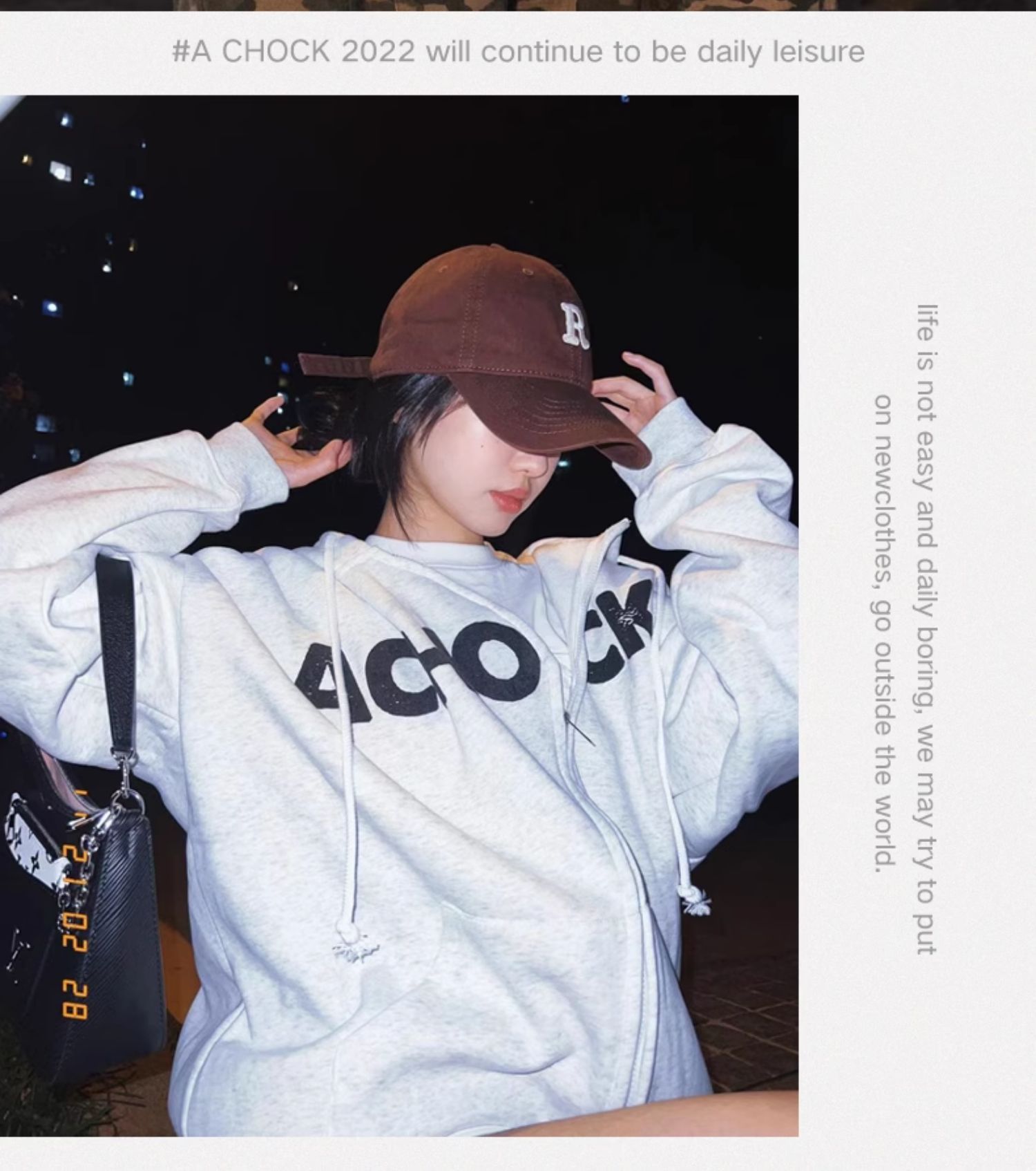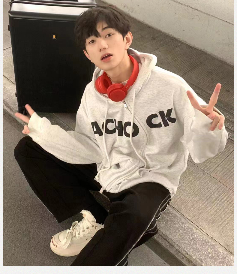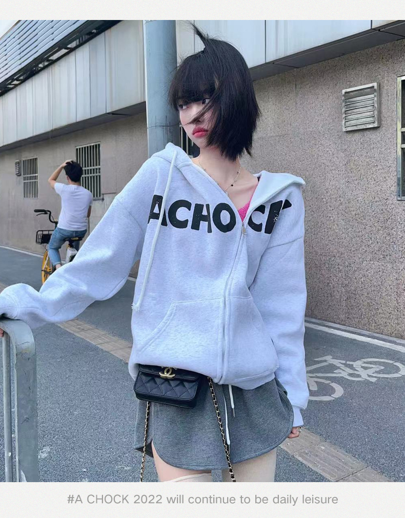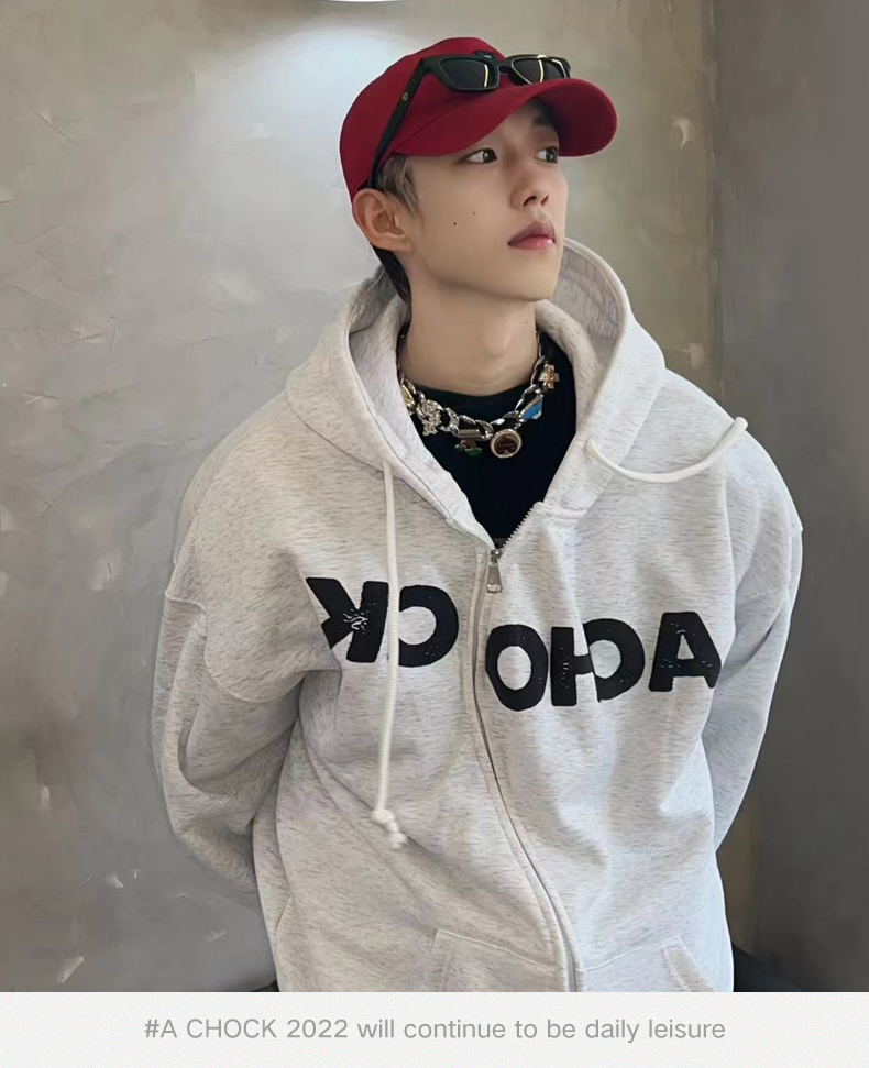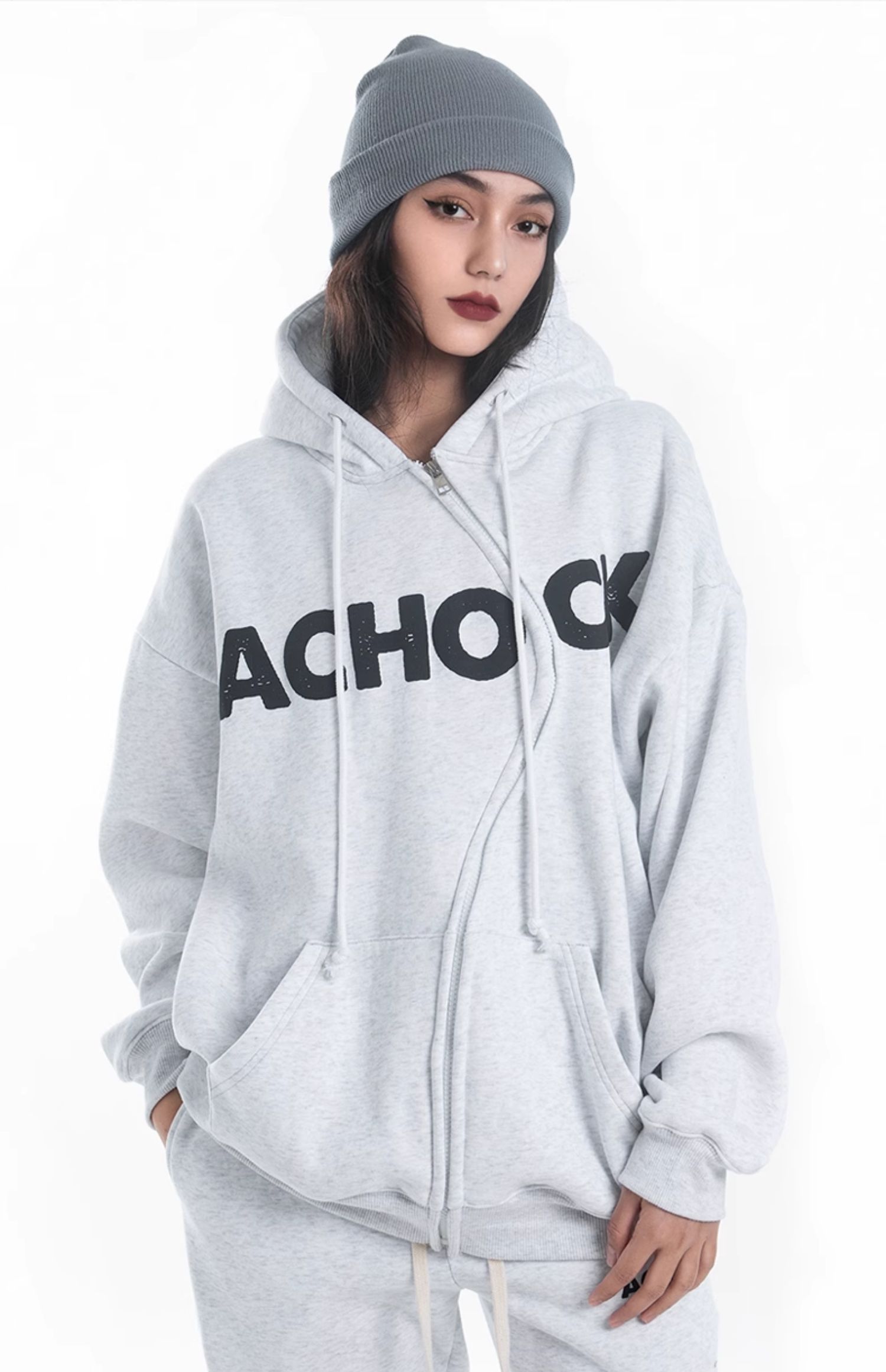 【Achock官方店】 国潮个性S拉链发泡印花加绒卫衣开衫连帽外套