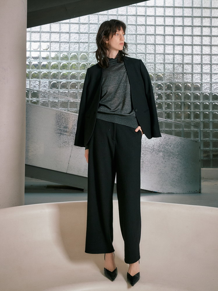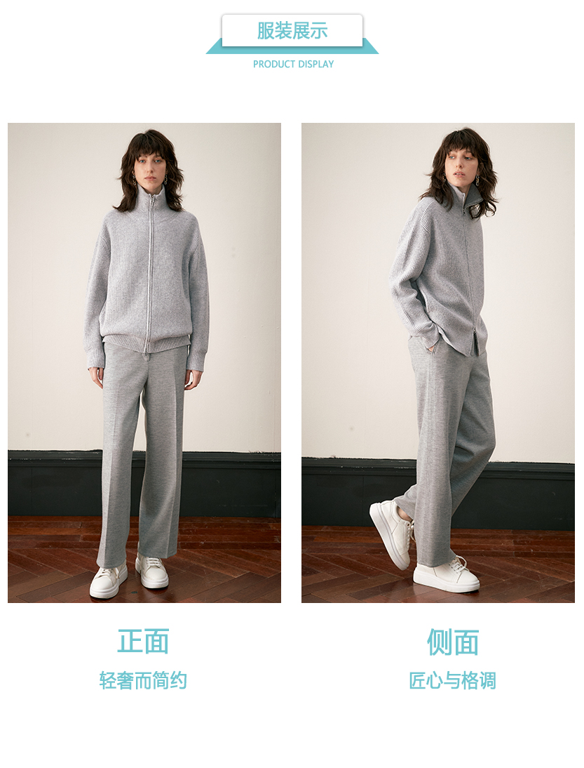 ICB日系秋季通勤职业OL宽松版纯羊毛休闲长裤阔腿裤下装商场同款