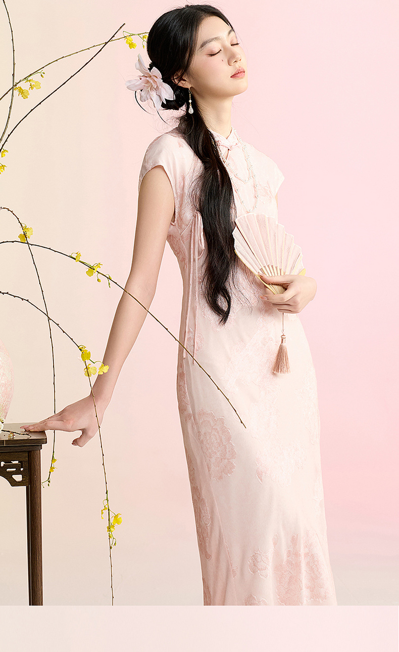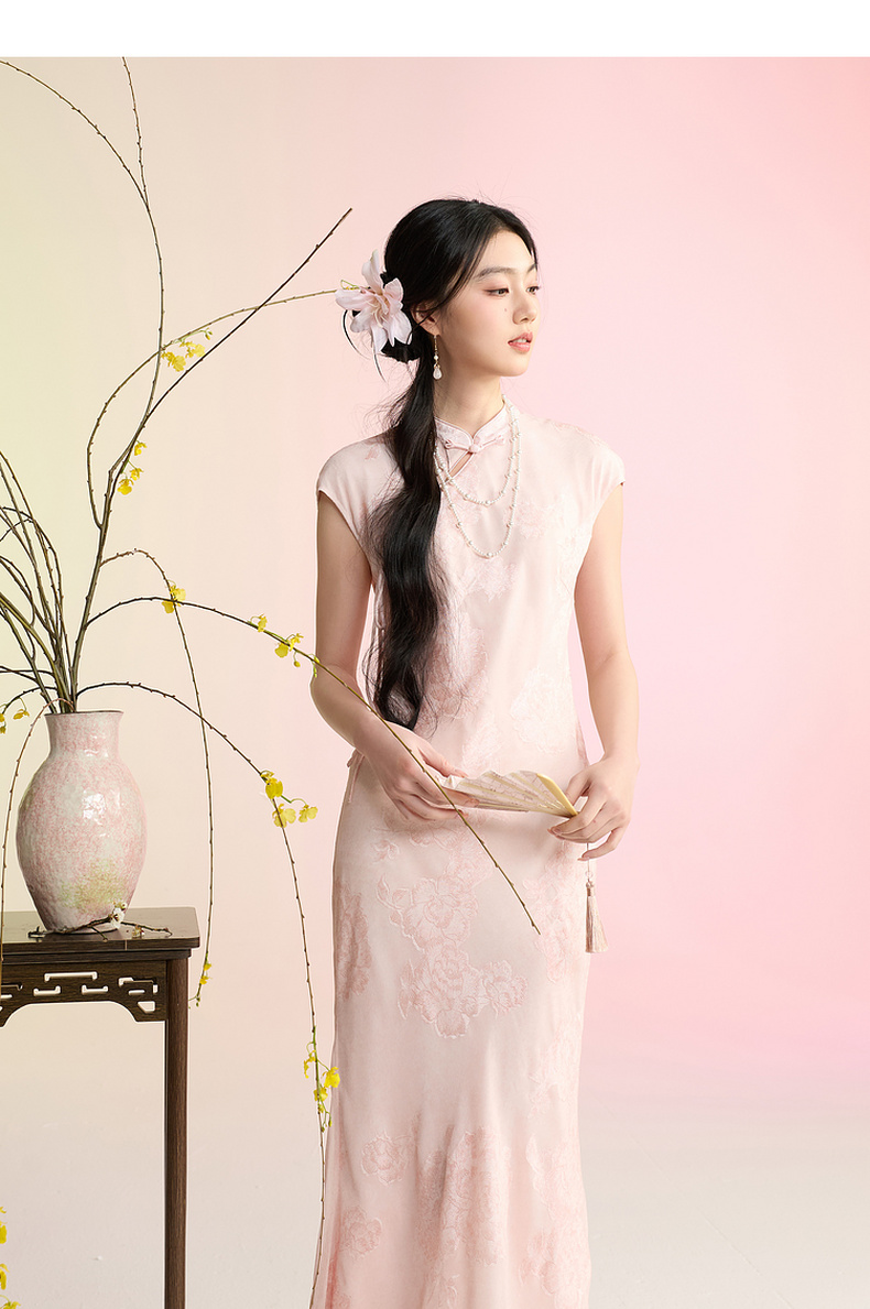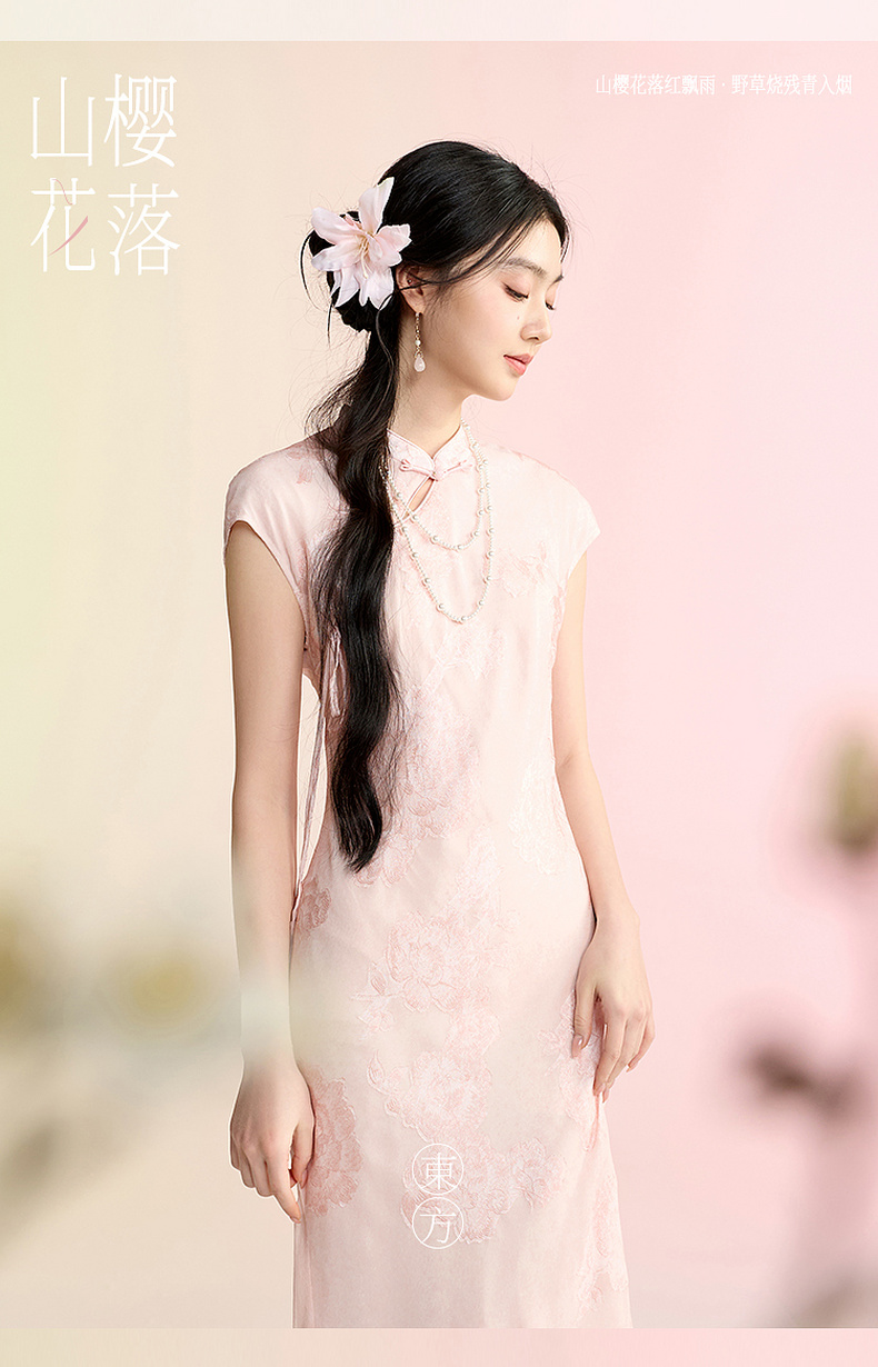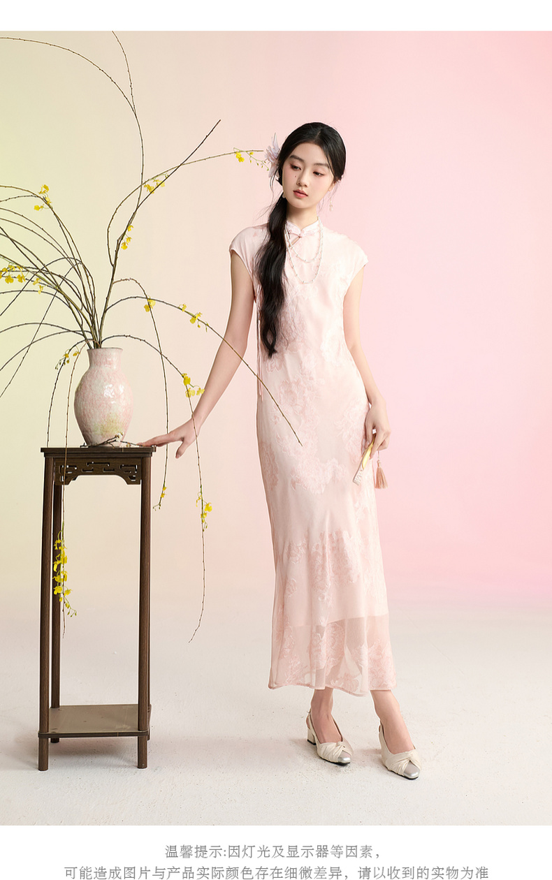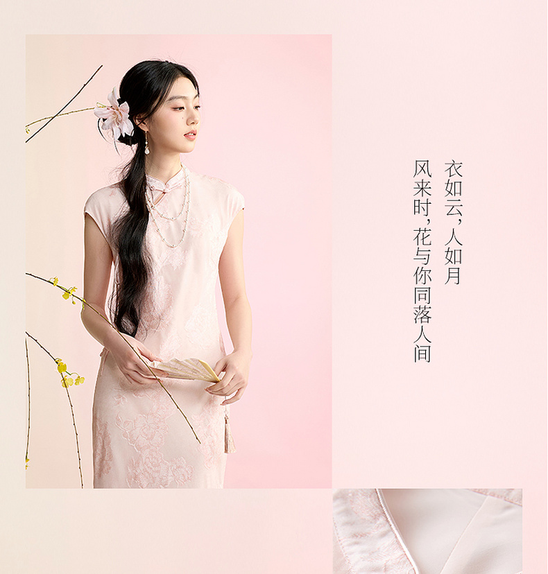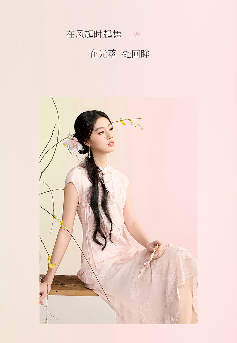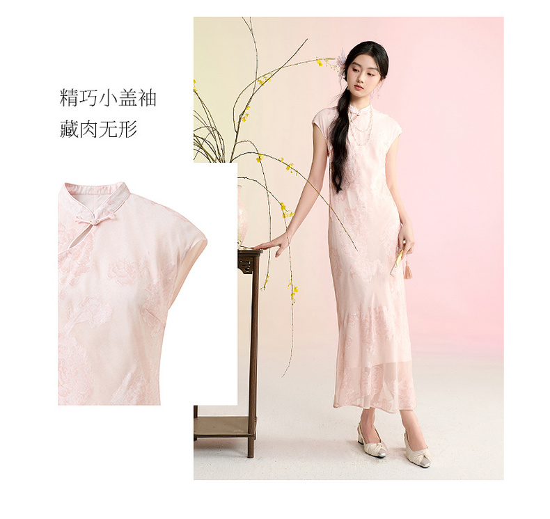 【宋轶同款】三彩[山樱花落]2026春季新款新中式连衣裙提花剪花鱼尾长裙C