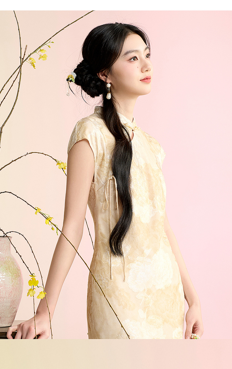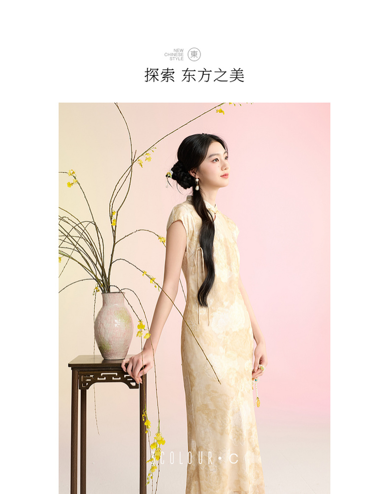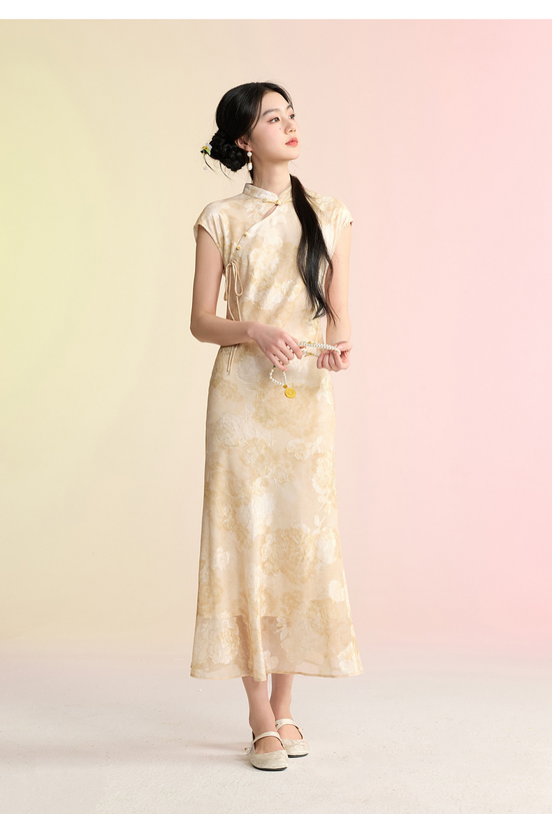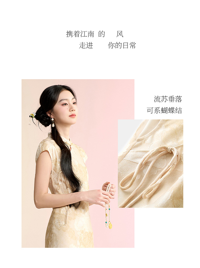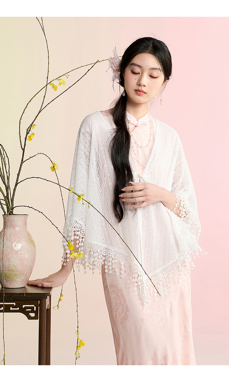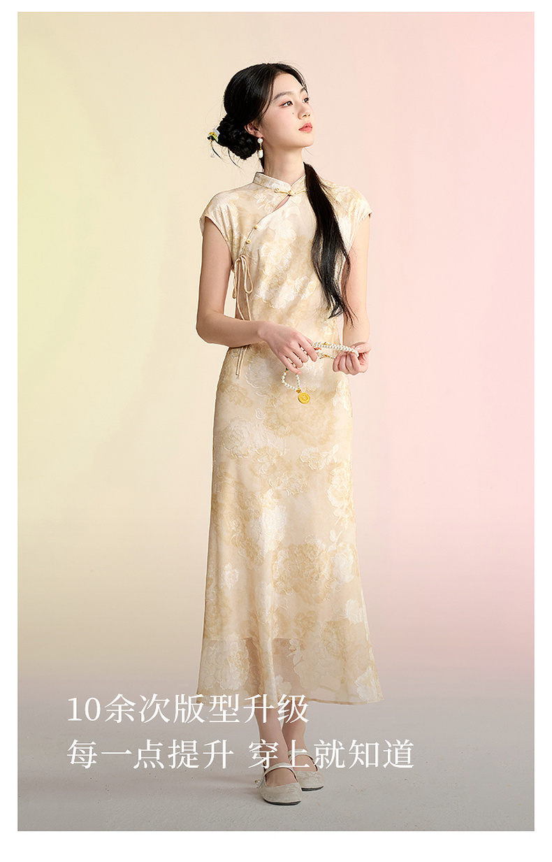 【宋轶同款】三彩[山樱花落]2026春季新款新中式连衣裙提花剪花鱼尾长裙C