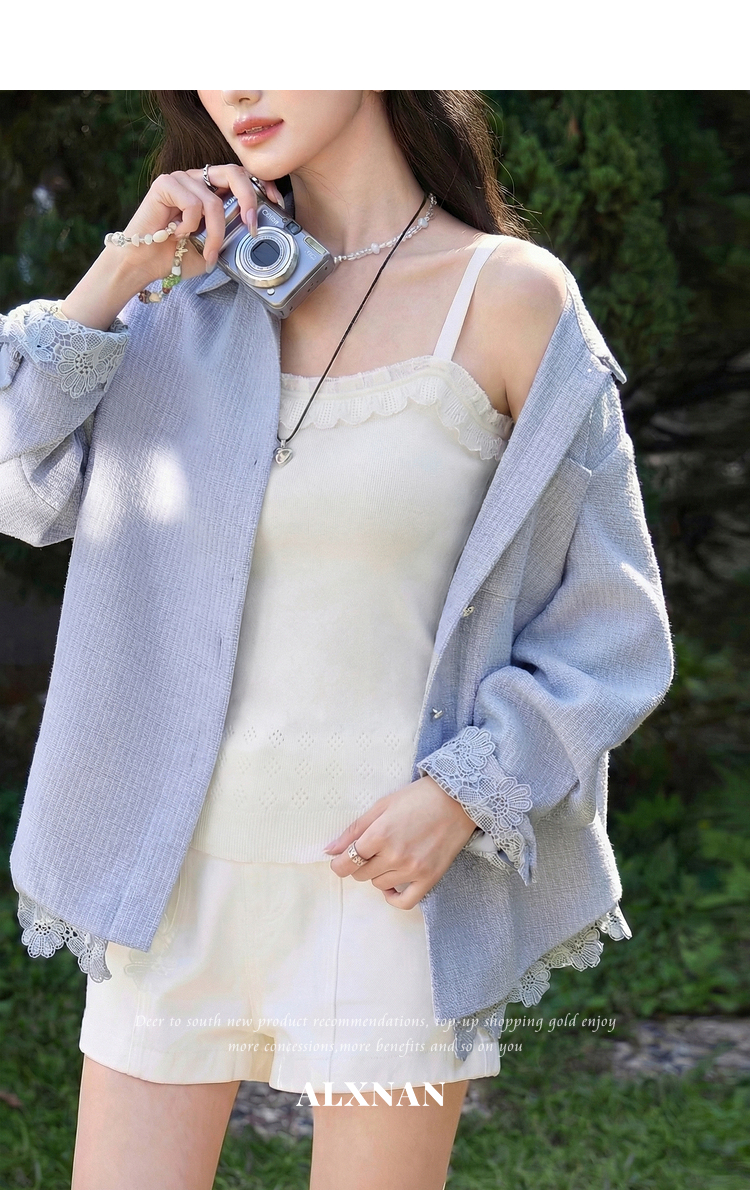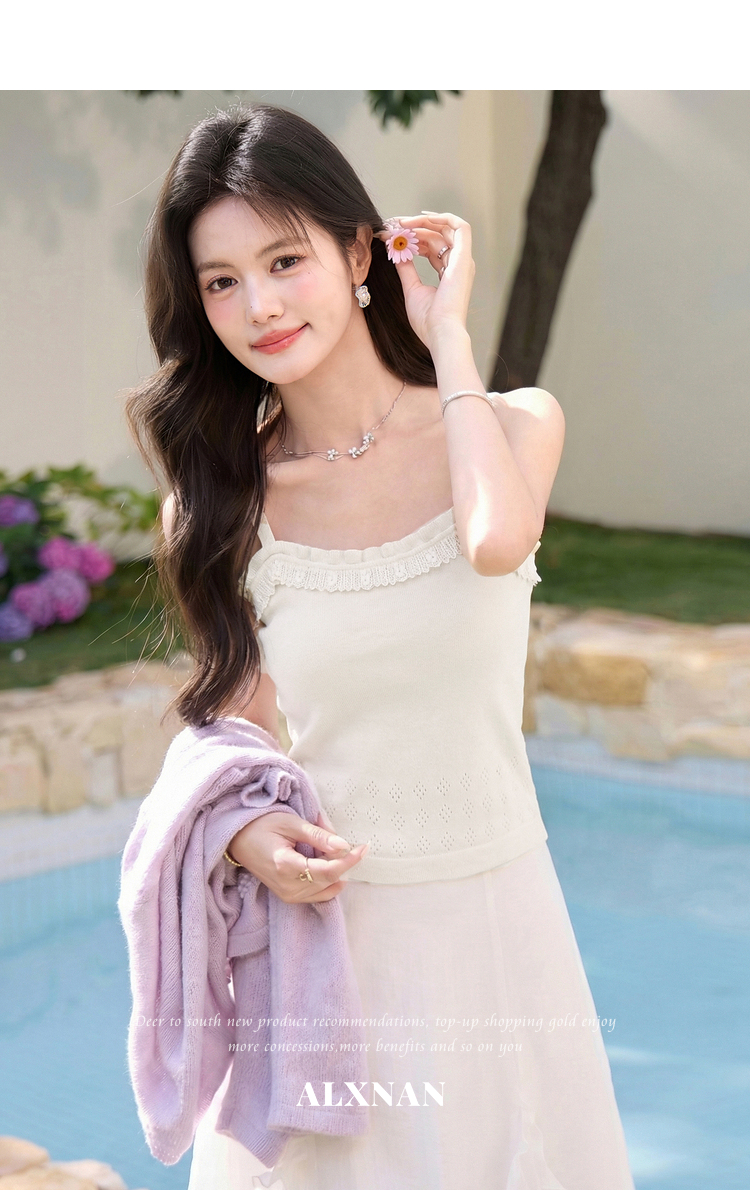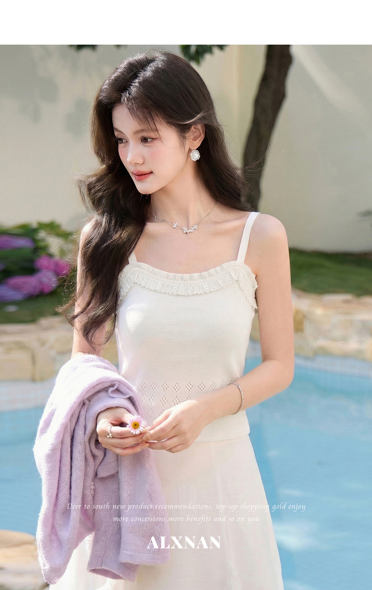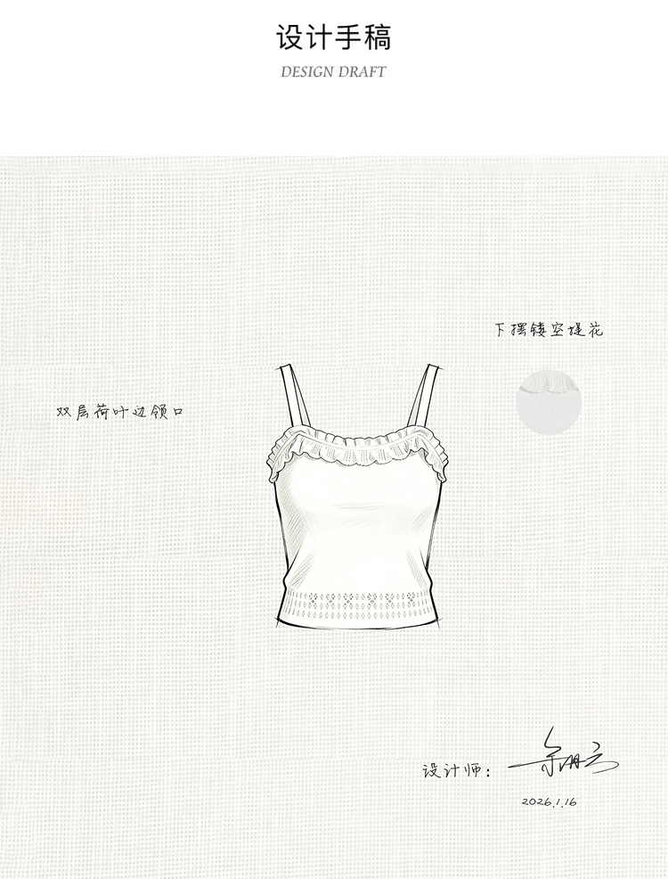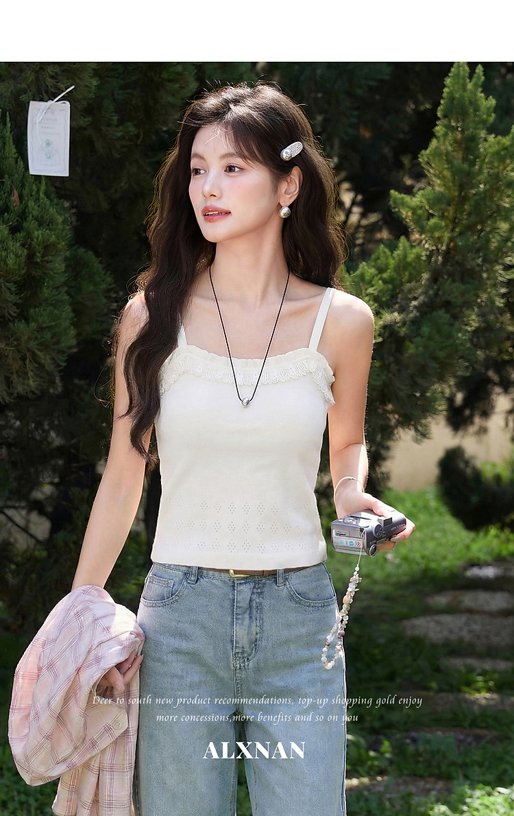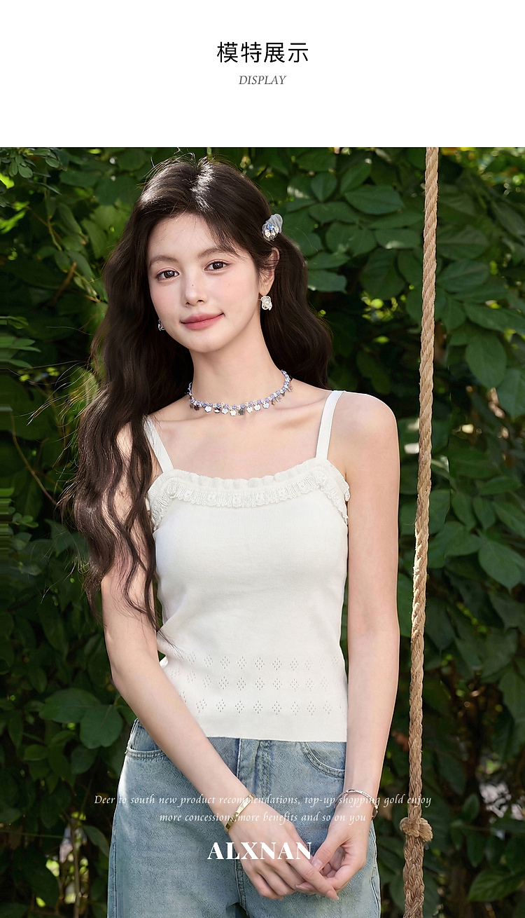 鹿向南「微风轻拂」米白色吊带内搭背心女夏新款小众短款法式上衣