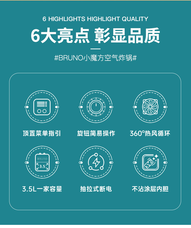 日本BRUNO小魔方空气炸锅新款家用多功能全自动空气电炸锅大容量
