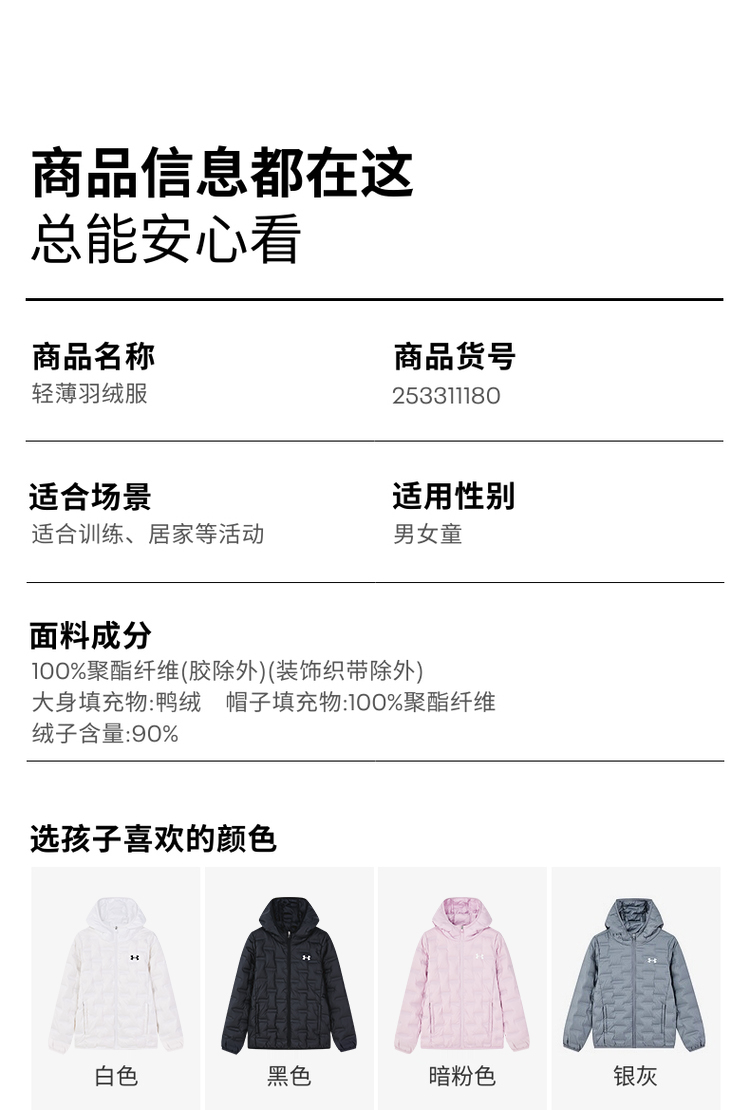 【年货节福利】Under Armour安德玛儿童轻薄羽绒服253311180