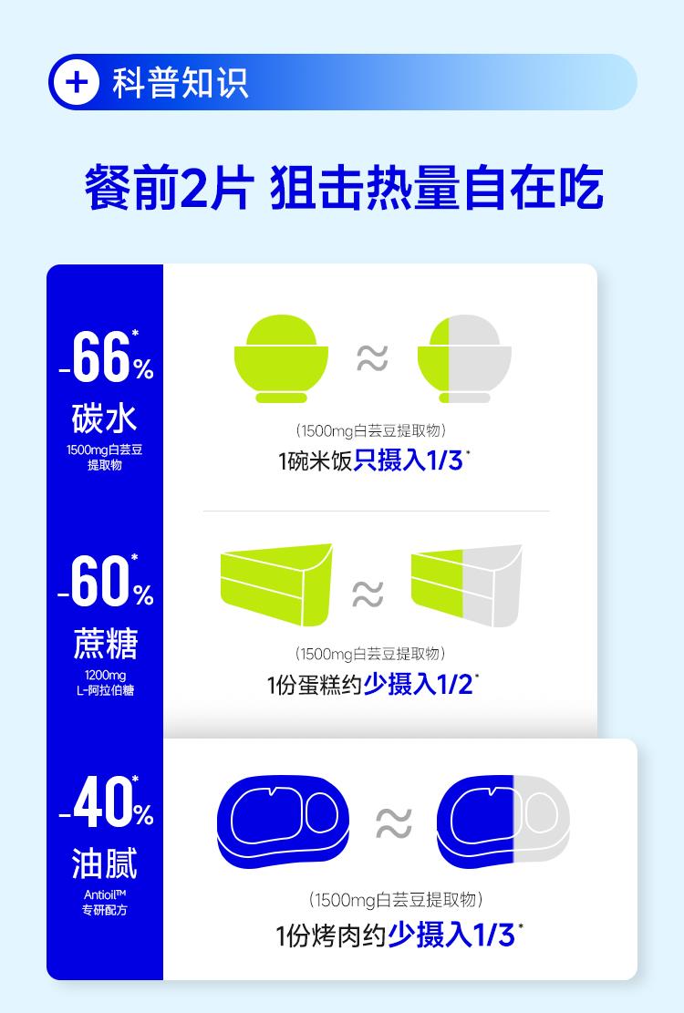 WonderLab白芸豆阻断片新版 柠檬西柚口味/青提茉莉口味,独特四角结构,1500mg白芸豆提取物,阻断66%的淀粉分解