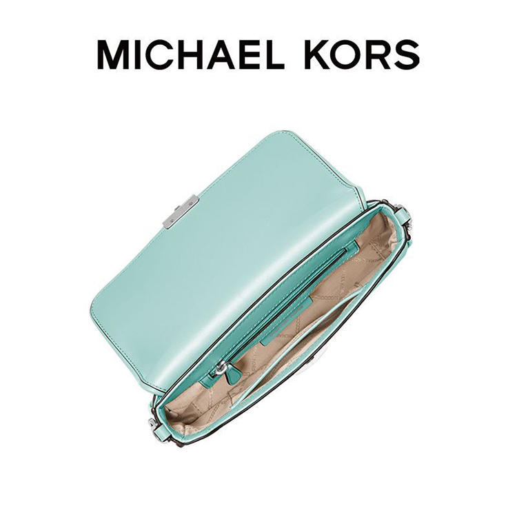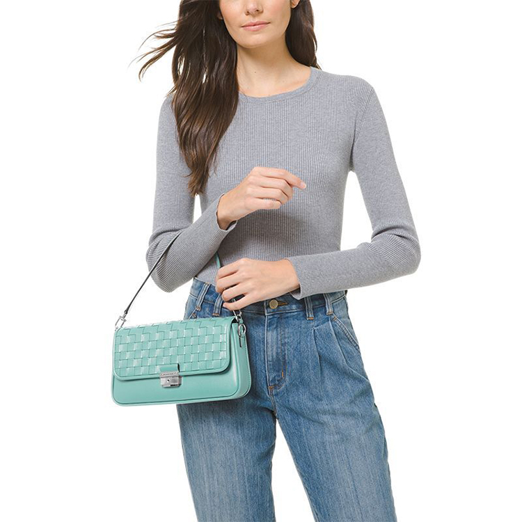 【品牌】MK Bradshaw 小号皮质编织拼接单肩手提女包浅蓝绿色