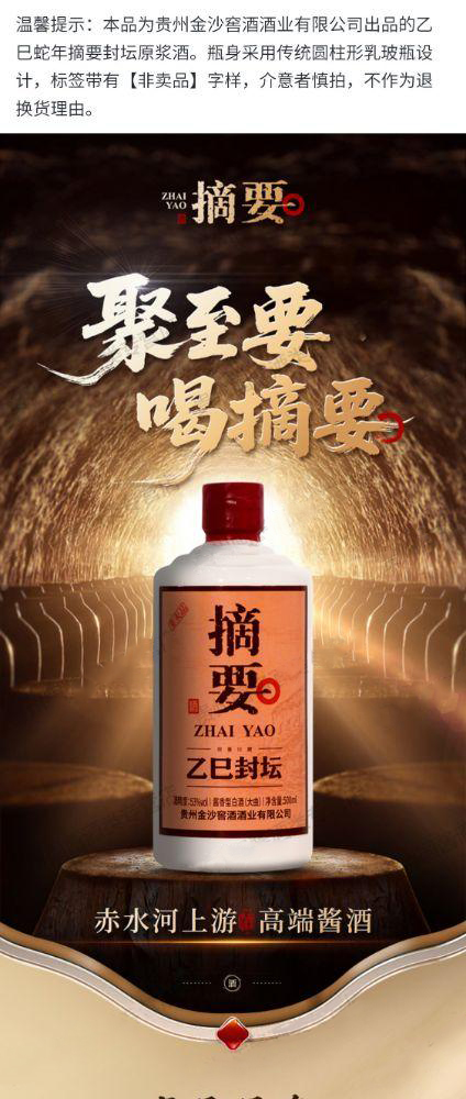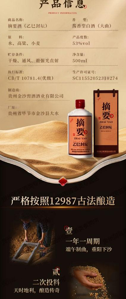 【绝版尾货】摘要 乙巳封坛酒 酱香型白酒 53度 500ml单瓶 拍6发原箱