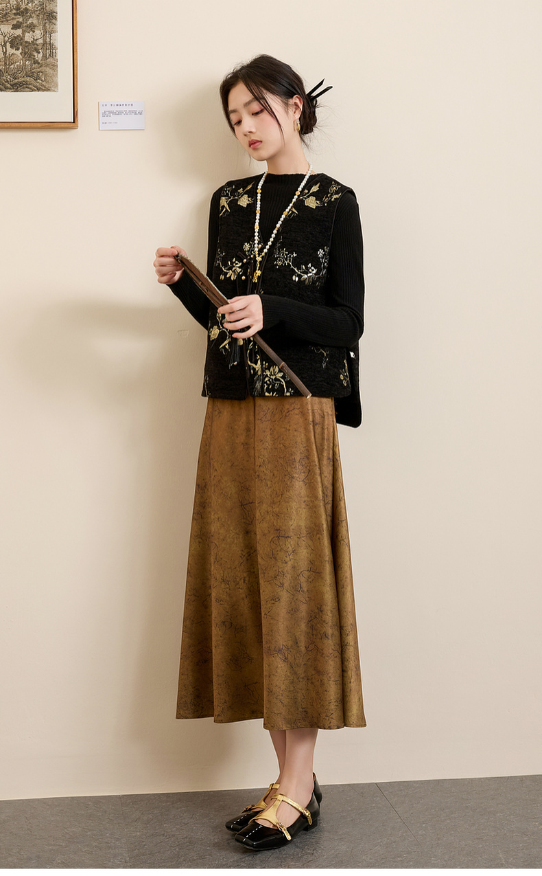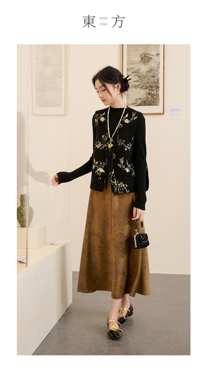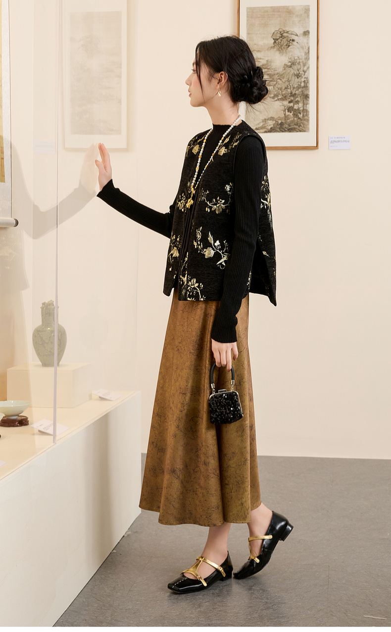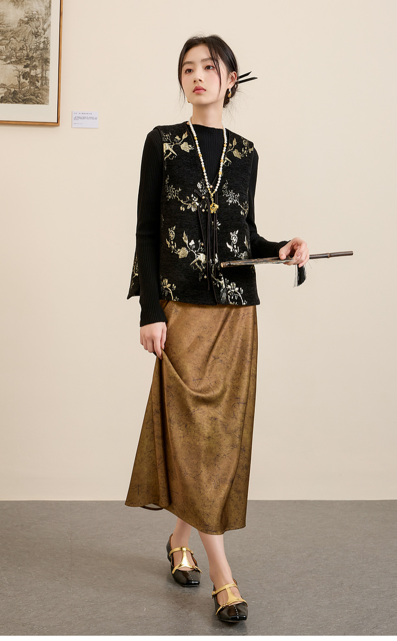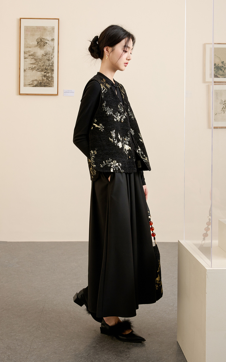 三彩【鎏金浮梦】2026春季新款新中式马甲V领盘扣提花无袖棉服女
