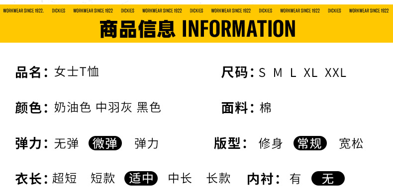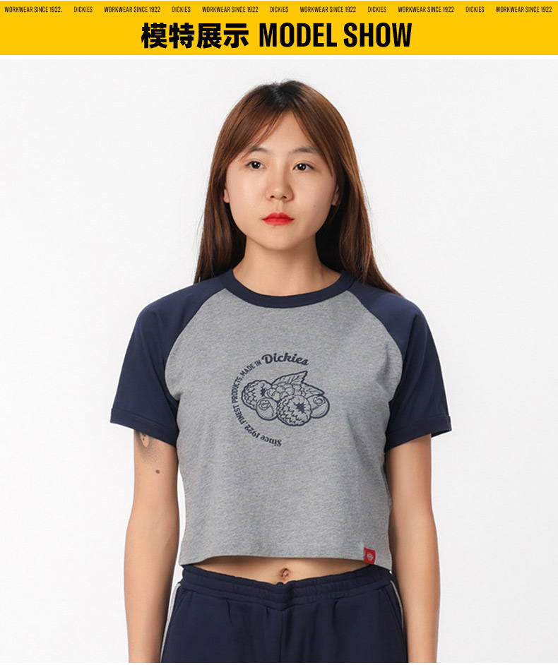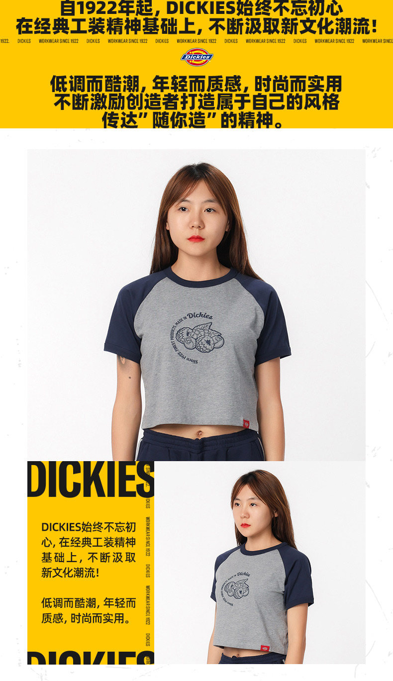 Dickies短袖T恤 女式短款印花插肩袖舒适圆领短袖T恤 DK0A87CX