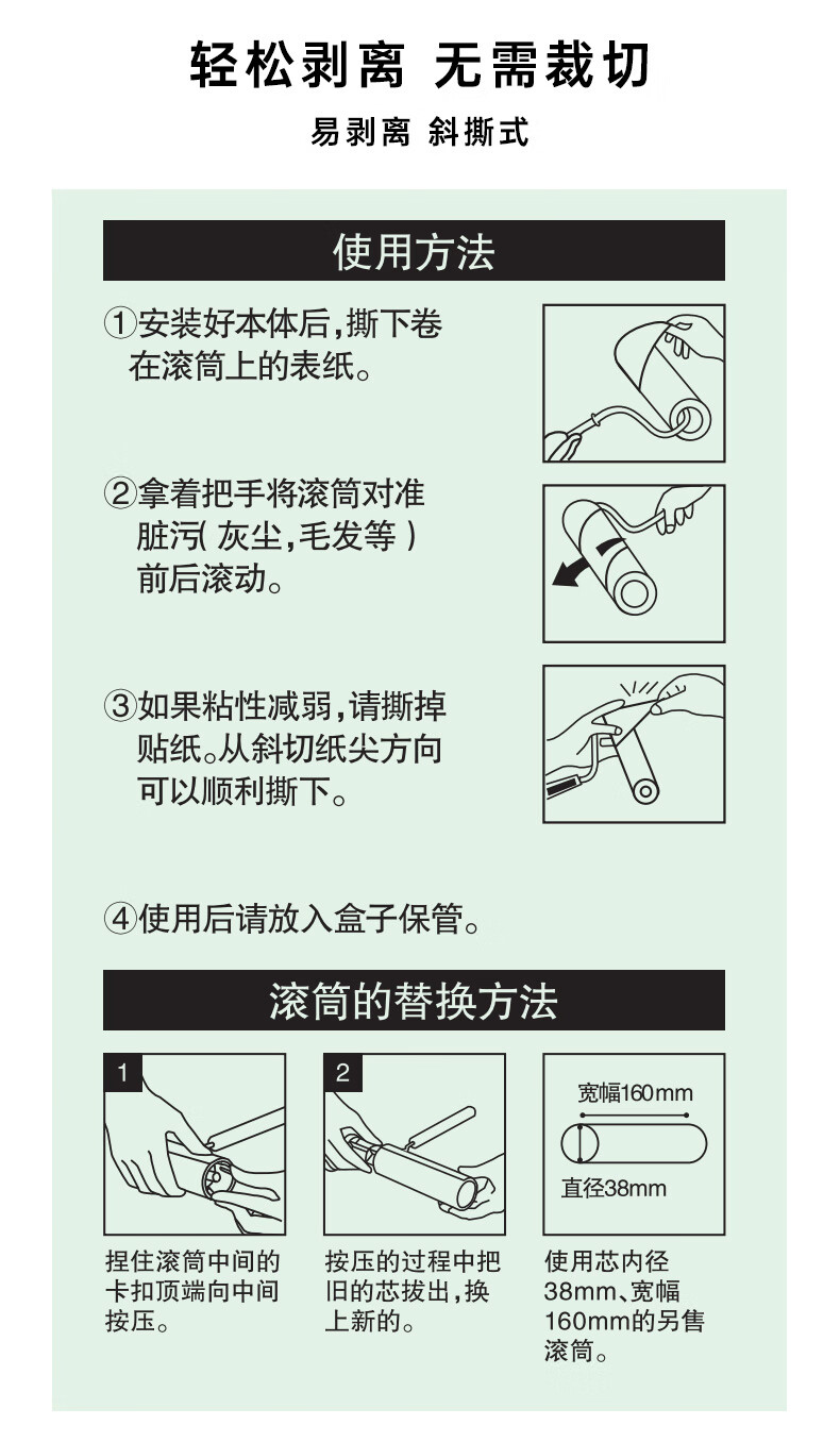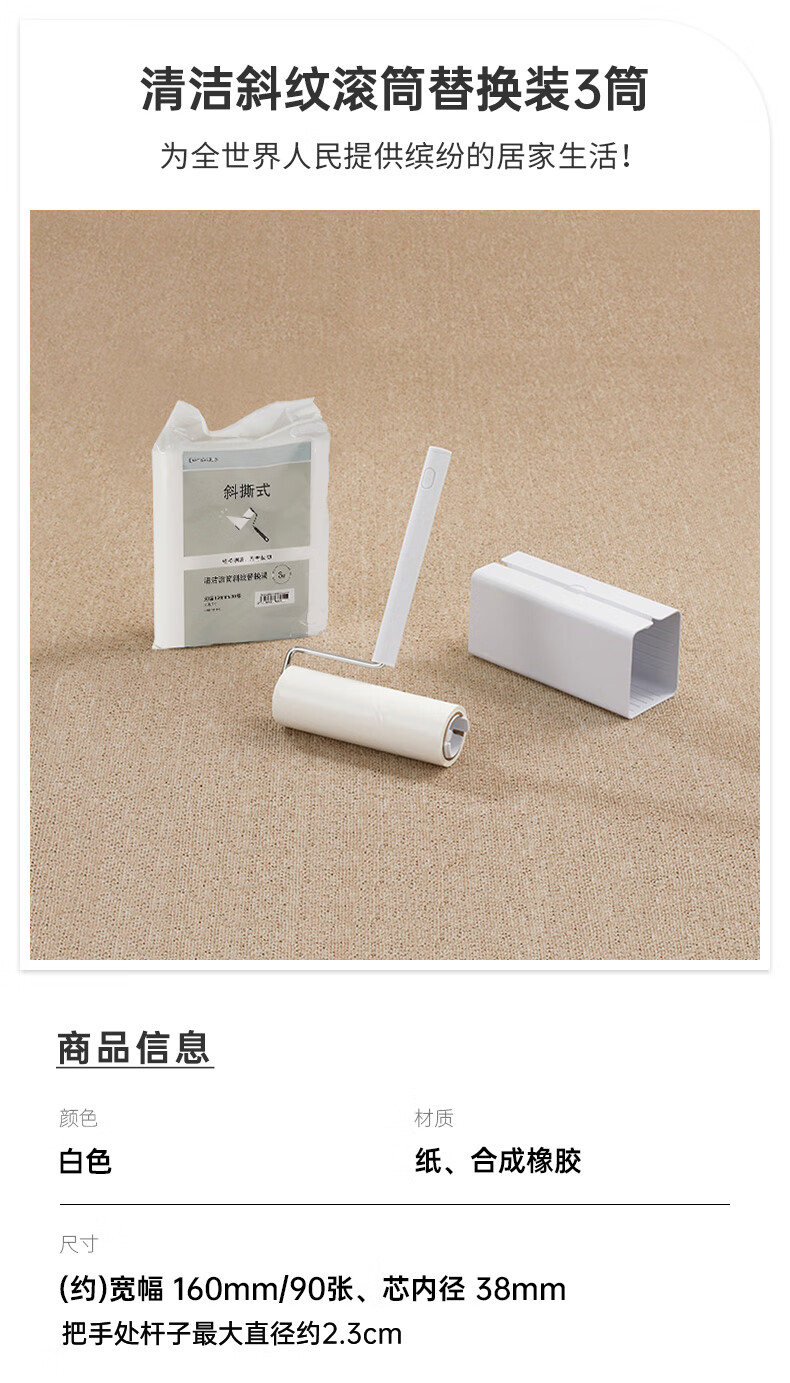 强粘性斜纹滚筒替换装3筒160mmX90张