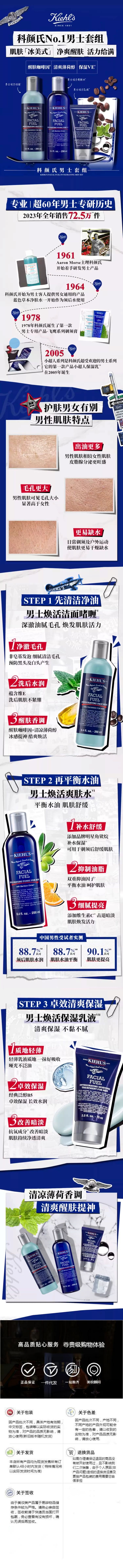 科颜氏(Kiehl's)男士洗面奶250ml+水250ml+乳液125ml
