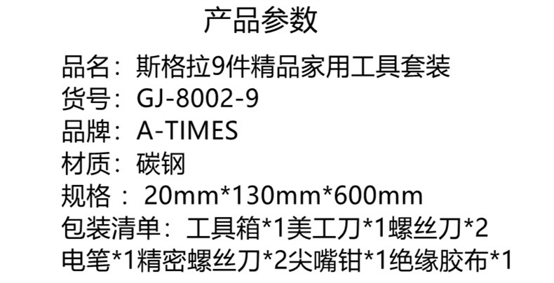 A-TIMES斯格拉9件精品家用工具套装GJ-8002-9