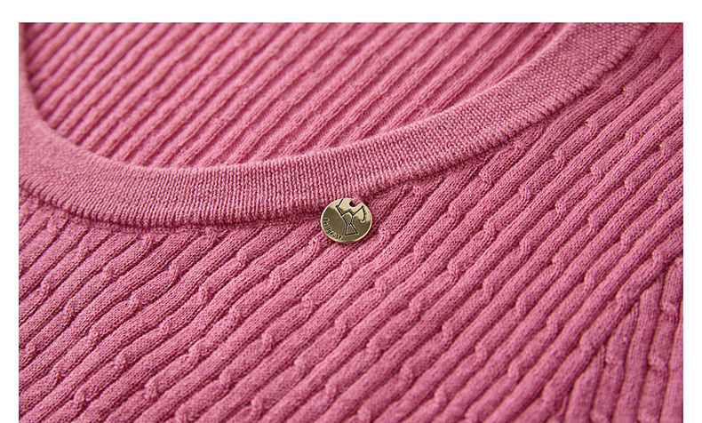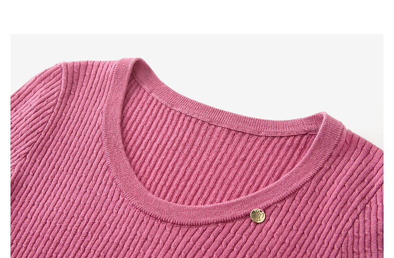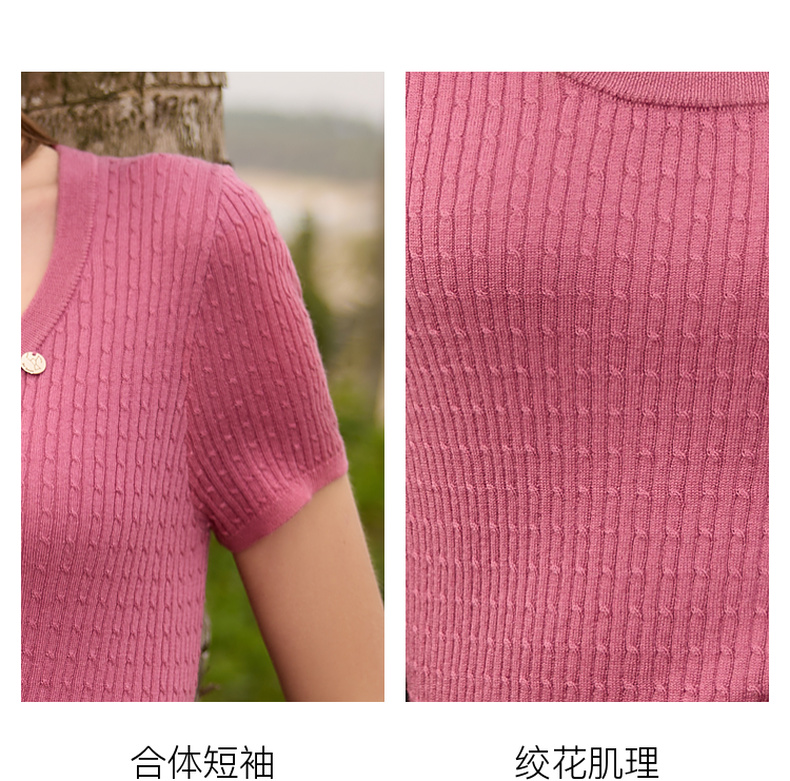 三彩2025春季新款绵羊毛针织衫修身短袖绞花肌理毛衫套头衫M