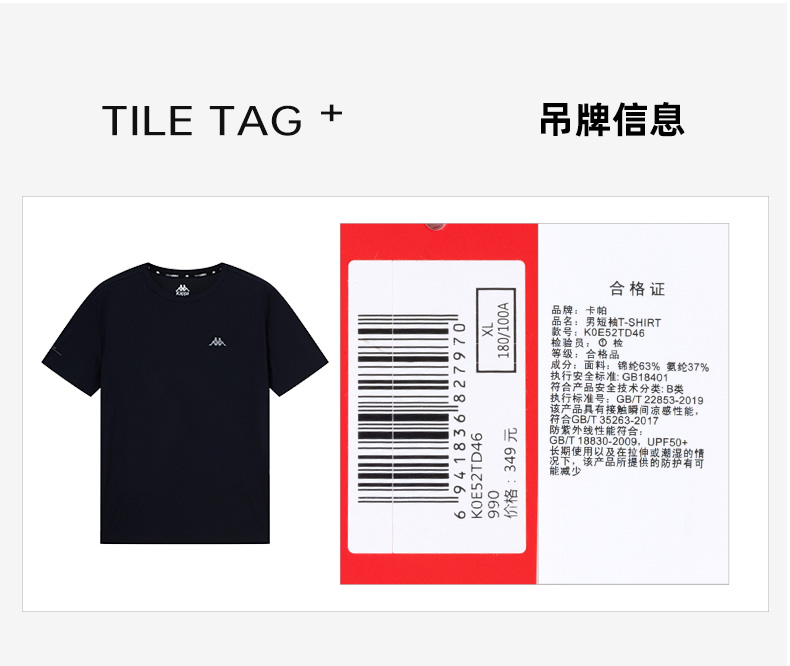 Kappa卡帕背靠背男士短袖t恤2024新款夏凉感防晒运动半袖上衣男款K0E52TD46