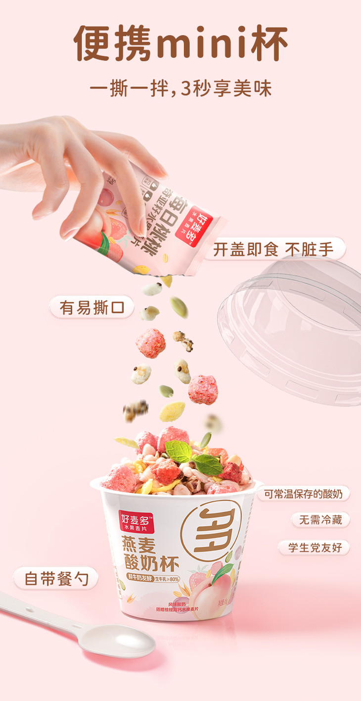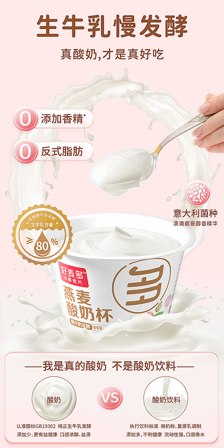 生牛乳含量≥80%【好麦多燕麦酸奶杯】一箱6杯,牧场直送奶源,够饱腹、够轻卡,满口浓郁自然的奶香!