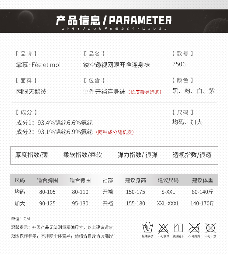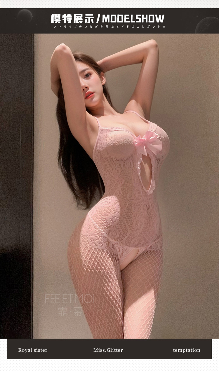 【情趣内衣】霏慕 镂空透视网眼开裆连身袜7506
