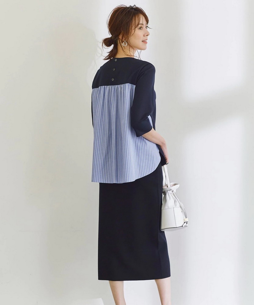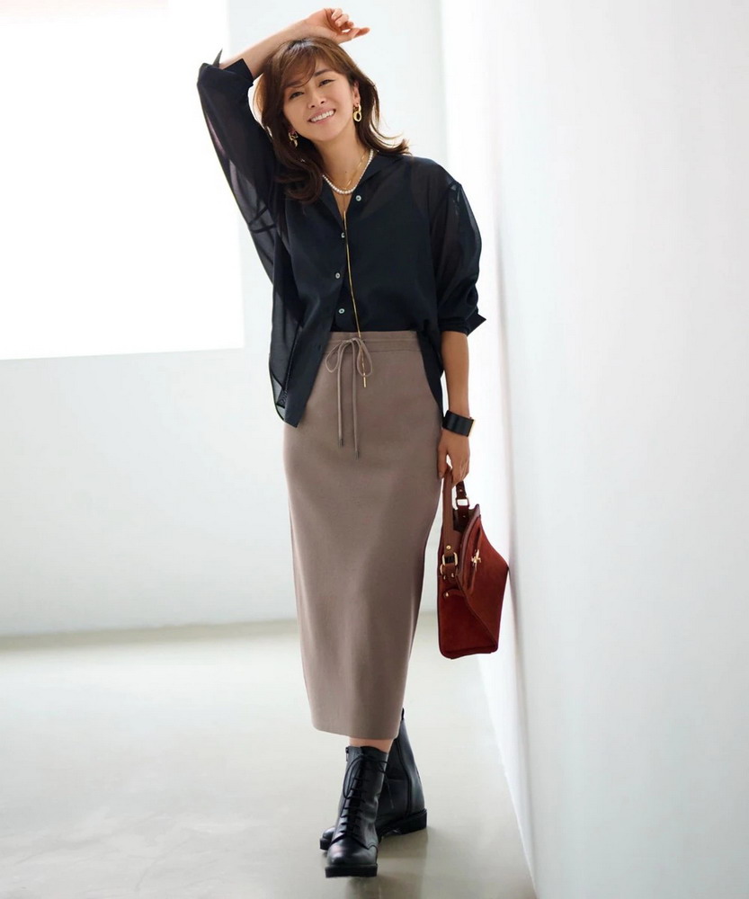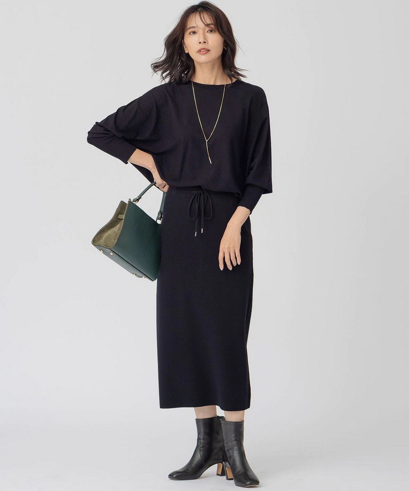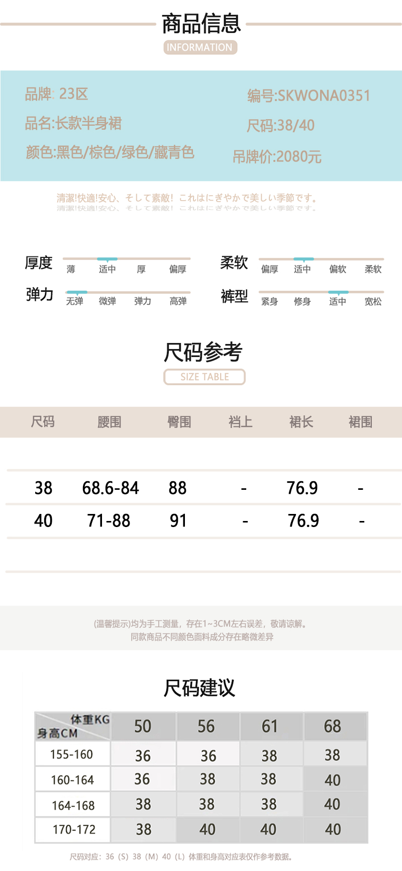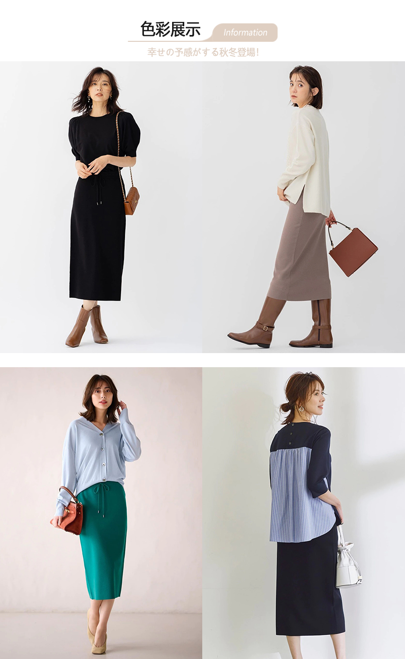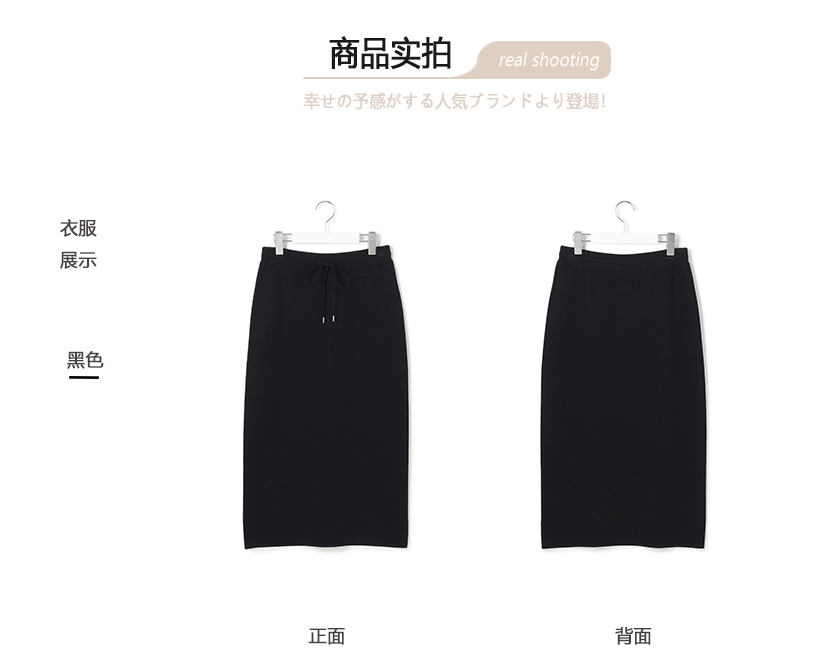 23区日系秋季通勤松紧腰直筒混纺针织半身裙中长铅笔裙商场同款