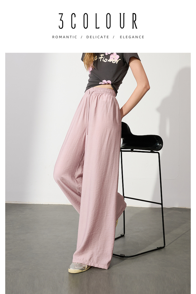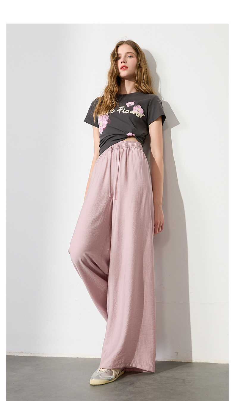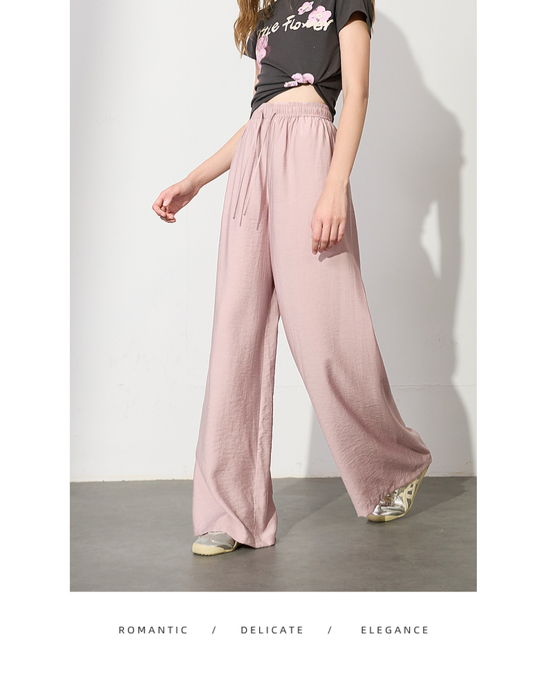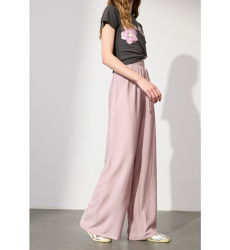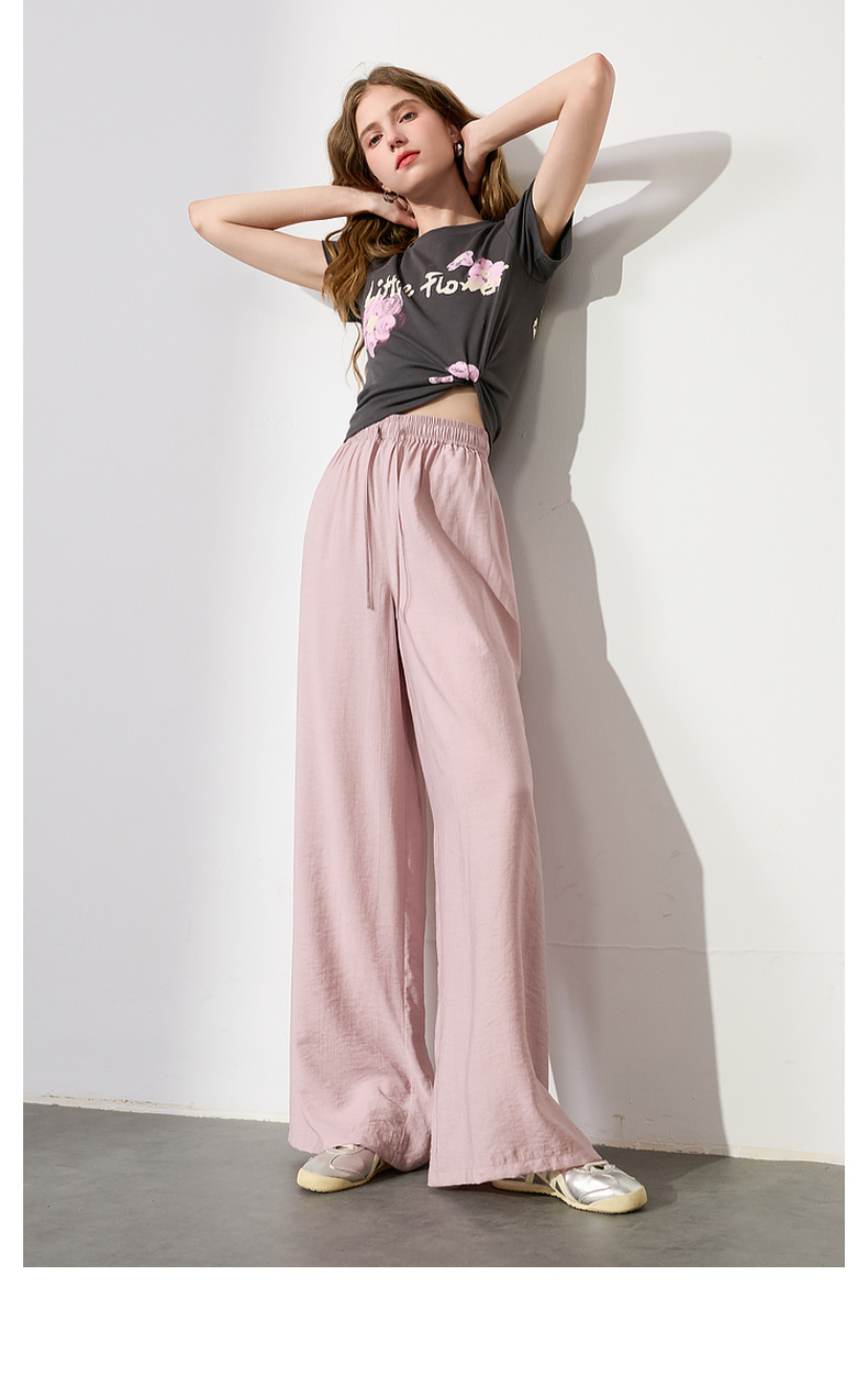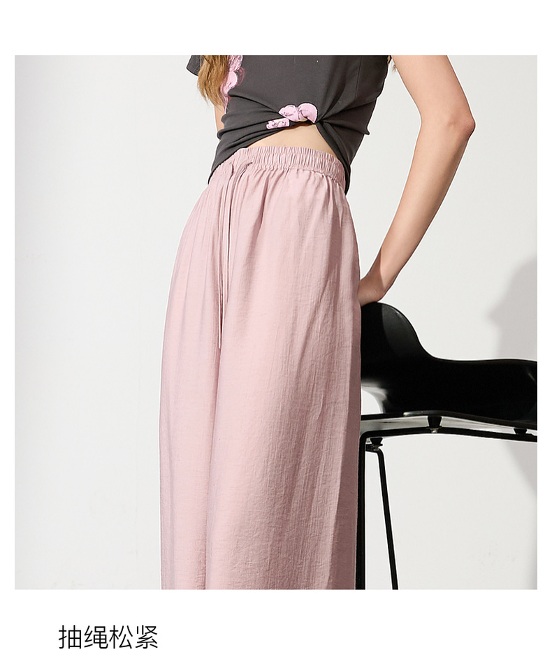 【亚麻】三彩2025夏季新款抽绳松紧腰宽松阔腿裤长裤垂感松弛简约M