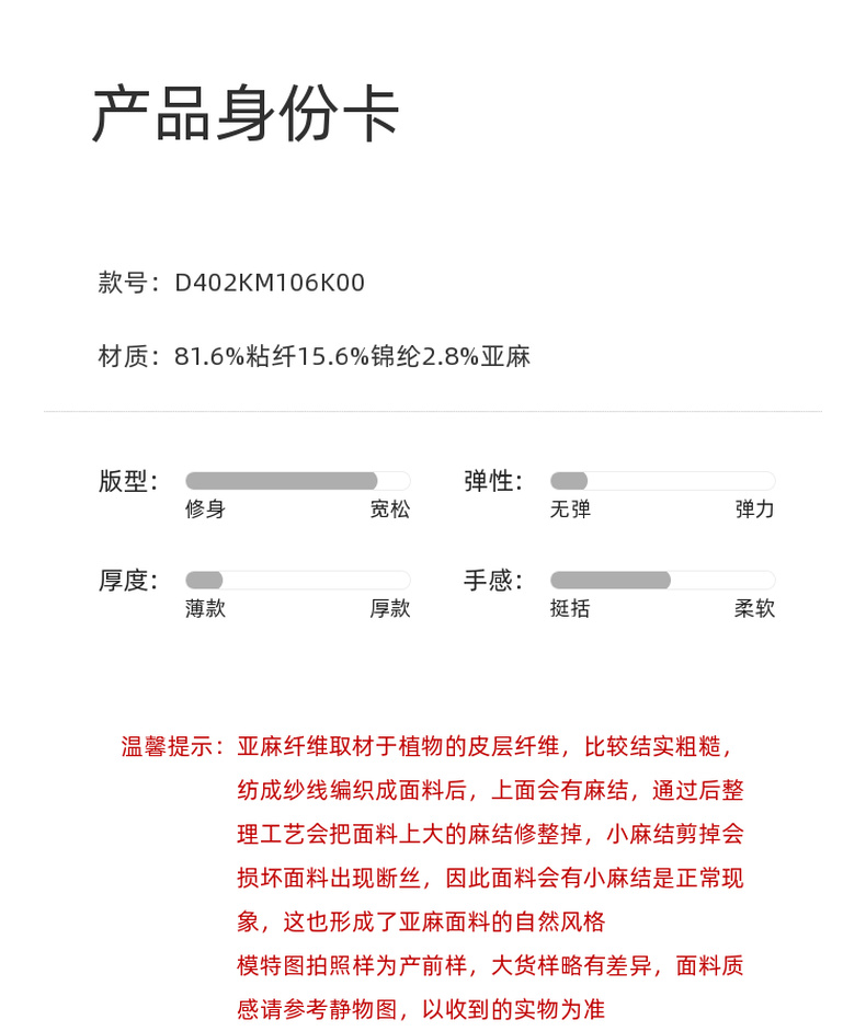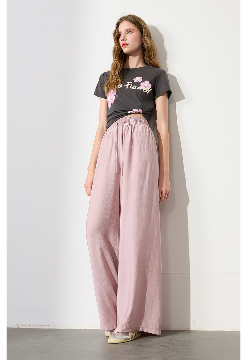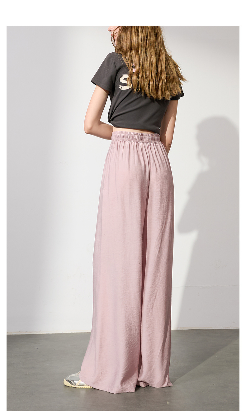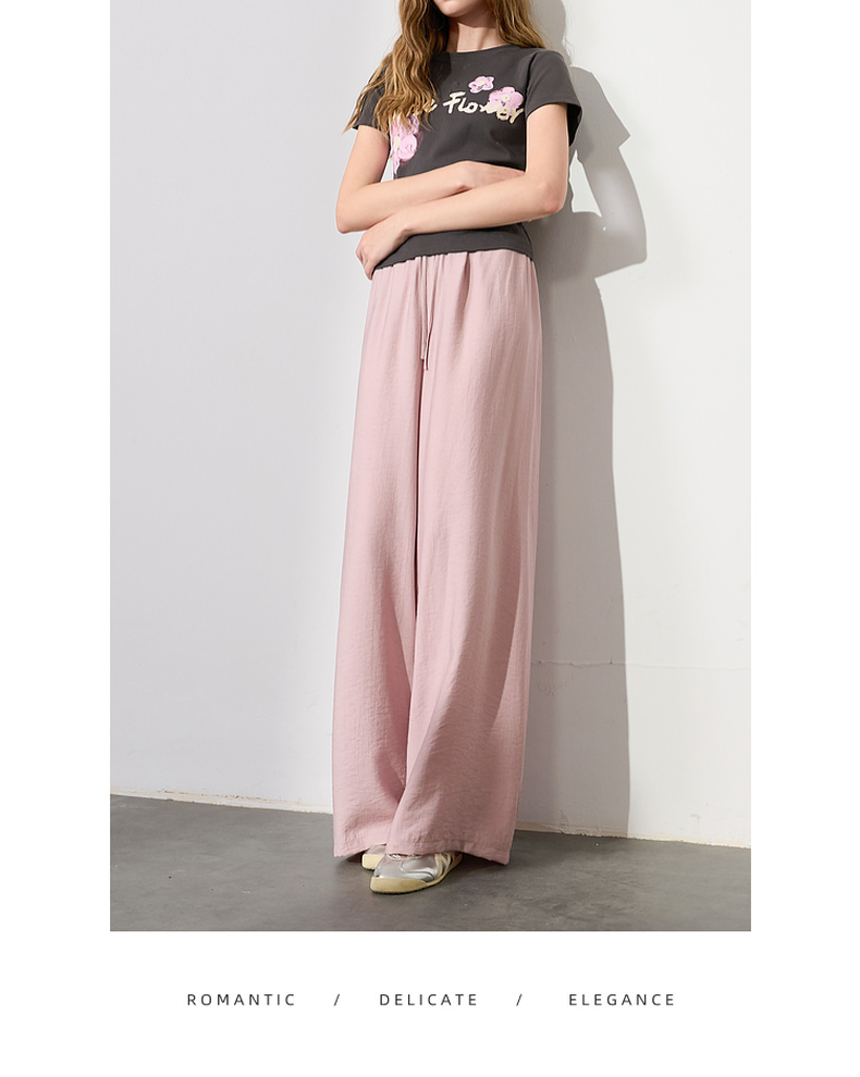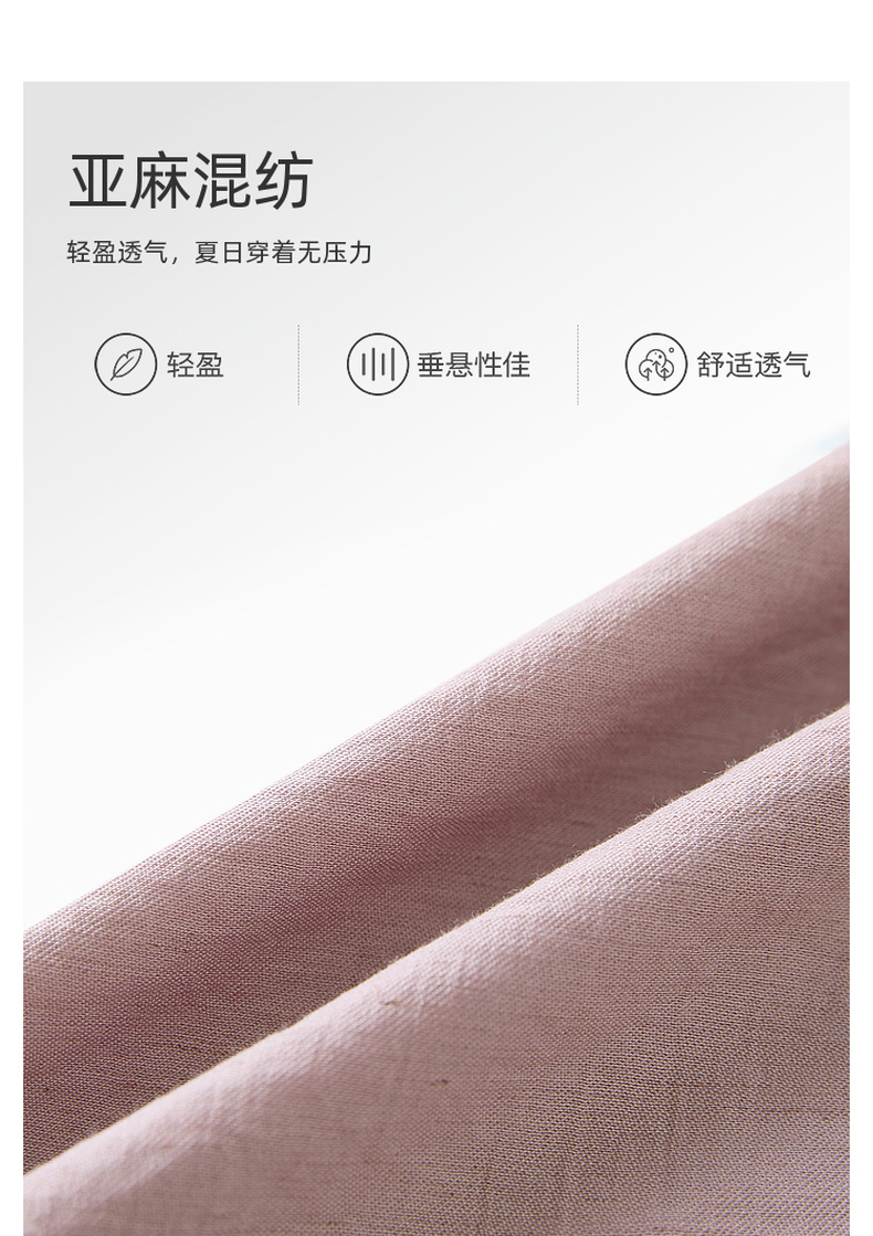 【亚麻】三彩2025夏季新款抽绳松紧腰宽松阔腿裤长裤垂感松弛简约M