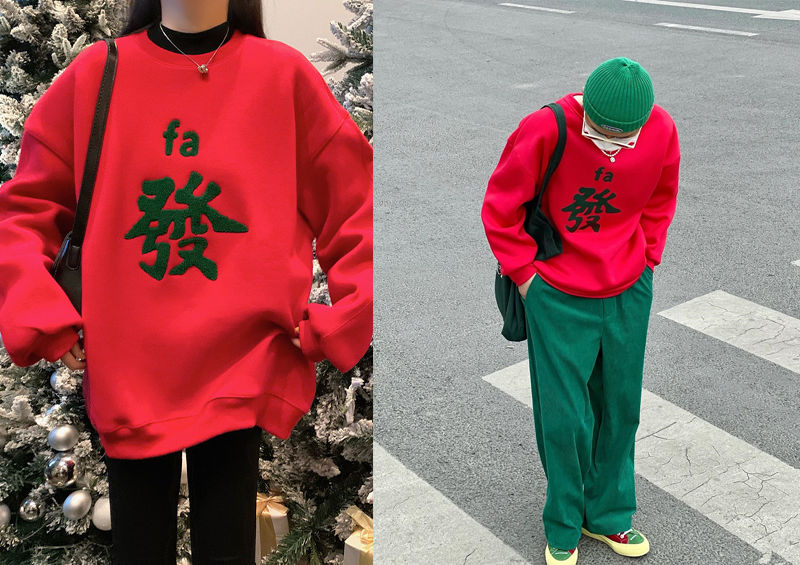 过年嘛,总要在穿带点吉祥元素的新衣,有年味又给自己讨个好运气。