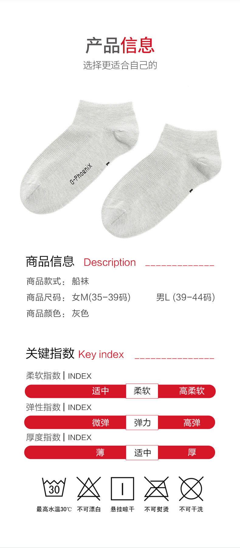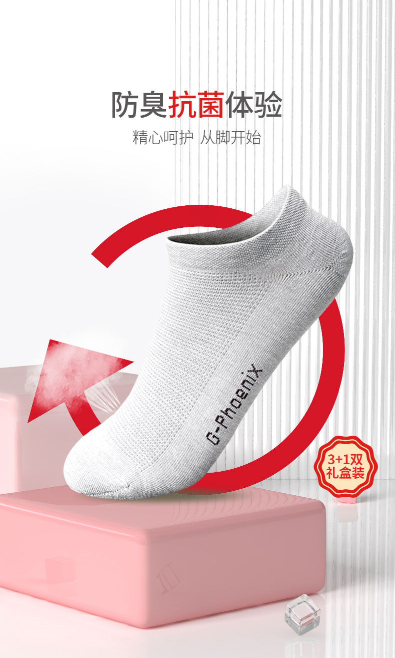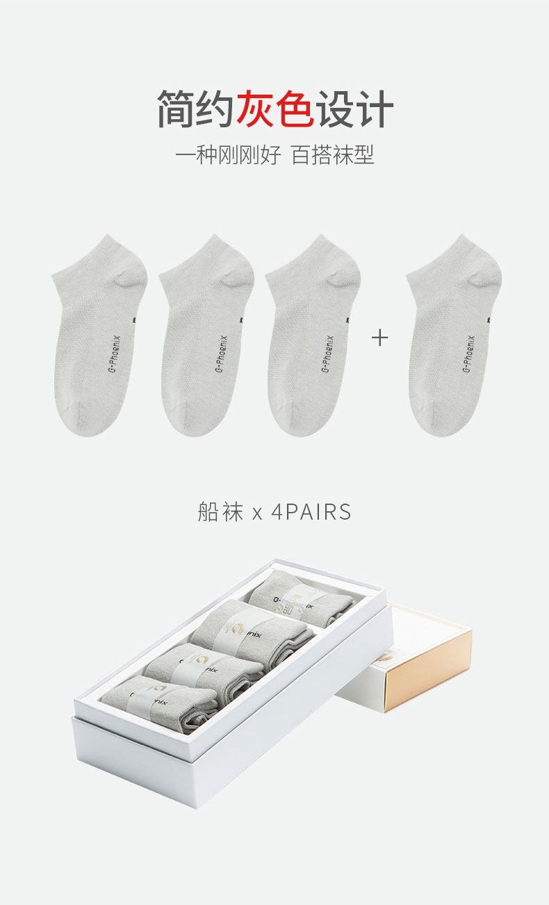 希凤凰石墨烯船袜女M男L(4双装)