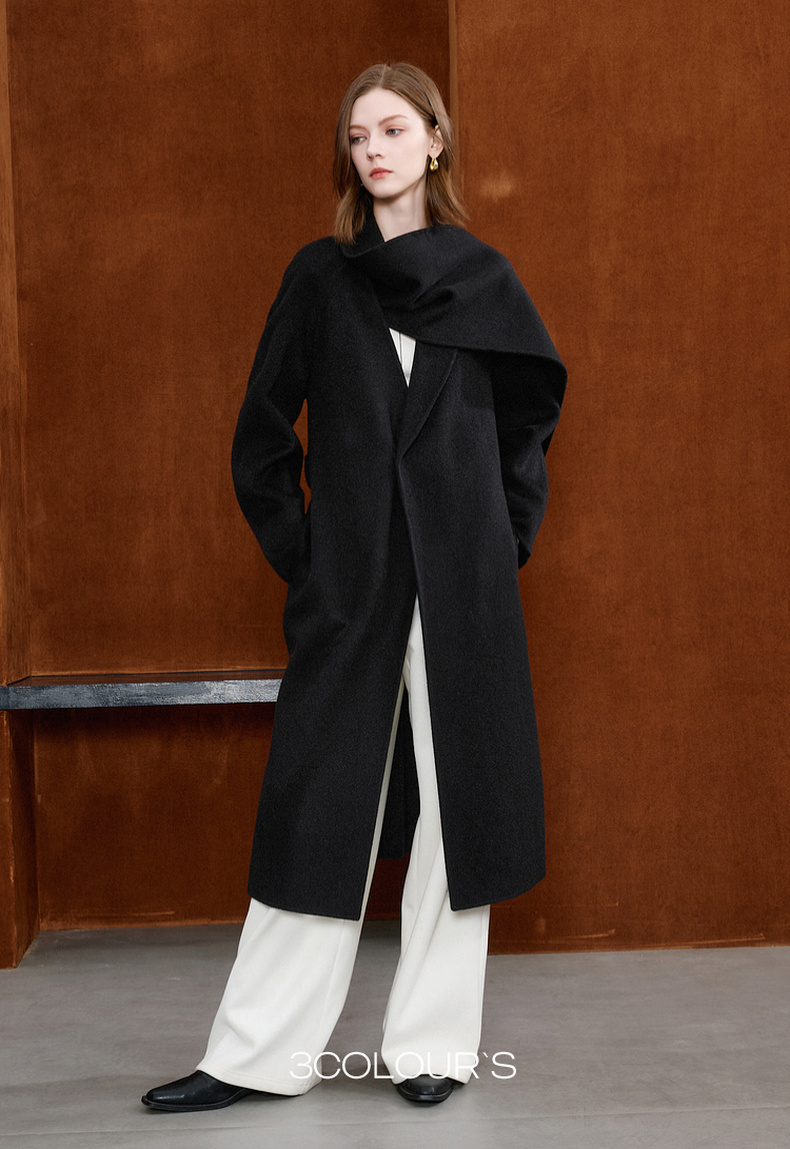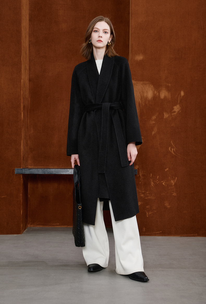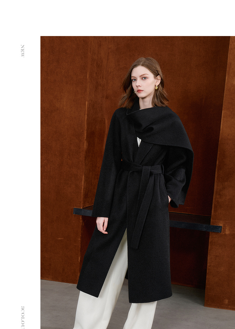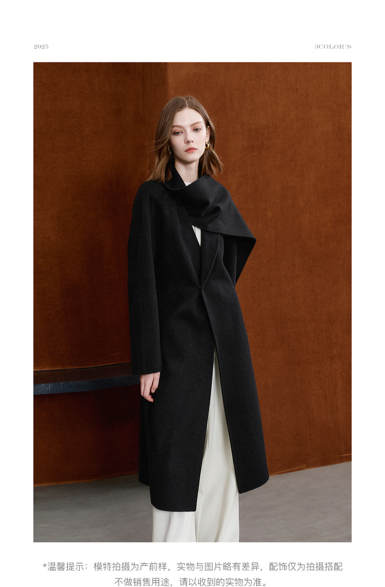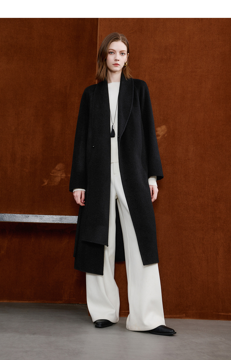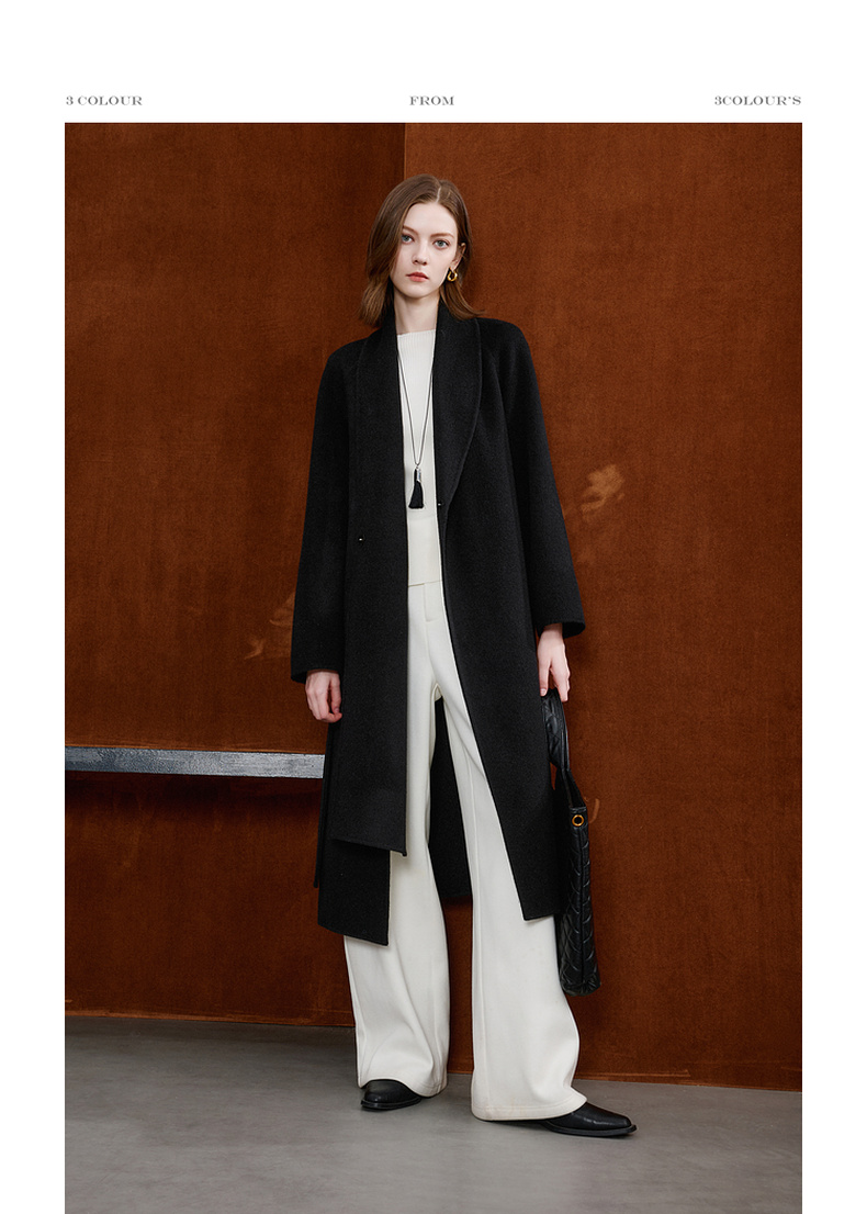 【100绵羊毛】三彩2025冬季新款双面呢大衣长款毛呢外套极简S