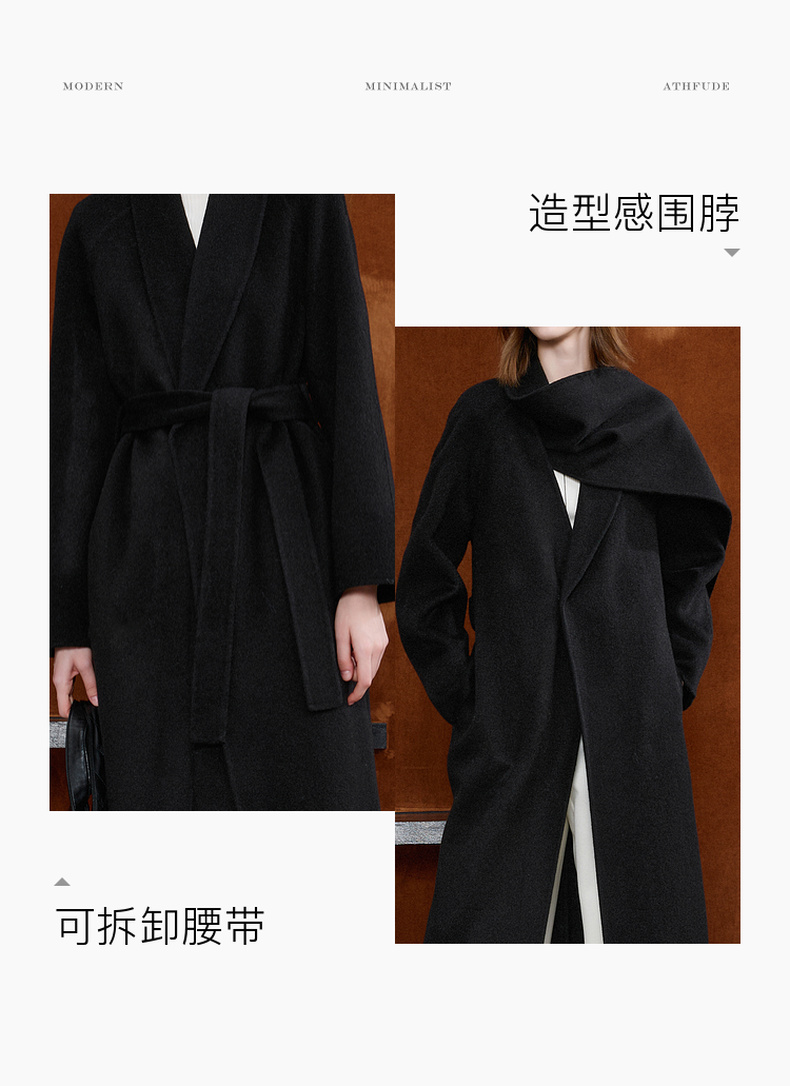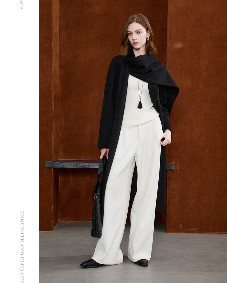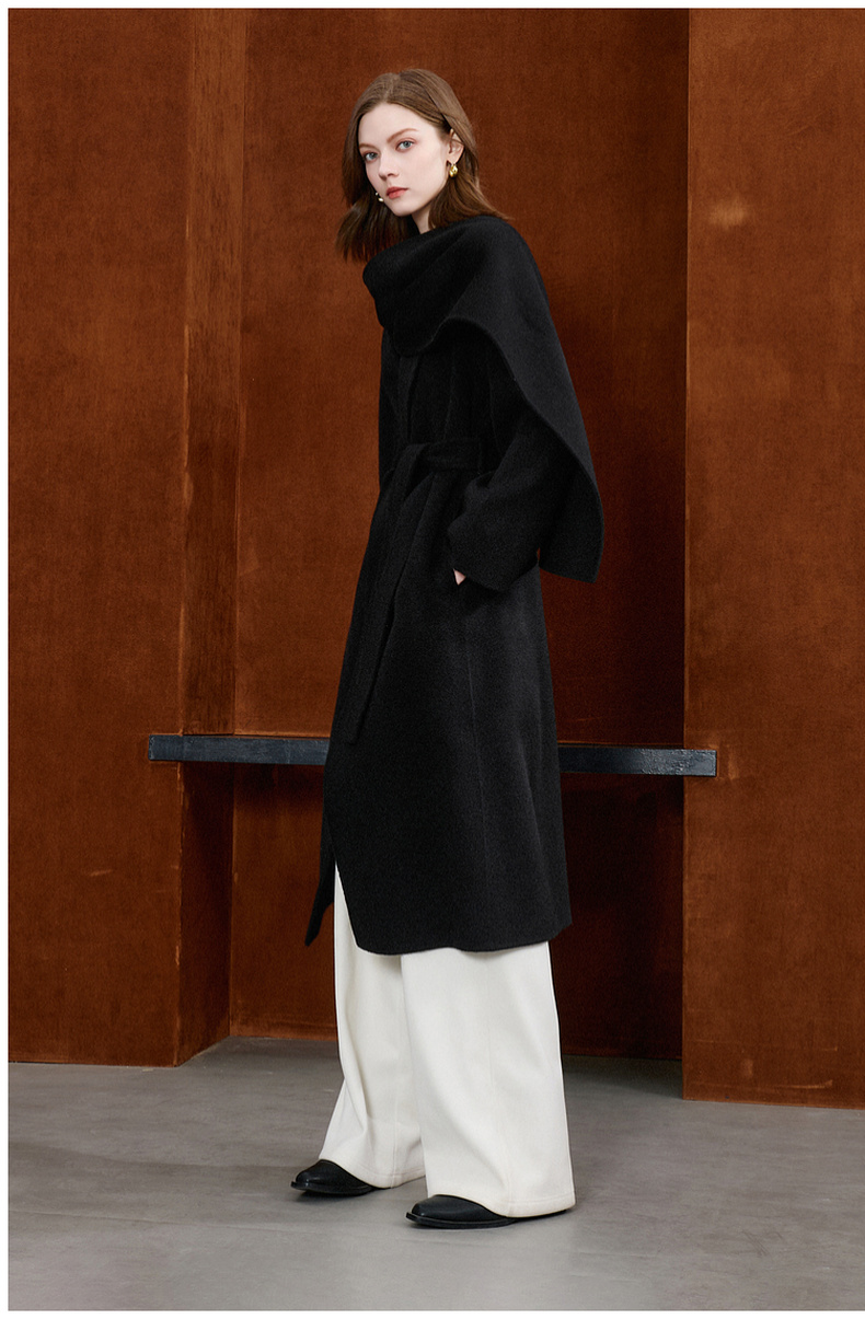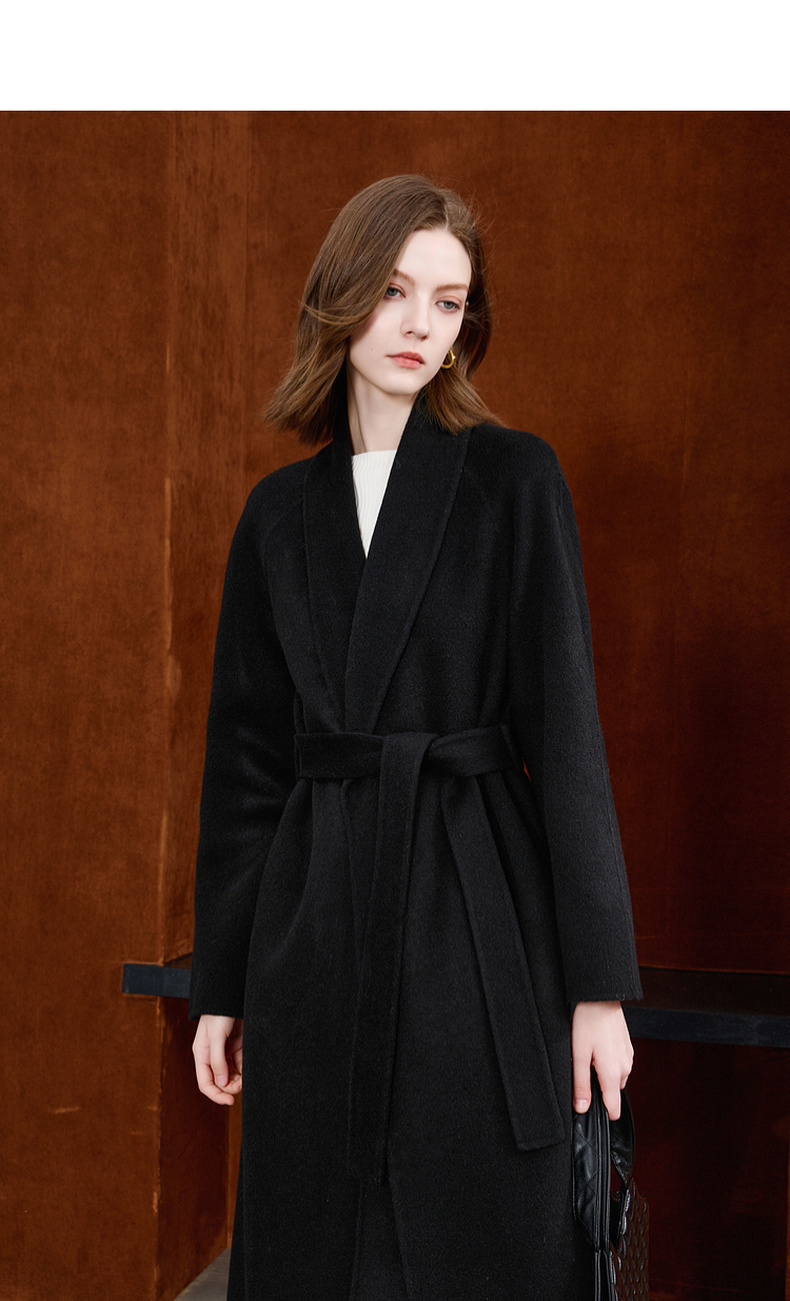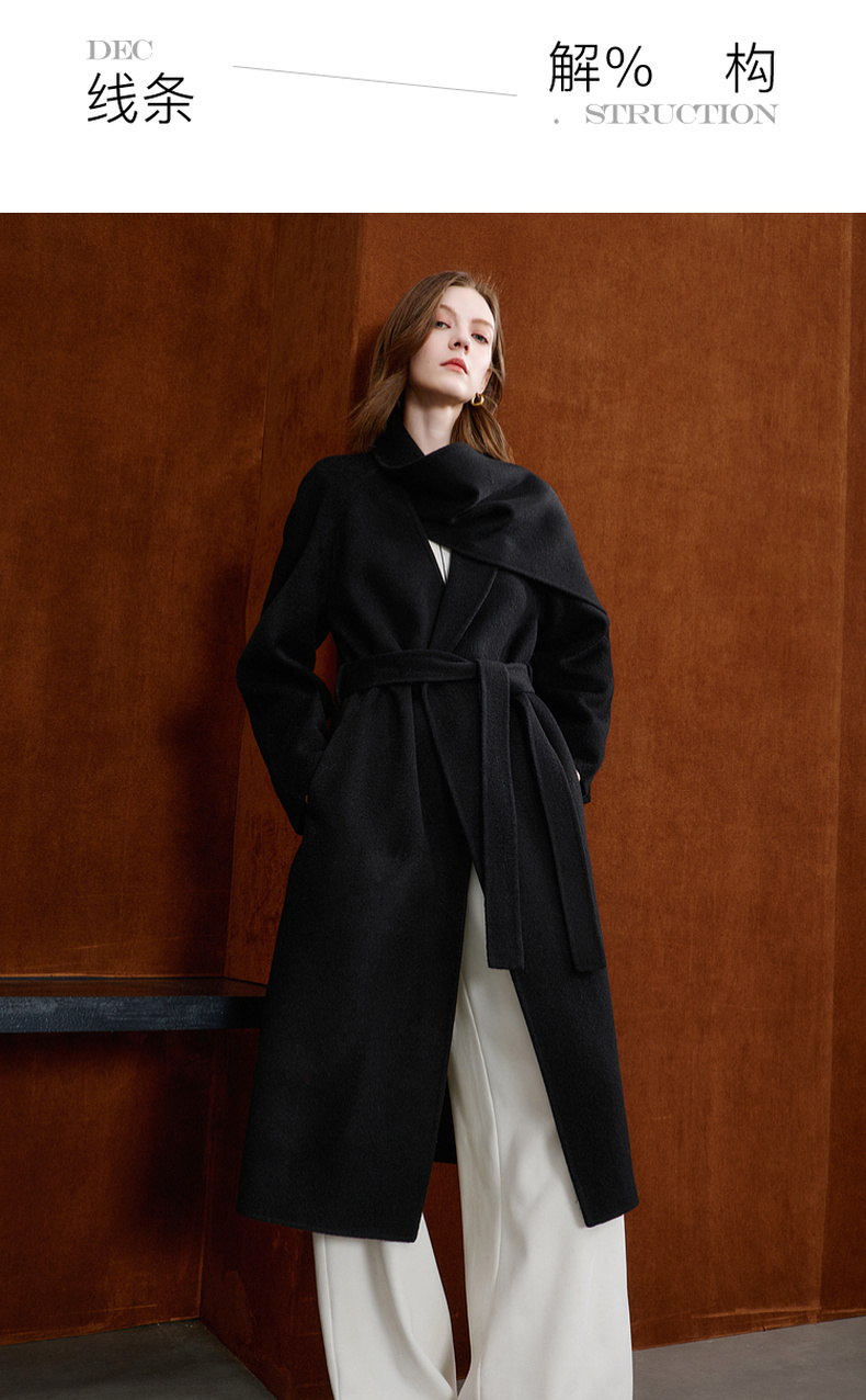 【100绵羊毛】三彩2025冬季新款双面呢大衣长款毛呢外套极简S