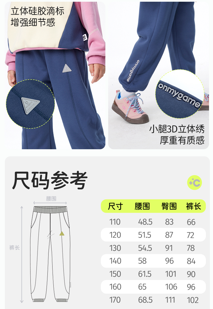 onmygame【轻户外防泼水】儿童运动裤男女童可穿11