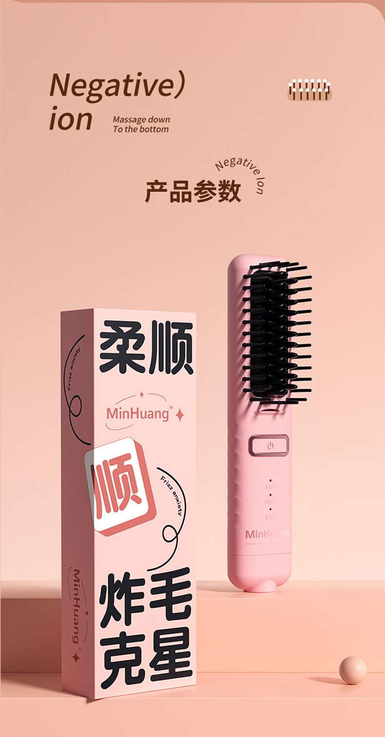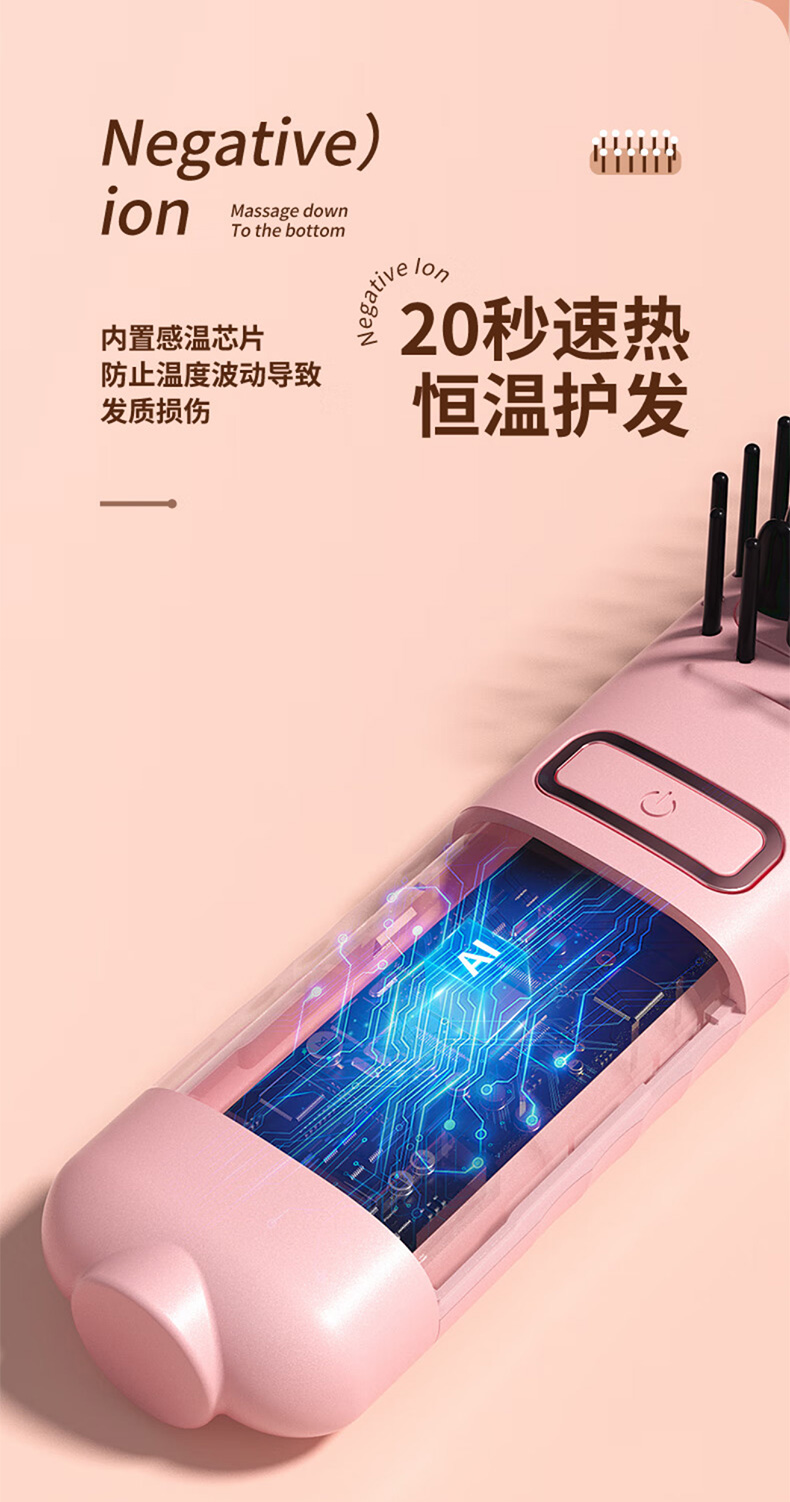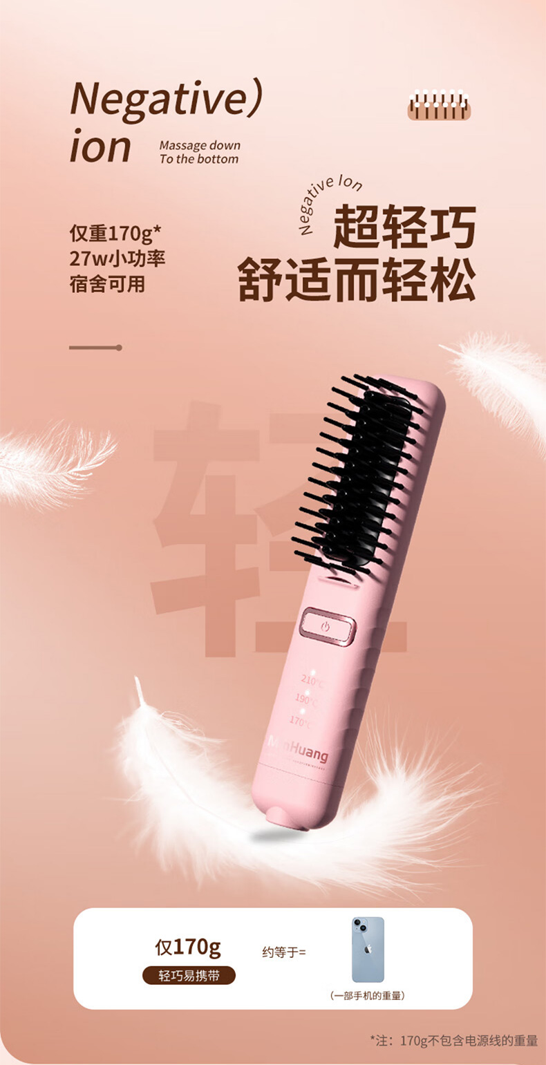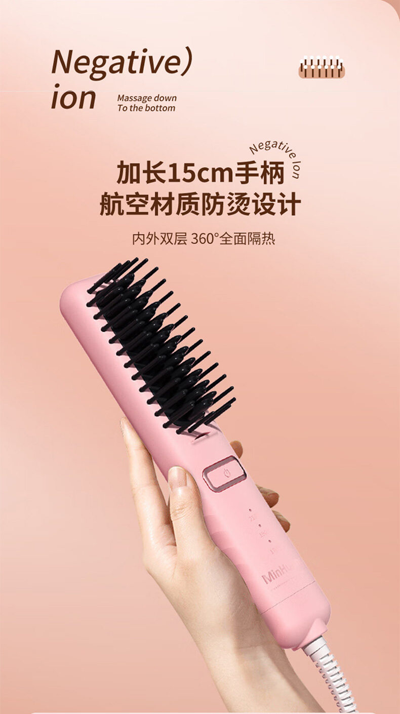 敏煌(MinHuang)负离子直发梳卷发棒直发夹板不伤发家用卷发神器造型梳烫发宿舍可用 XN-Z06 樱花粉