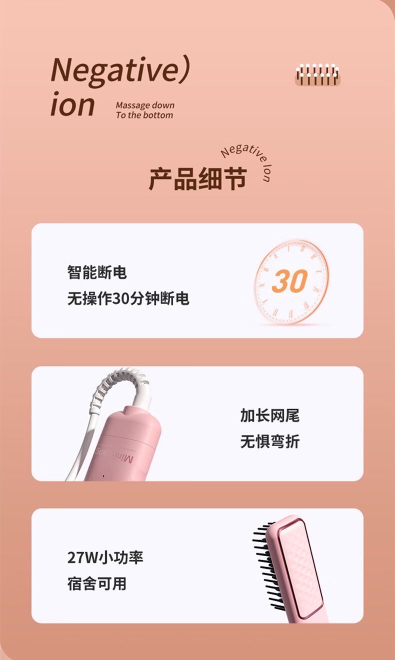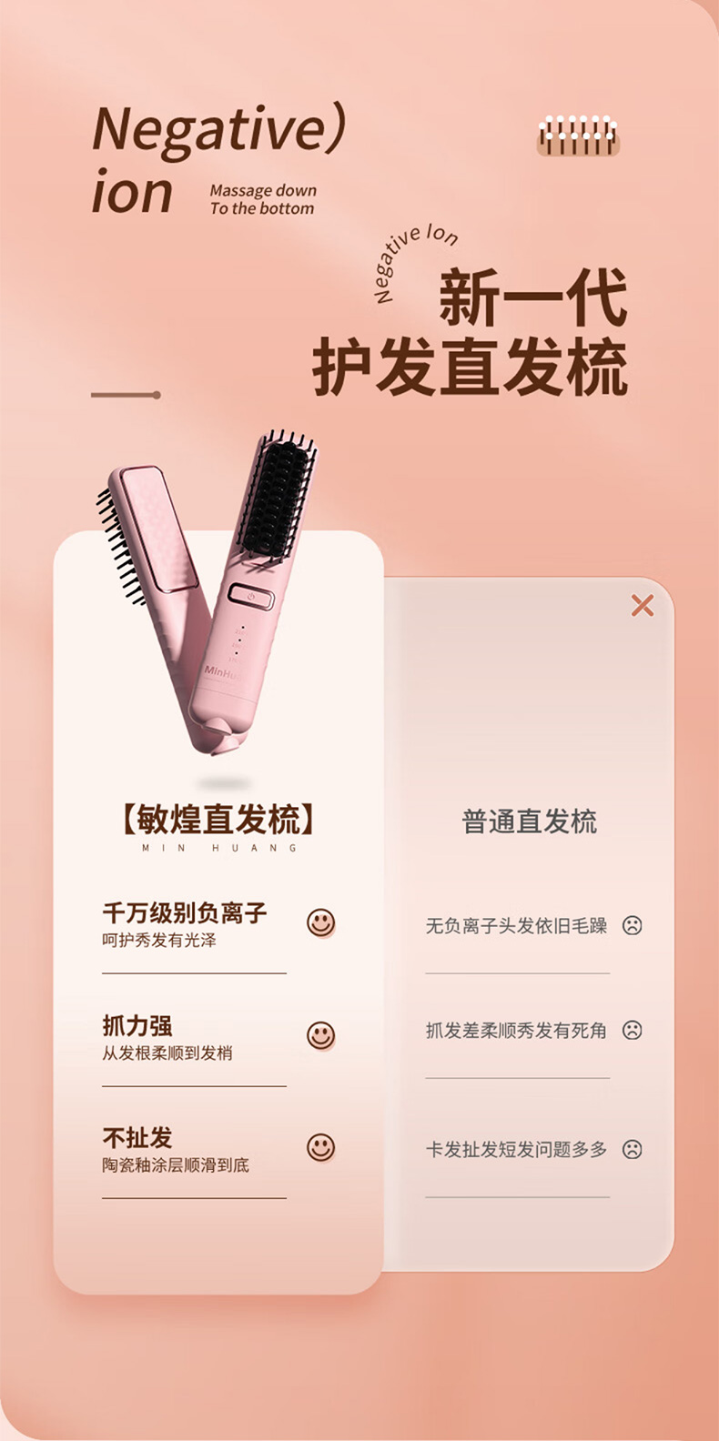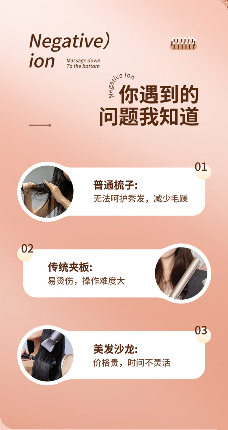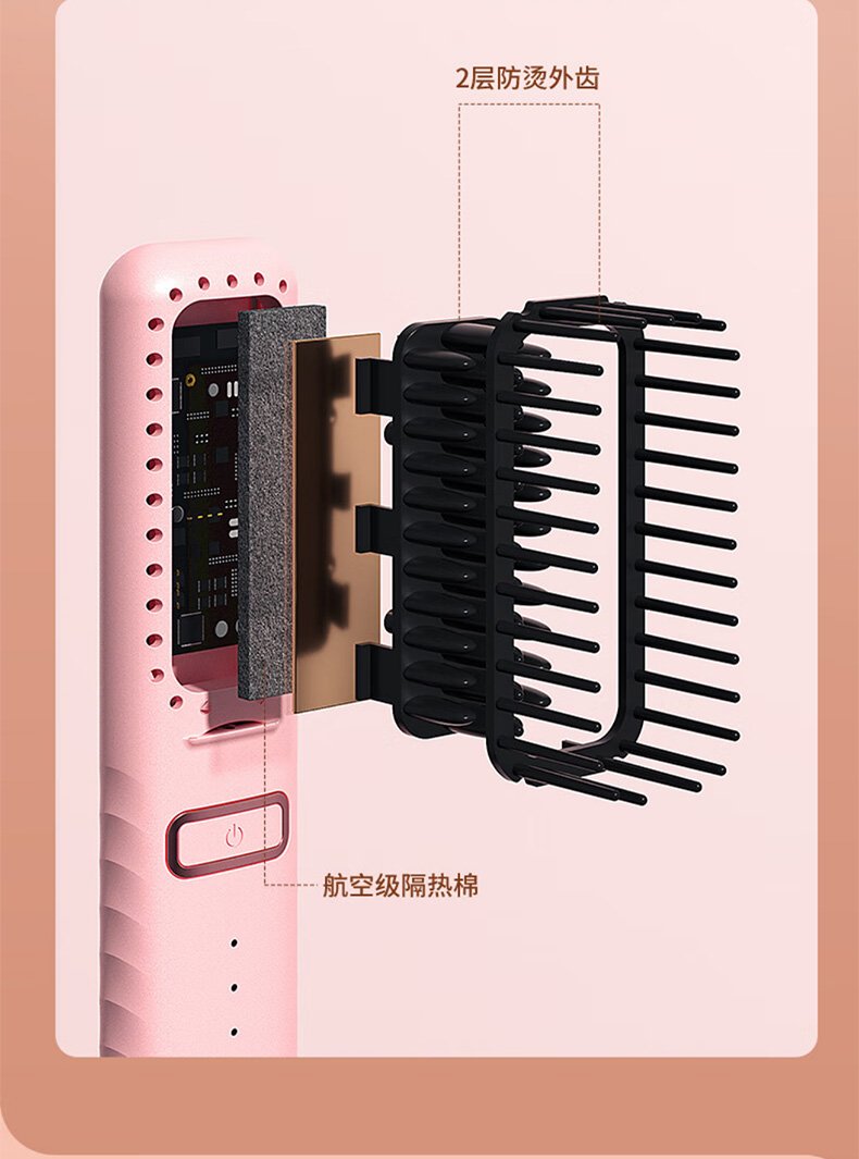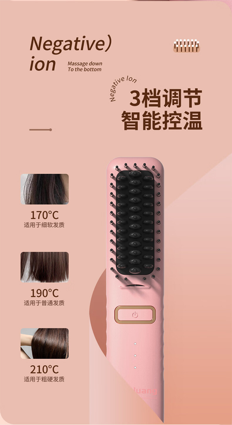 敏煌(MinHuang)负离子直发梳卷发棒直发夹板不伤发家用卷发神器造型梳烫发宿舍可用 XN-Z06 樱花粉